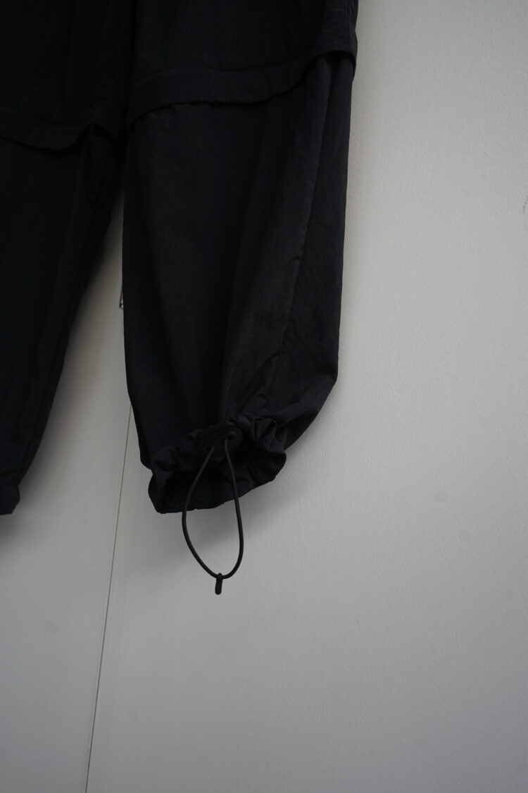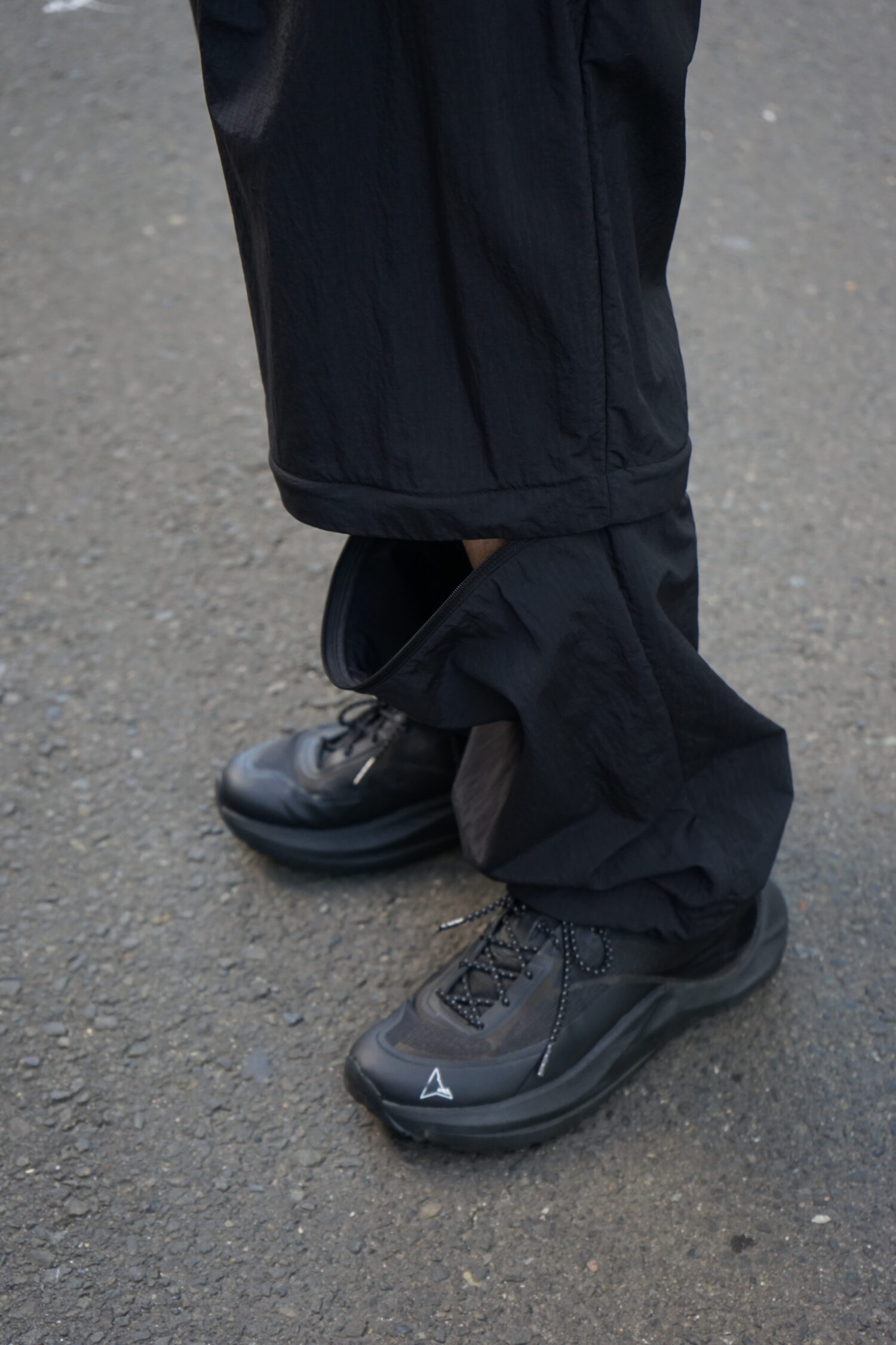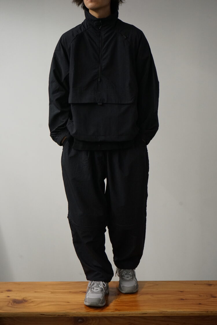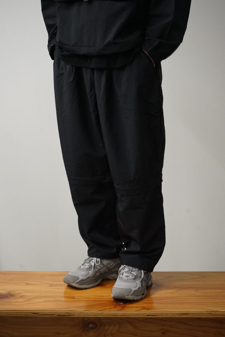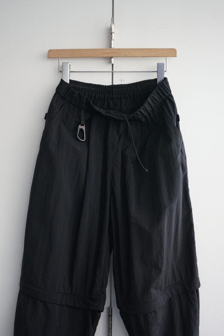 リサイクルストローナイロン(空洞化したナイロン糸)を使用したナイロン。軽量化はもとより、空洞化により撥水性が向上し夜部屋干しでも翌朝には乾くので、連日着用ができます。