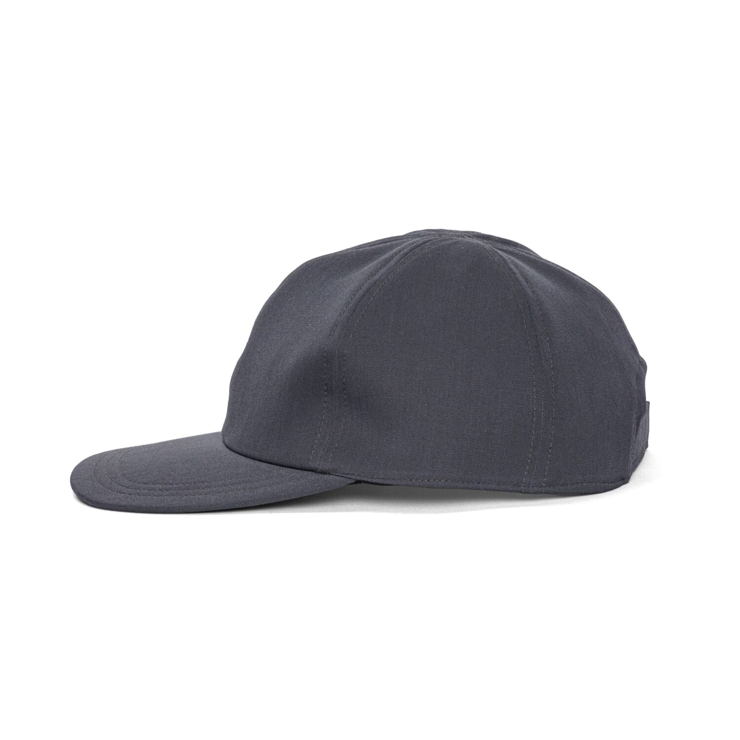 最も美しい綾目を表現するため縦糸を高密度に、横糸は限界まで打ち込んだウールギャバジンのキャップ。特殊な樹脂をウール繊維の内部まで染み込ませることでフィラメントのような光沢とクリアな質感を生む。