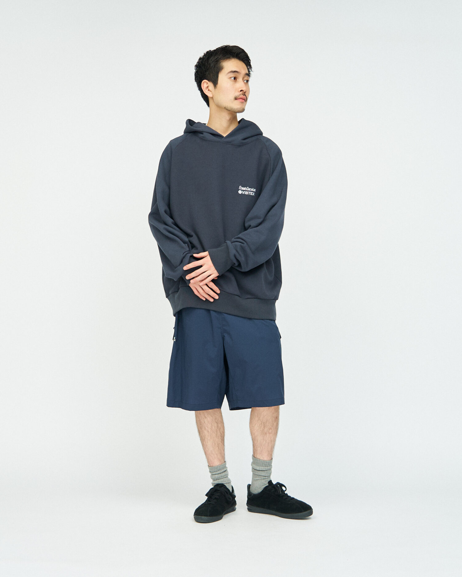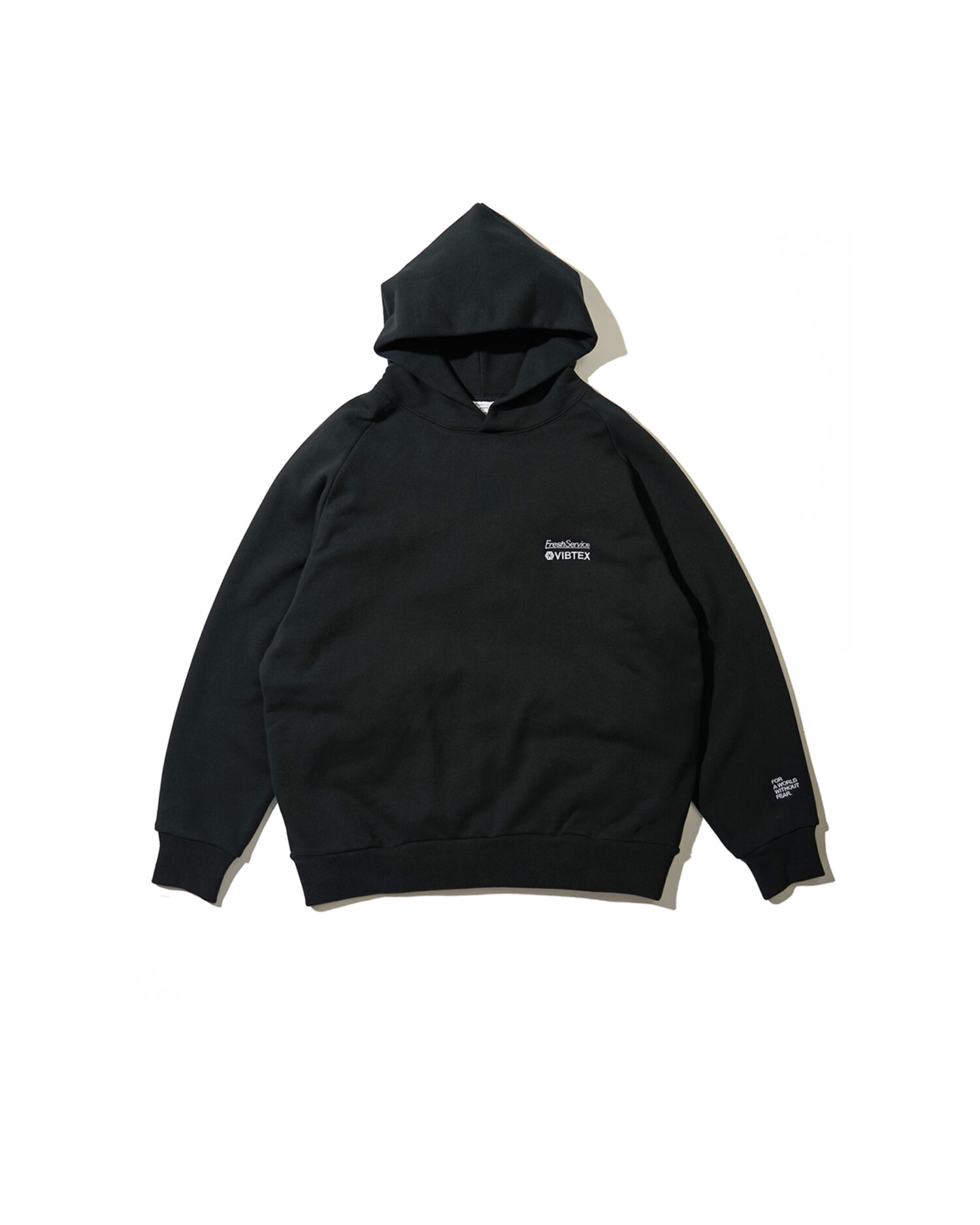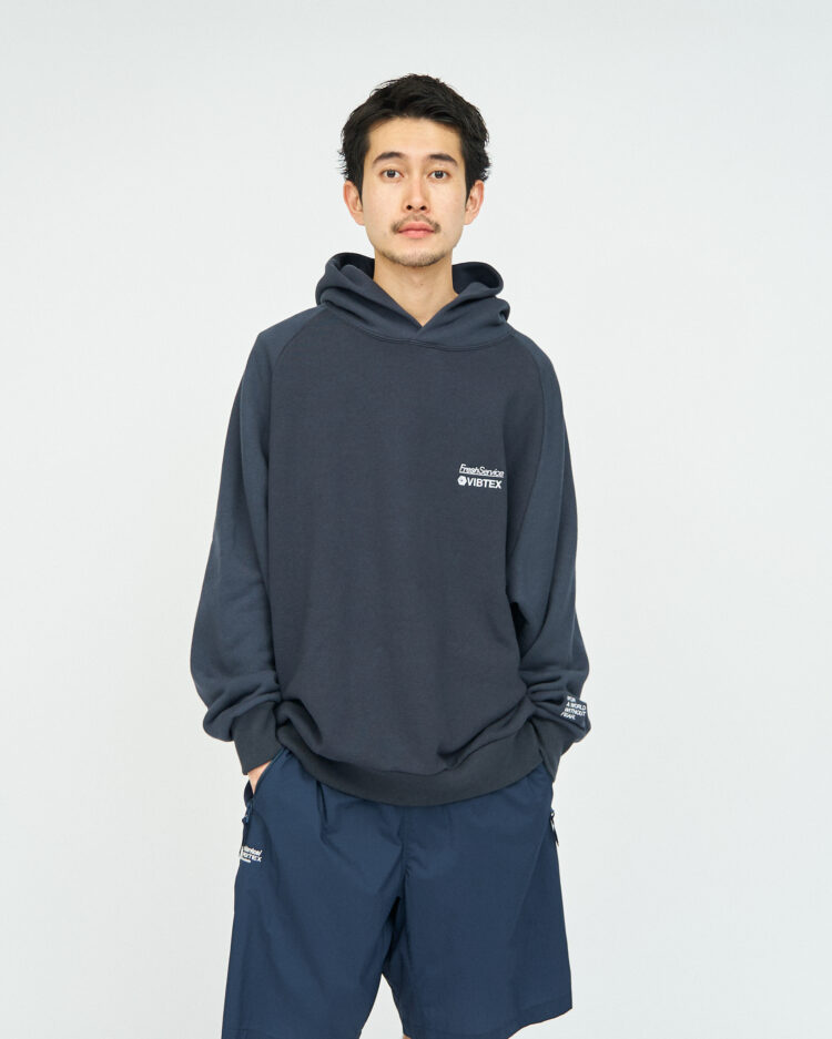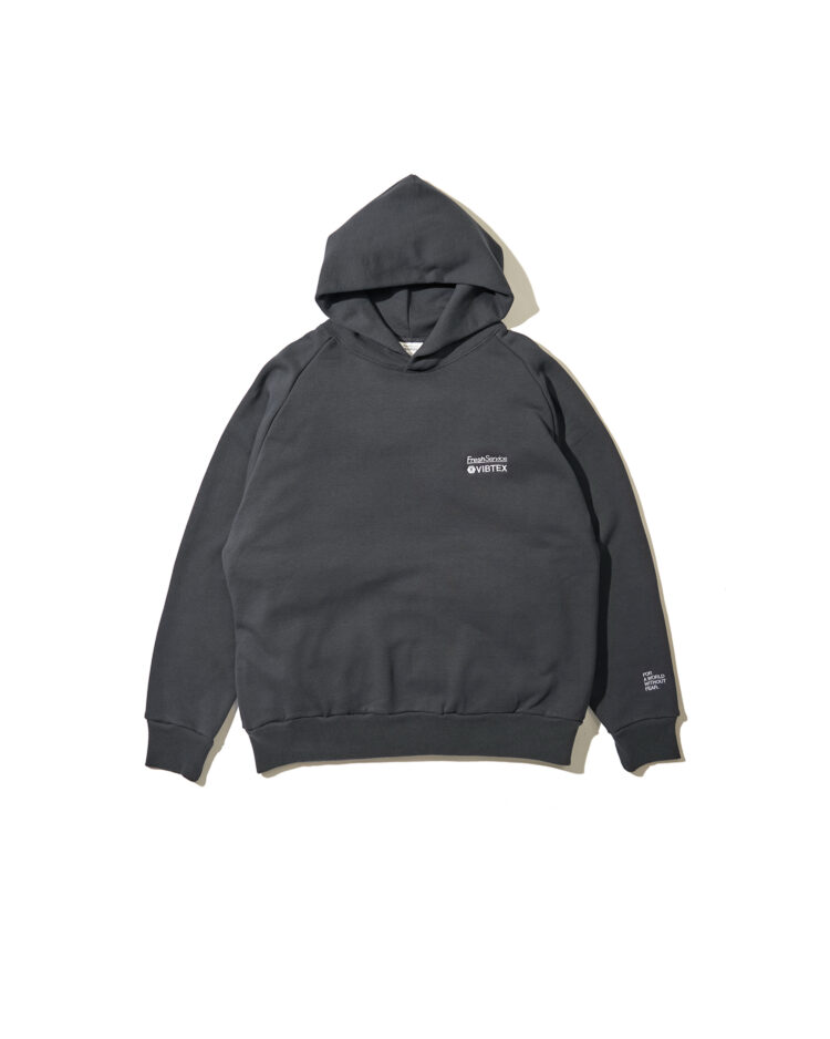 ウイルスと戦う、すべての世界市民を守る服をコンセプトに、抗ウイルス機能を備えたブランド「VIBTEX(ビブテックス)」とのコラボレーションアイテム。旧式の編機を使用することで、通常よりも空気を含む裏毛特有の滑らかな質感が特徴のスウェットフーディ。特殊な加工技術で、繊維上の特定のウイルスの数を減少させるとともに、細菌を減少させカビの発生までも抑制。生乾き臭の発生を抑え、汗やタバコなどの臭いも移りづらく常に快適な着心地を維持します。生活臭がつきにくいことからルームウェアとしての使用もおすすめです。