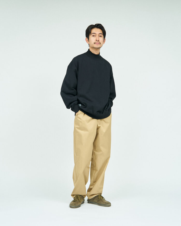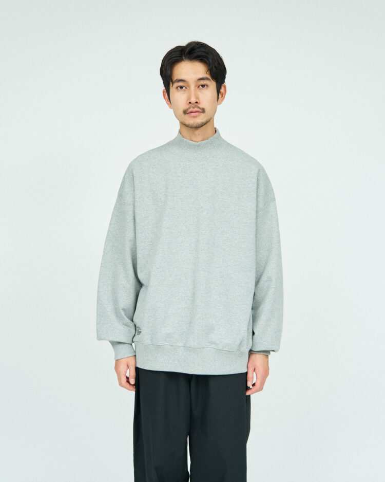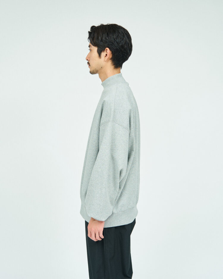 春先から秋冬と長いシーズンで活用出来る程良い厚みのモックネックスウェット。