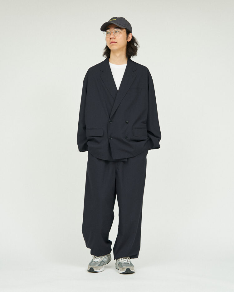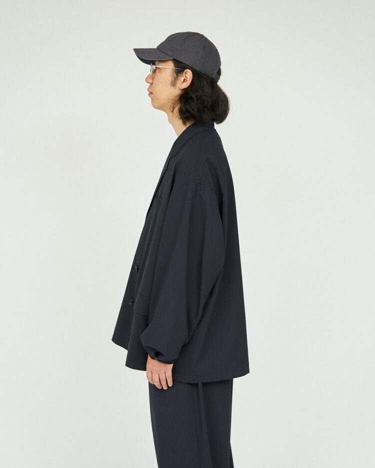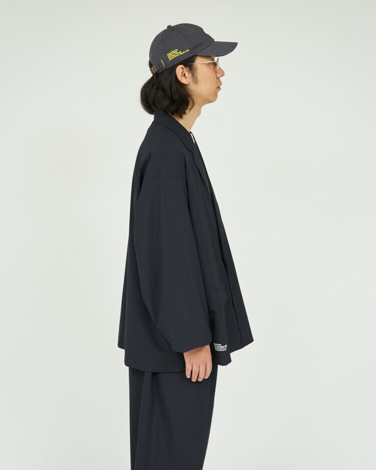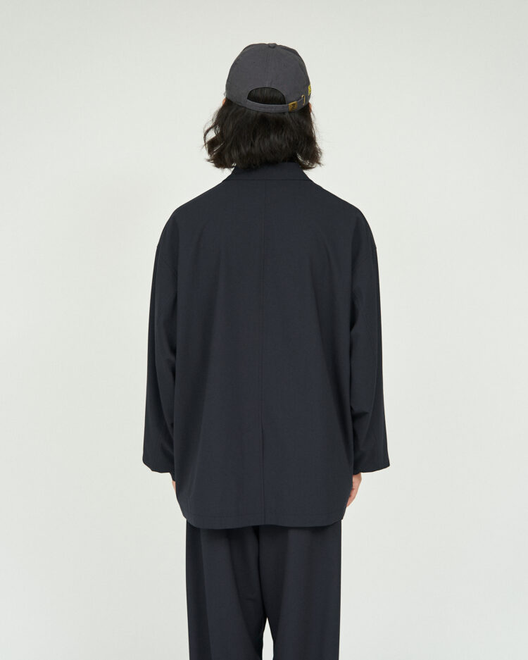 また、裏地にメッシュを施す事により肌あたりもよく通気性にも優れているため、同素材のパンツとのセットアップとしての着用はもちろん、春先の羽織りとしても活躍する一枚です。