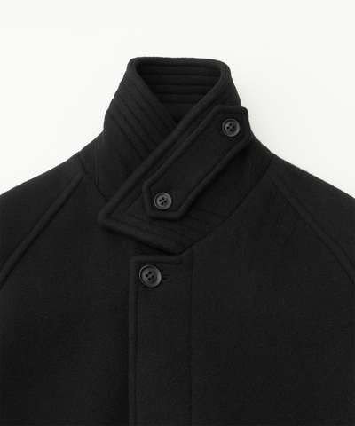 取り外しが可能なカラーのアジャスターは様々な演出が可能で、首から浸透する風を防ぎます。コートのボタンもまた、根元を何度も巻いてステイボタン(下ボタン)で仕上げ、生地に損傷が生じたり伸びたりするのを防止してくれます。