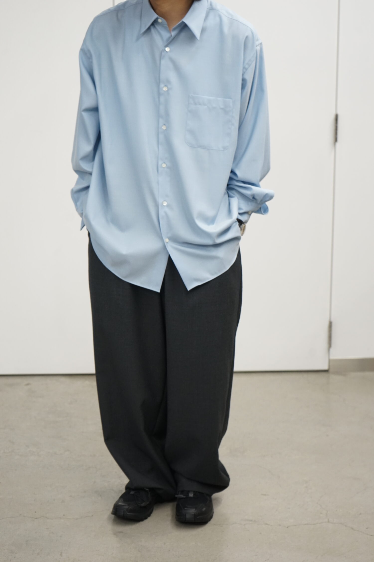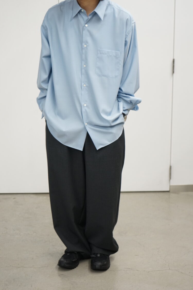 SUPER 160s WASHABLE WOOL OXFORD,100% URUGUAY WOOL 上質な光沢と滑らかな肌触りを持つ、真のラグジュアリーを感じさせる最高級のウール生地。 南米・ウルグアイ産の厳選されたスーパー160'sウールを使用し、ワタの段階で防縮加工を施したのち、90番手の糸に紡績。その高品質な糸を使い、メンズシャツ地の定番であるアメリカン・オックスフォード調に織り上げた、オリジナル生地です。 原料が持つ美しさだけでなく、家庭で洗濯ができる実用性も兼ね備えた、贅沢でありながら日常に寄り添う、使い勝手の良さを持ち合わせています。