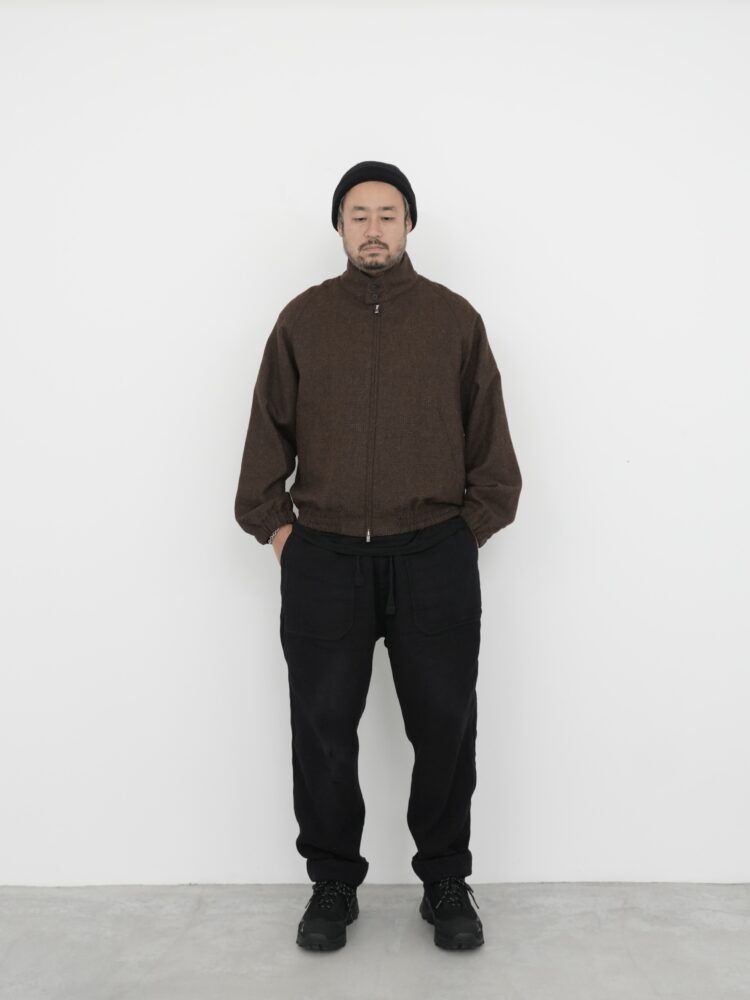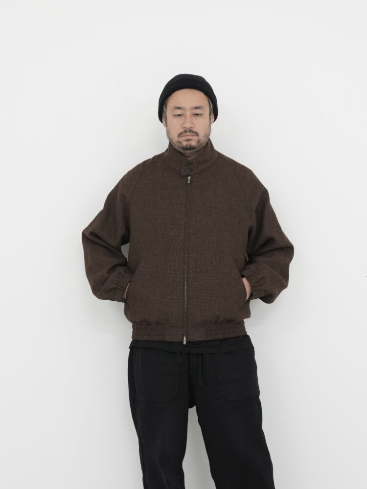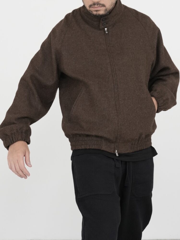 身幅に対して、着丈がやや短めの、スッキリとした佇まいが特徴のハリントンジャケット。