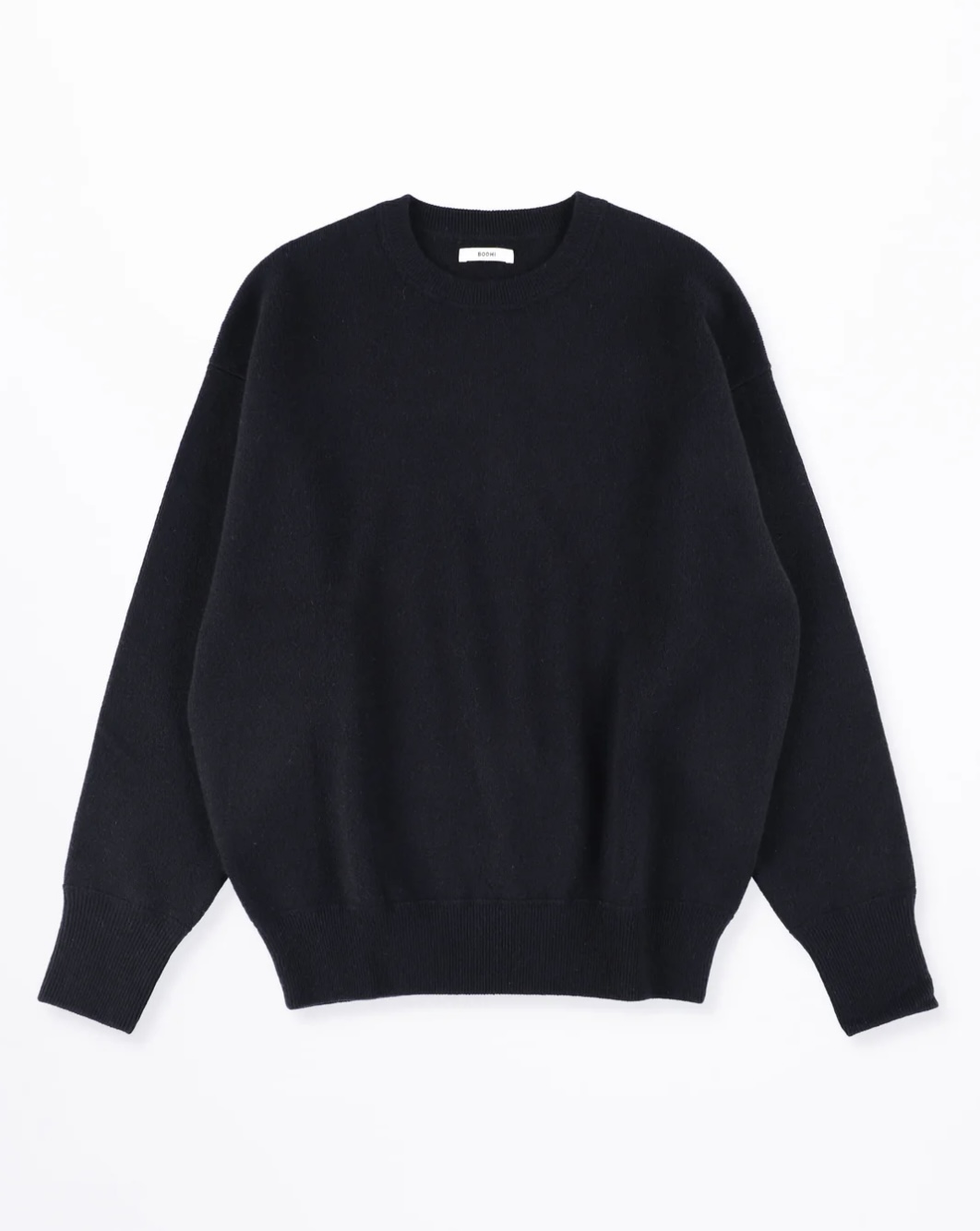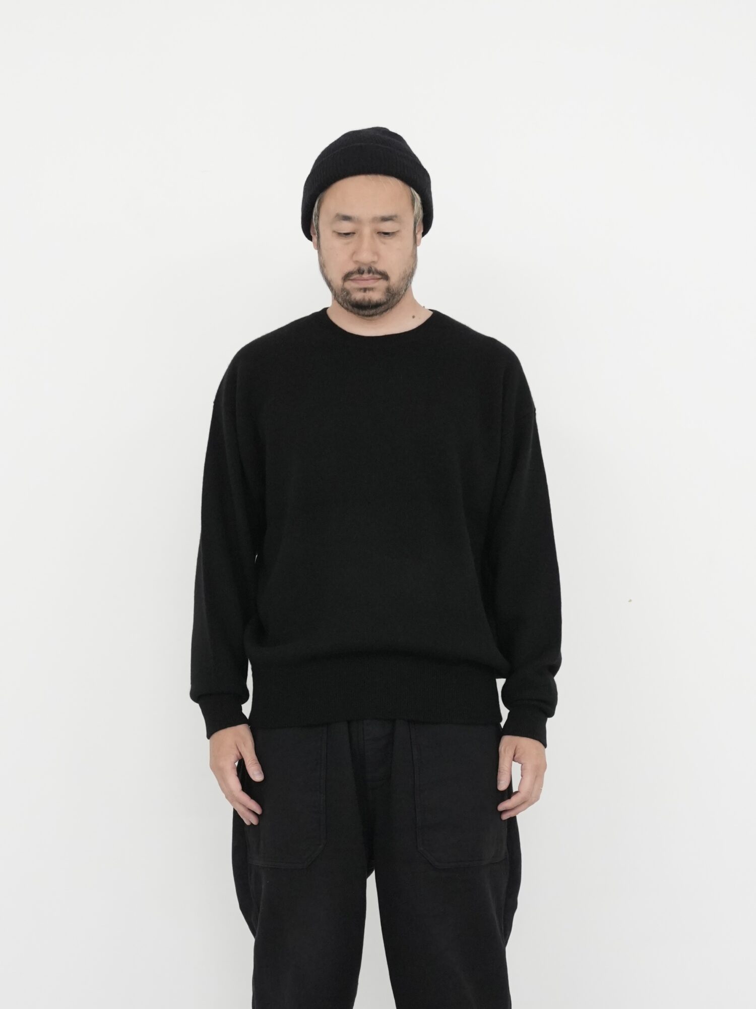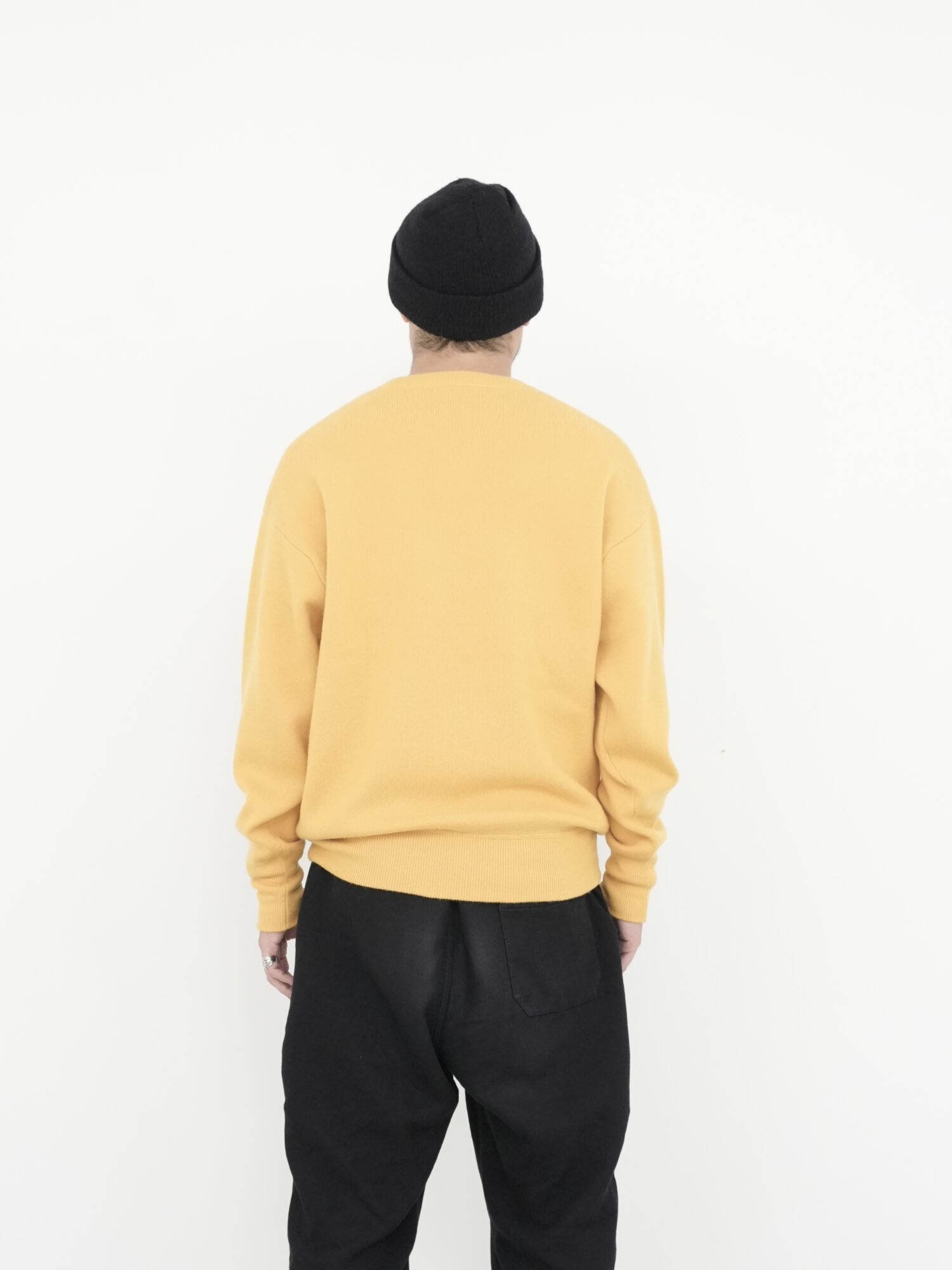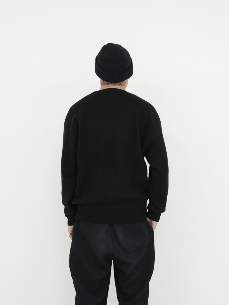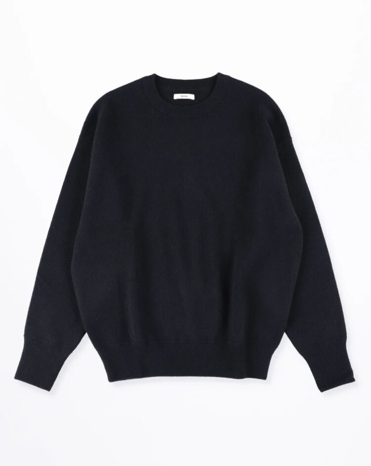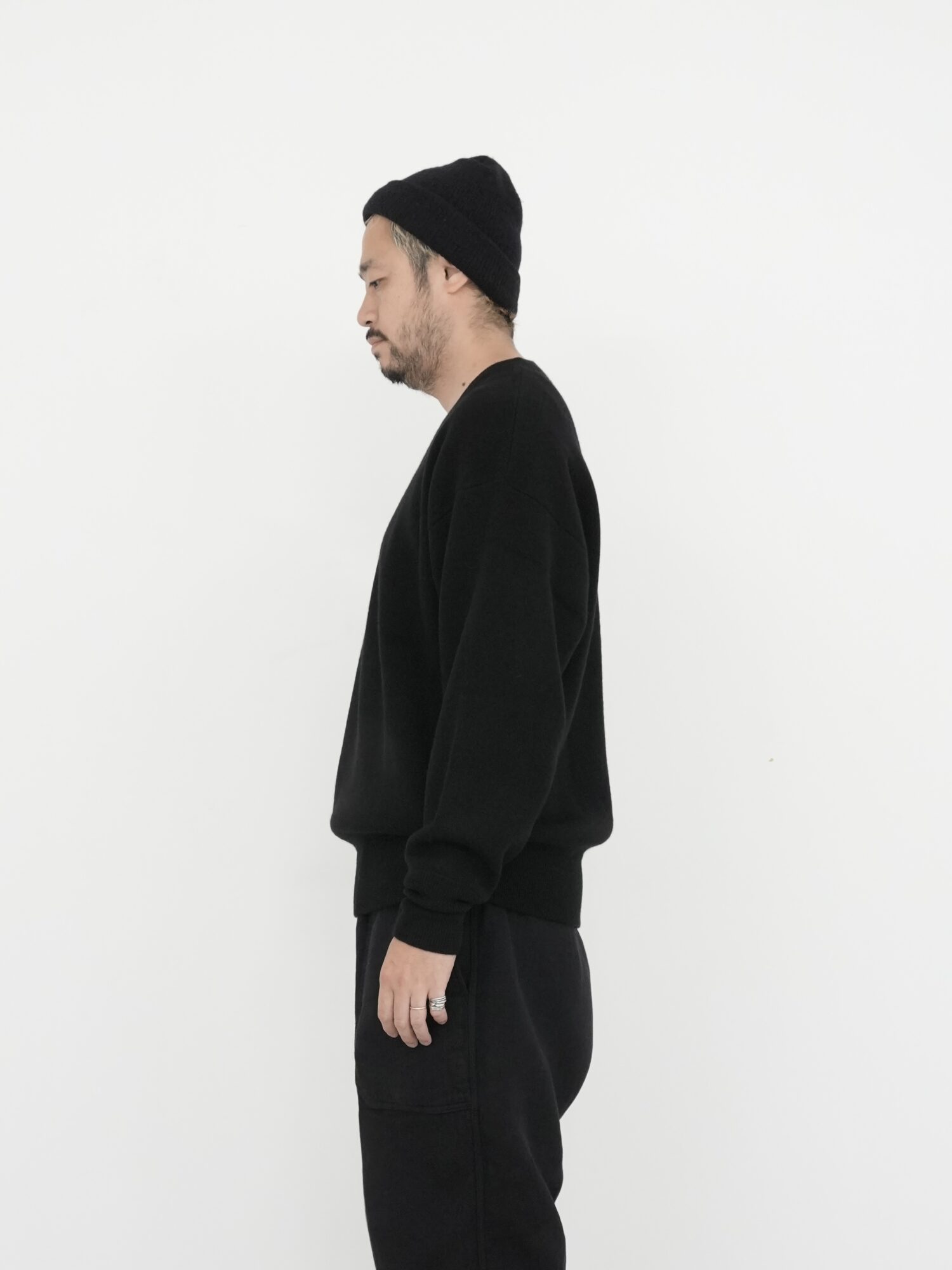 通常のニットに比べてかなり肉厚で、袖と裾のリブは強めのテンションに調整。どの時代にも対応するスタンダードなボックスシルエット。