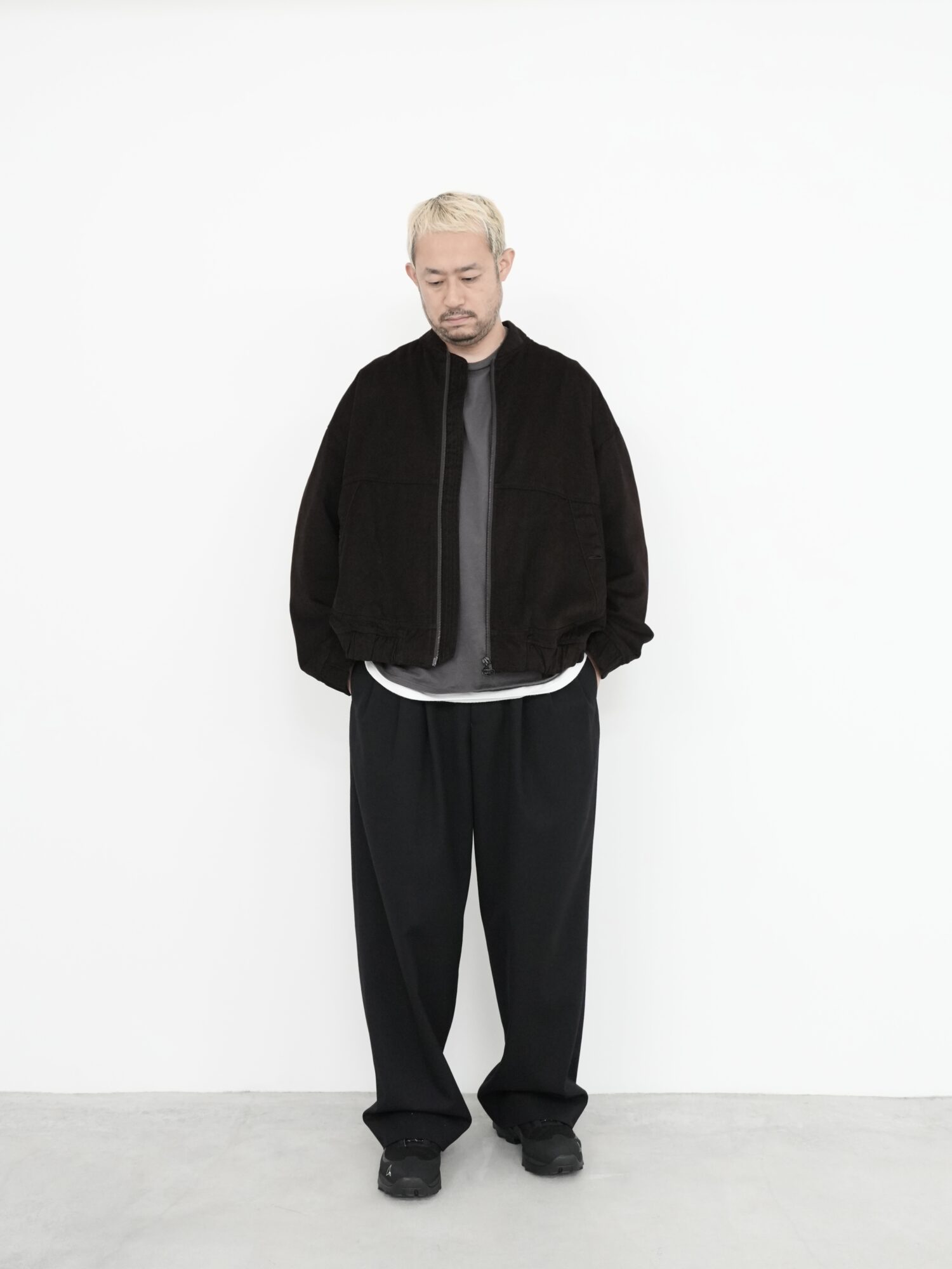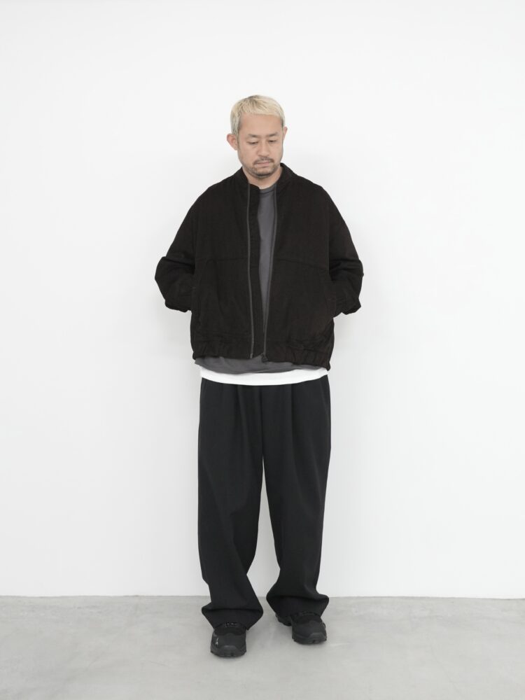 快適さと軽やかさを追求したジップフロントブルゾン。総裏仕立てで柔らかな構造を持ち、袖口と裾にはゴム仕様を採用しフィット感を高めています。ボタン付きのパッチポケットが実用性とさりげないボリュームをプラス。洗練された質感とリラックスした雰囲気を兼ね備えた、日常使いに適したレイヤーです。