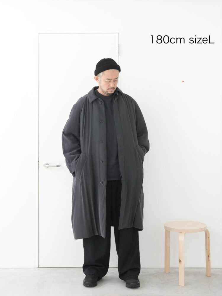ミニマルな表情の比翼ボタンフロントや袖口のストラップディテール、ハンドウォーマーポケットなど、シンプルながら細部まで丁寧に設計された一着。総裏仕立てで滑らかな着用感も魅力です。