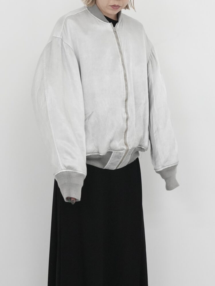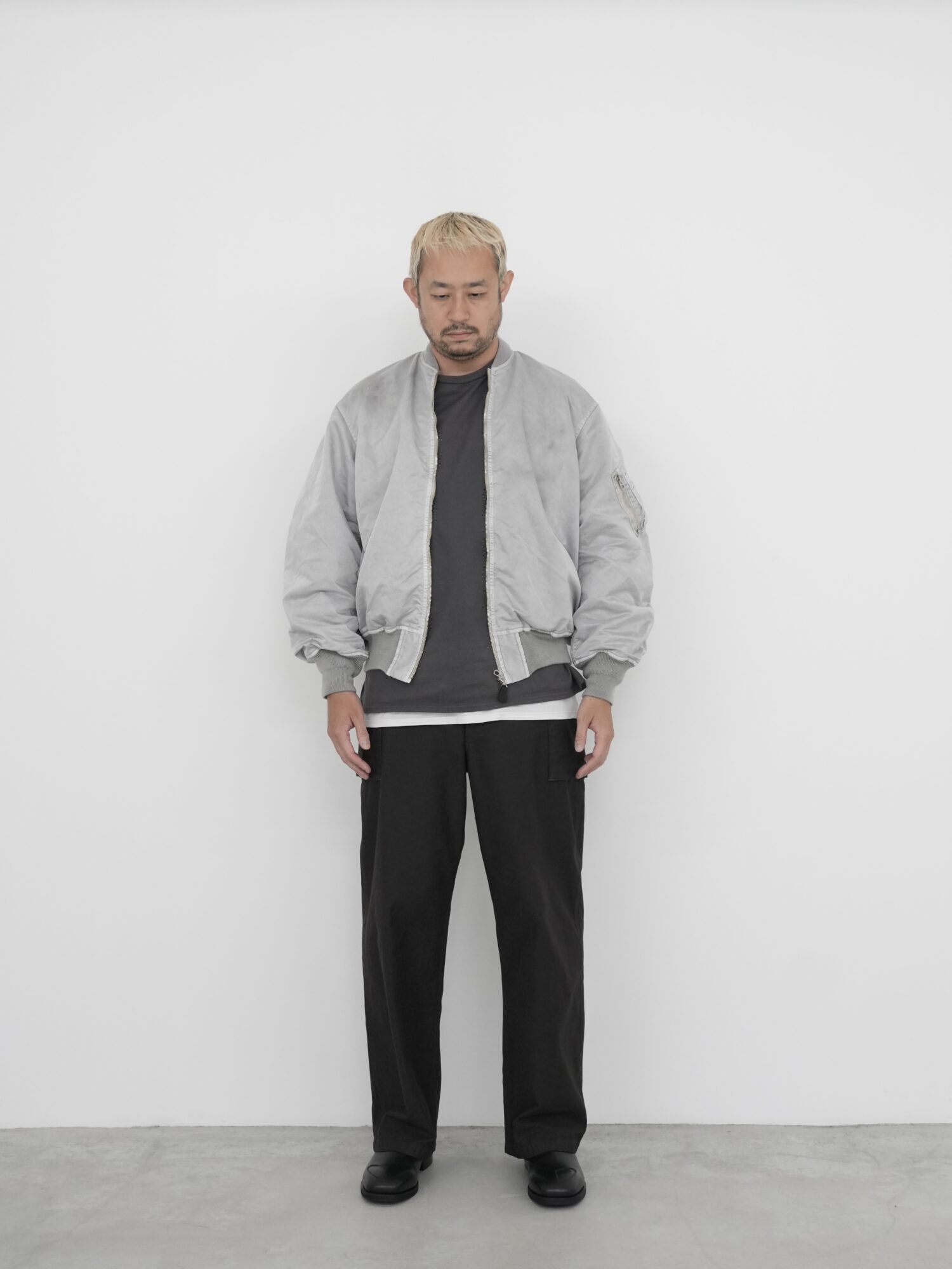 ベンガラ染めの手法で職人により1点1点手染めされた BOMBER JACKET。