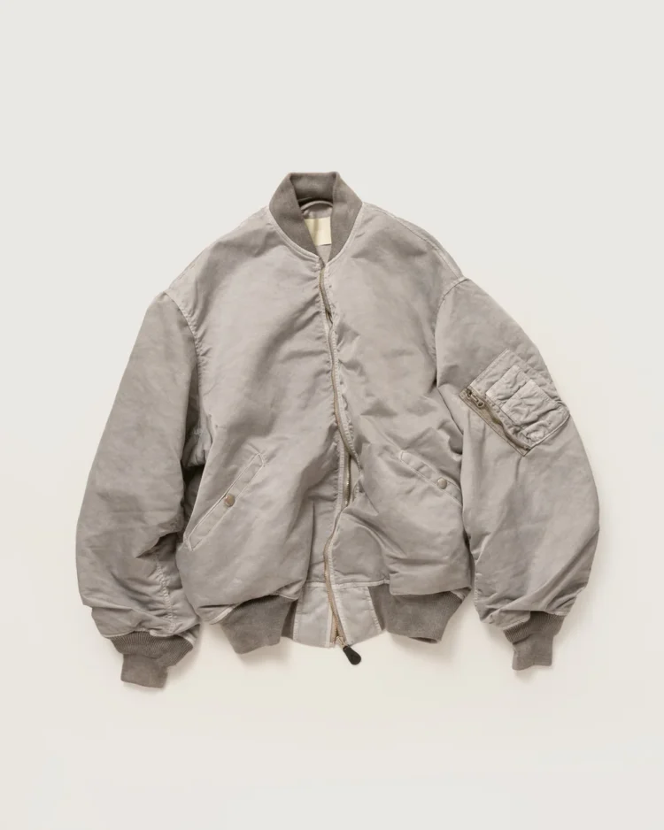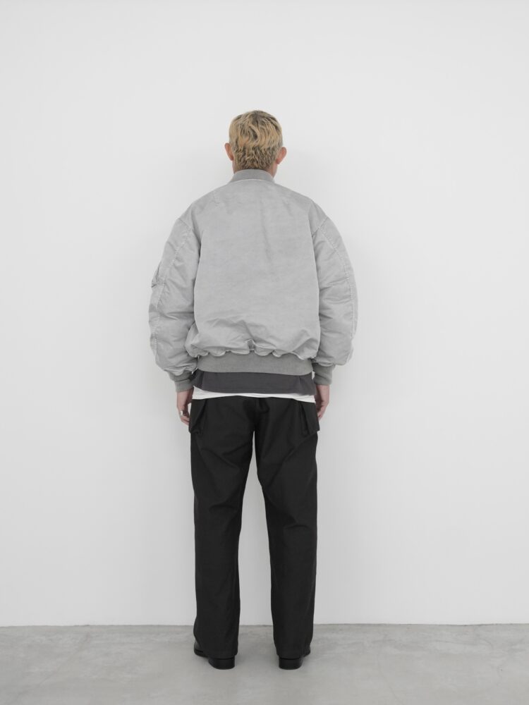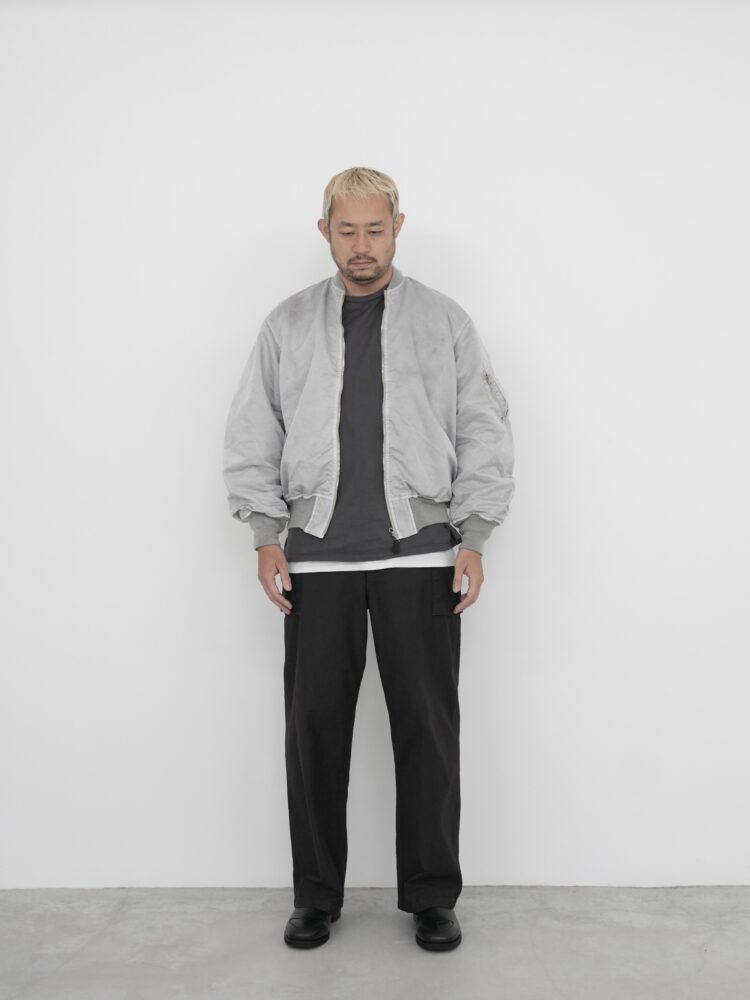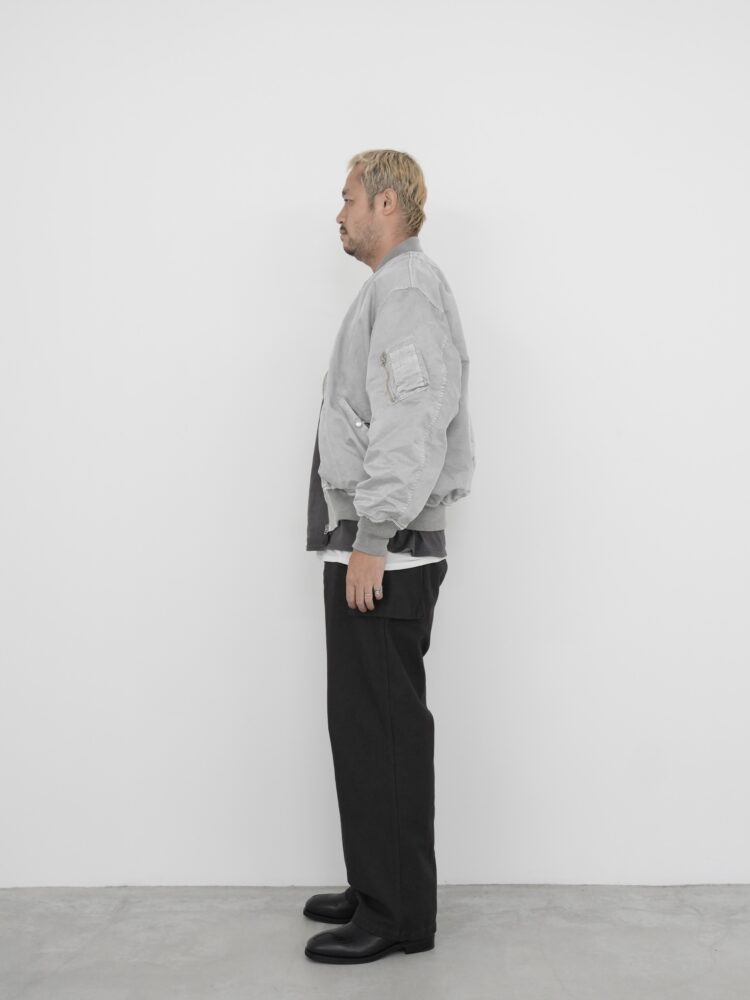 MA-1とは異なり、中綿が入っていない代わりに、裏地側のウール面を起毛させることで厚みを出しています。