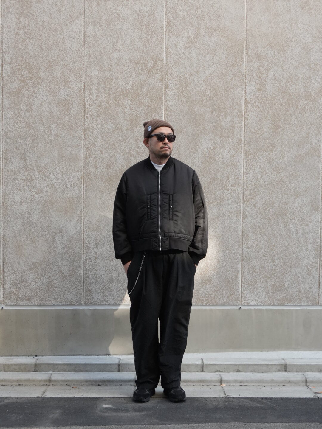 ミリタリーの仕事着であるフライトジャケットと、土産服である至福の横須賀ジャケット。相反する2つの要素を1枚で楽しめる、ON&OFFがテーマのアイテムです。