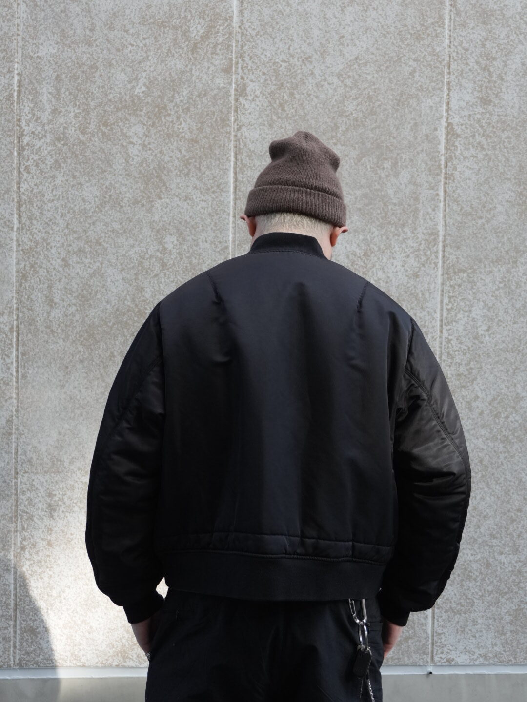 Unlikelyならではのアレンジで、ヴィンテージのアメリカ軍フライトジャケットMA-1をベースに、横須賀スーベニアジャケットの要素を加え、リバーシブルで着用できるアイテムに仕上げました。ヴィンテージMA-1特有の着古したようなサイズ感を再現するため、身幅を大きく、着丈は短くデザイン。