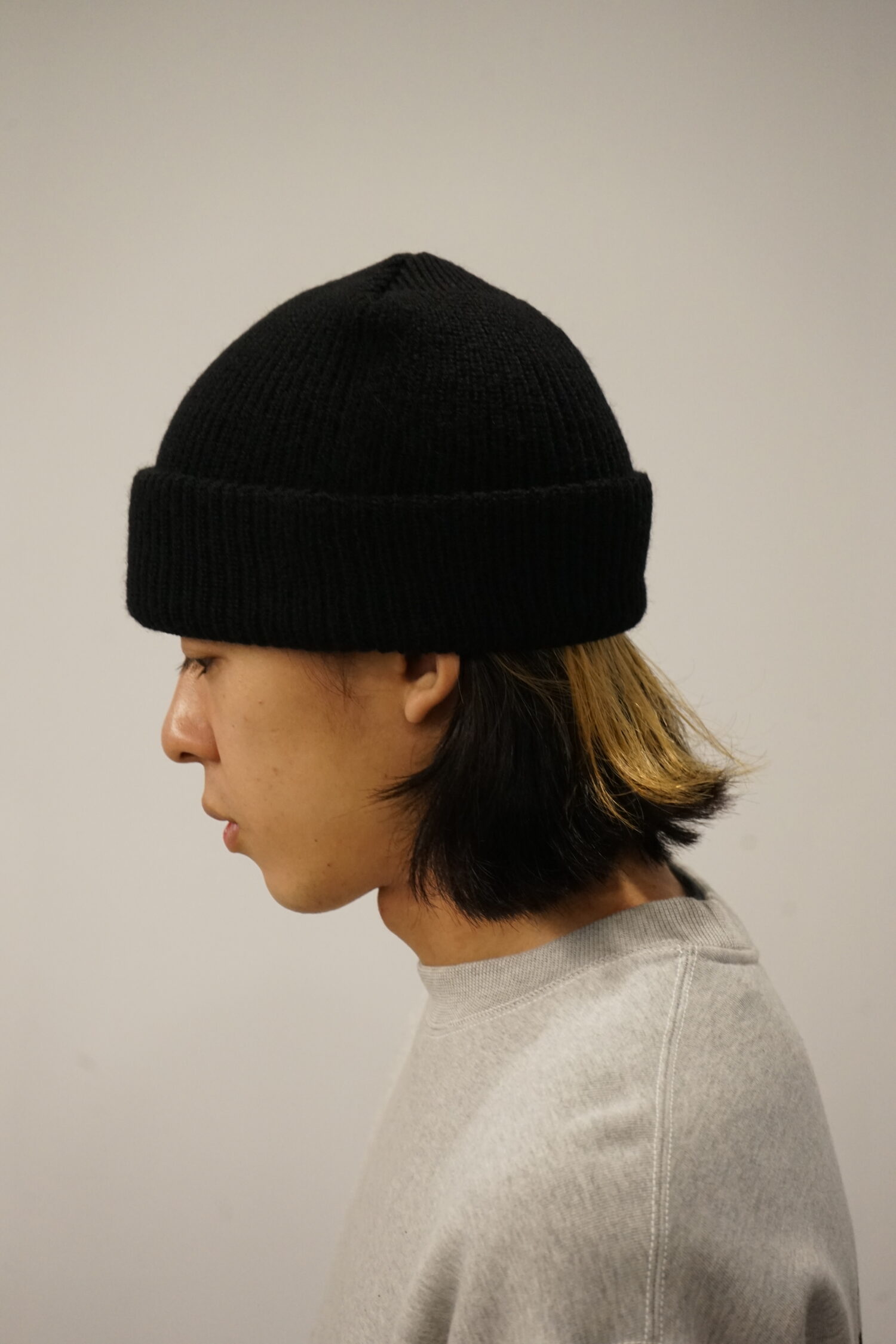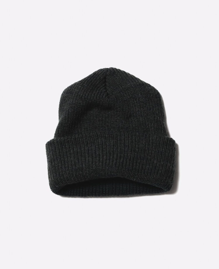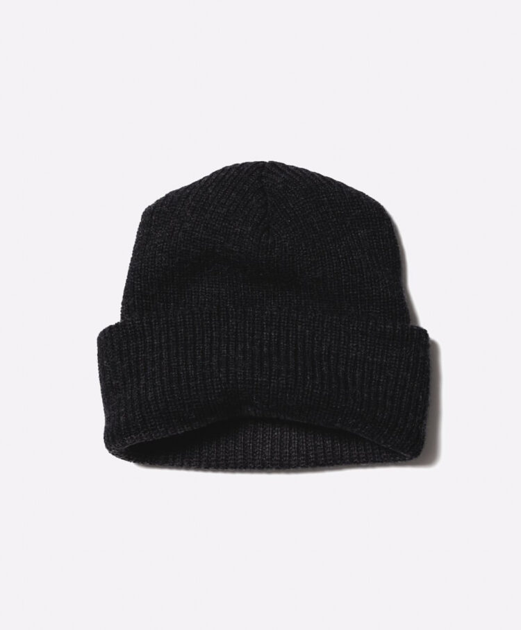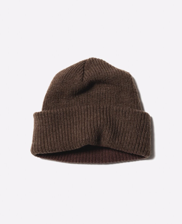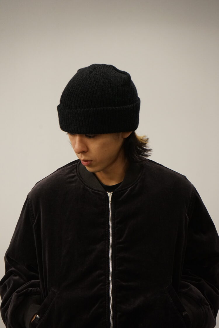 アメリカ軍のワッチキャップをデザインソースにUnlikelyな考えを注入したアイテムです。 チューブ状に編みたてられたラムウールを使用しているような外観ですが、内側、肌にあたる部分はコットンのコーマ糸を使用。 つまりは、大好きなウールのワッチキャップではあるものの、肌が敏感なデザイナーのこれがあればよりワッチキャップが心地良く着用できるのでは?を体現したアイテムです。