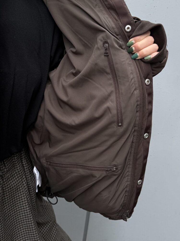 表地にはコットンタッチの撥水のナイロン素材を使用。ダウンの分量もしっかりと入れています。