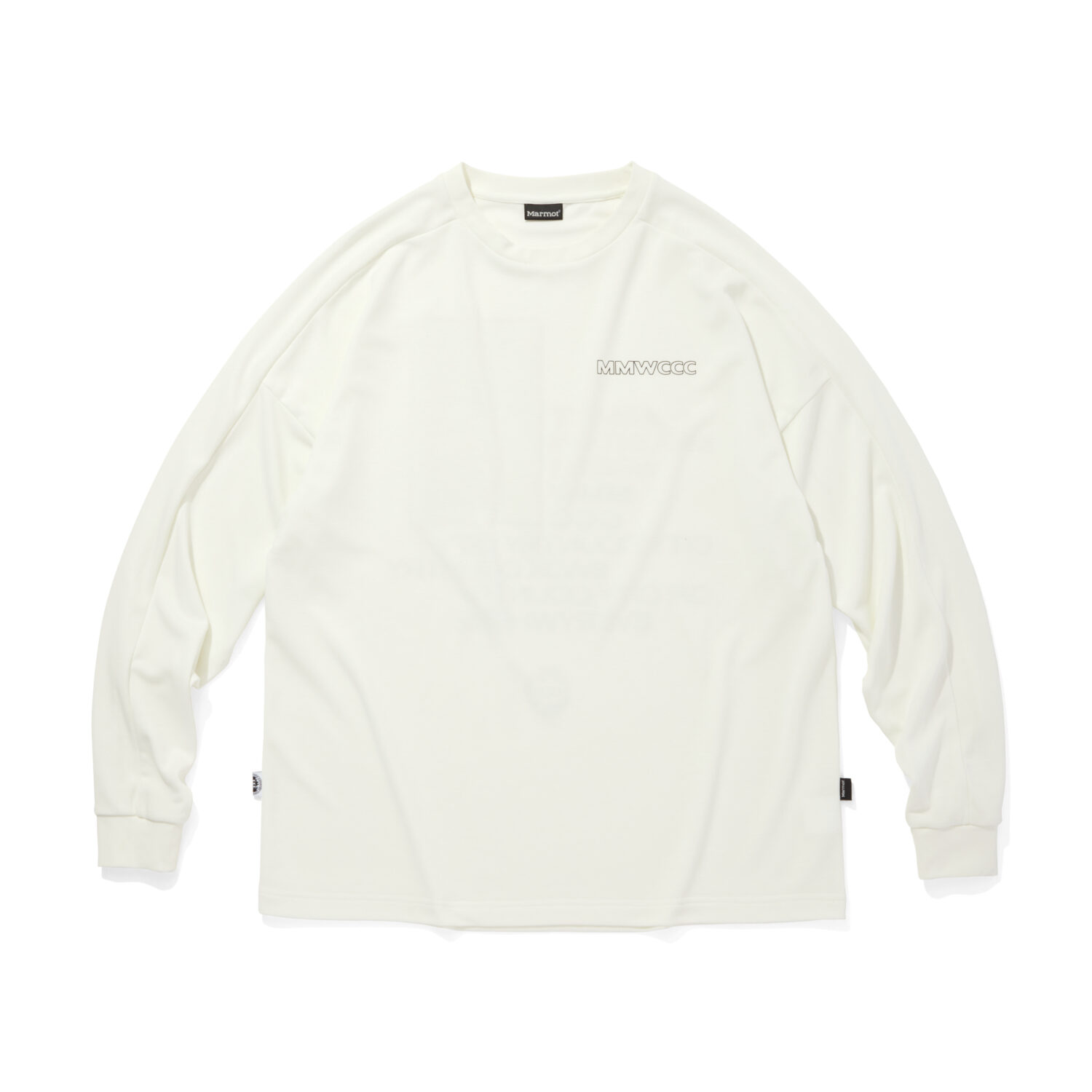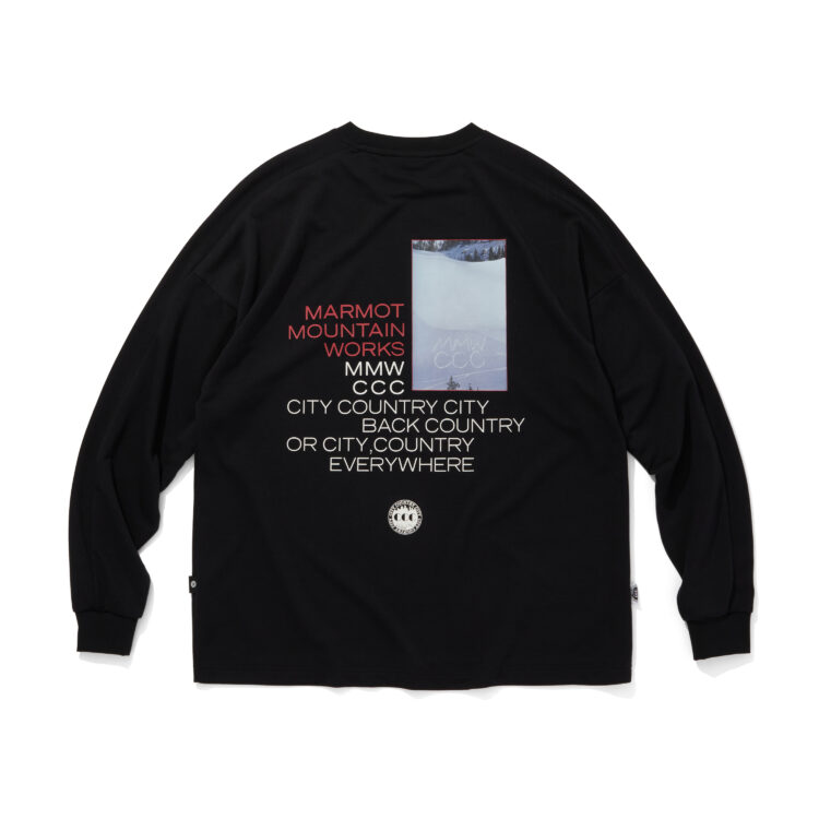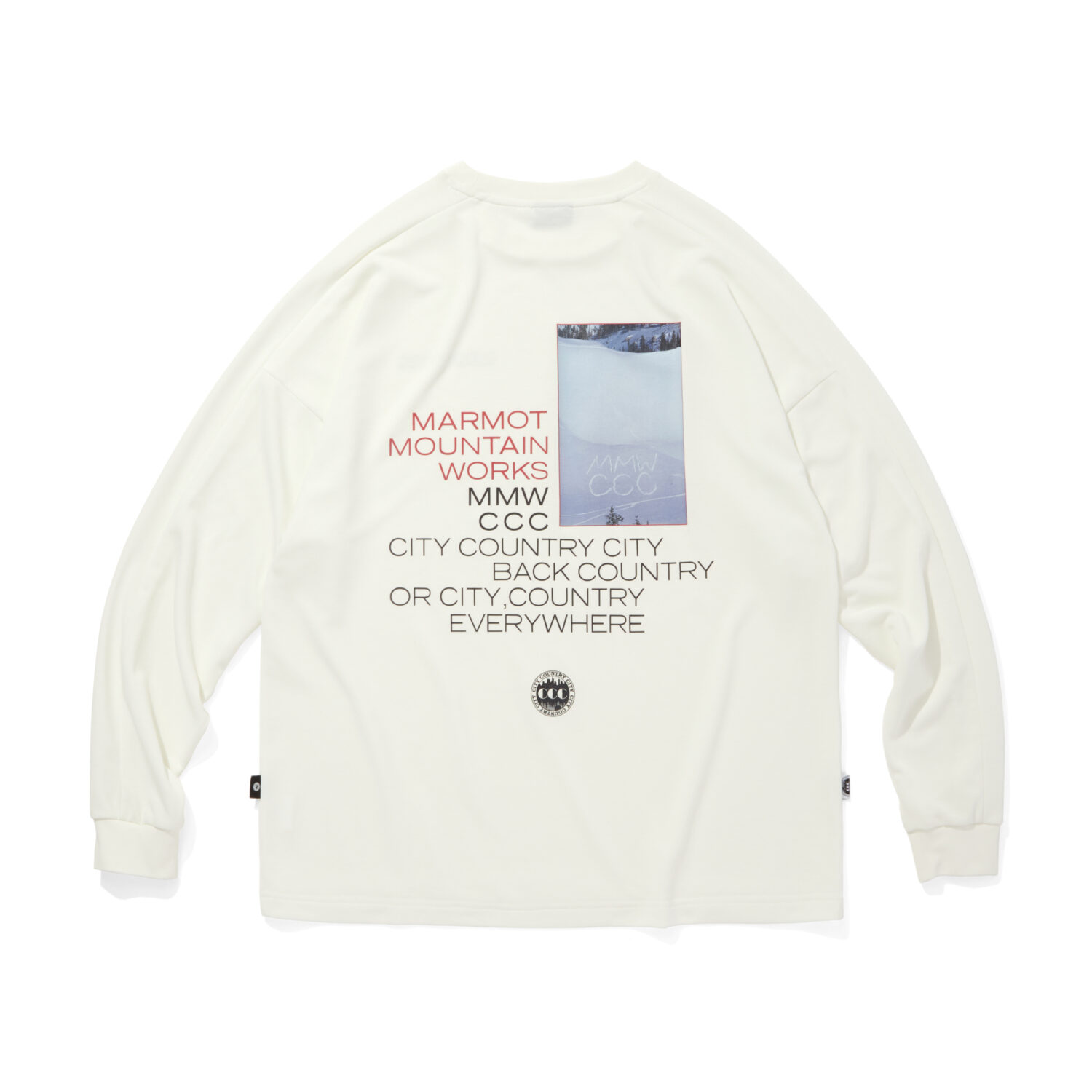 米国のアウトドアブランドMarmotとCITY COUNTRY CITYの4度目となるカプセルコレクション。 Marmotのアーカイブを元に、CITY COUNTRY CITYが過去と現在を融合させたグラフィック&デザイン。展開アイ テムは、”Everywhere”シリーズと名付けられ、日常やランニング&アウトドアのシーンでも着用可能なコレクションに 仕上がっています。 コットンライクな吸水速乾機能を持ったポリエステル素材を採用した、ゆったりとしたシルエットのドライロングスリーブT シャツ。