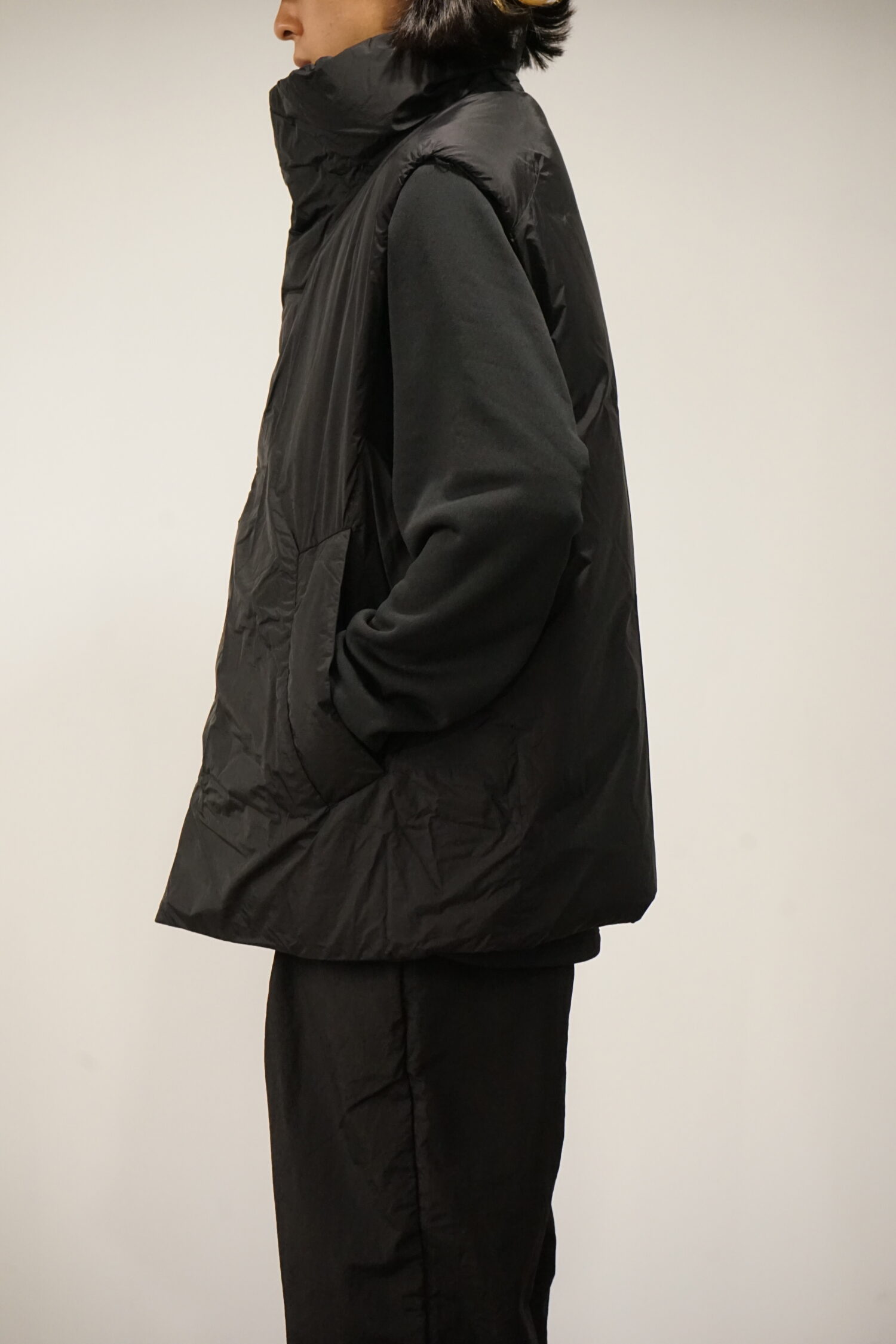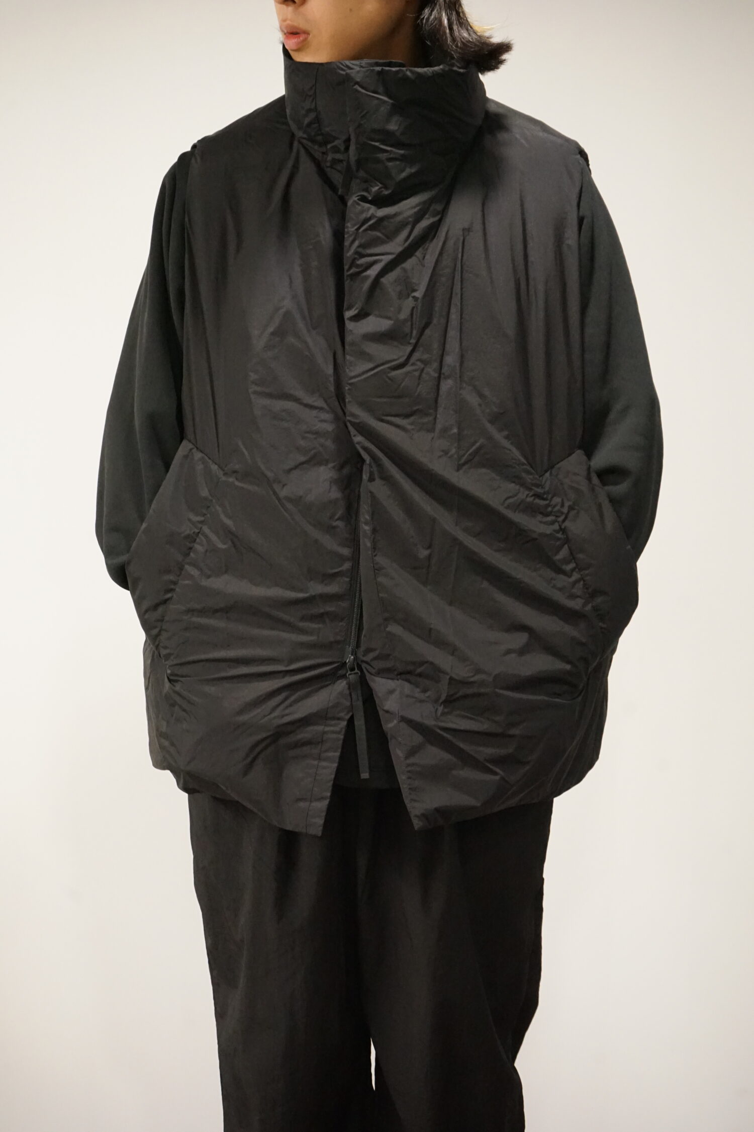左右の前身頃にはおおぶりのファスナーポケットを4つ内蔵。