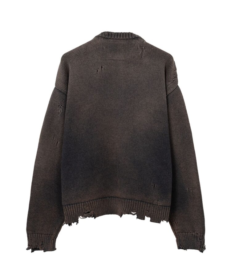 裾、袖口は、まるでニットがほつれたようにデザイン。