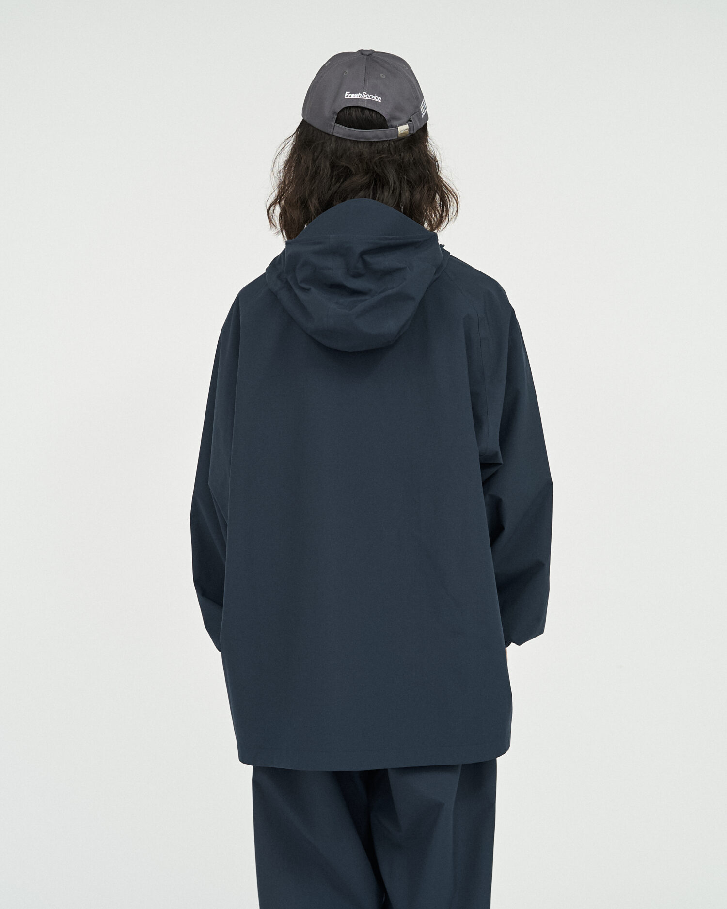 オーバーサイズのフード付きシェルジャケット。