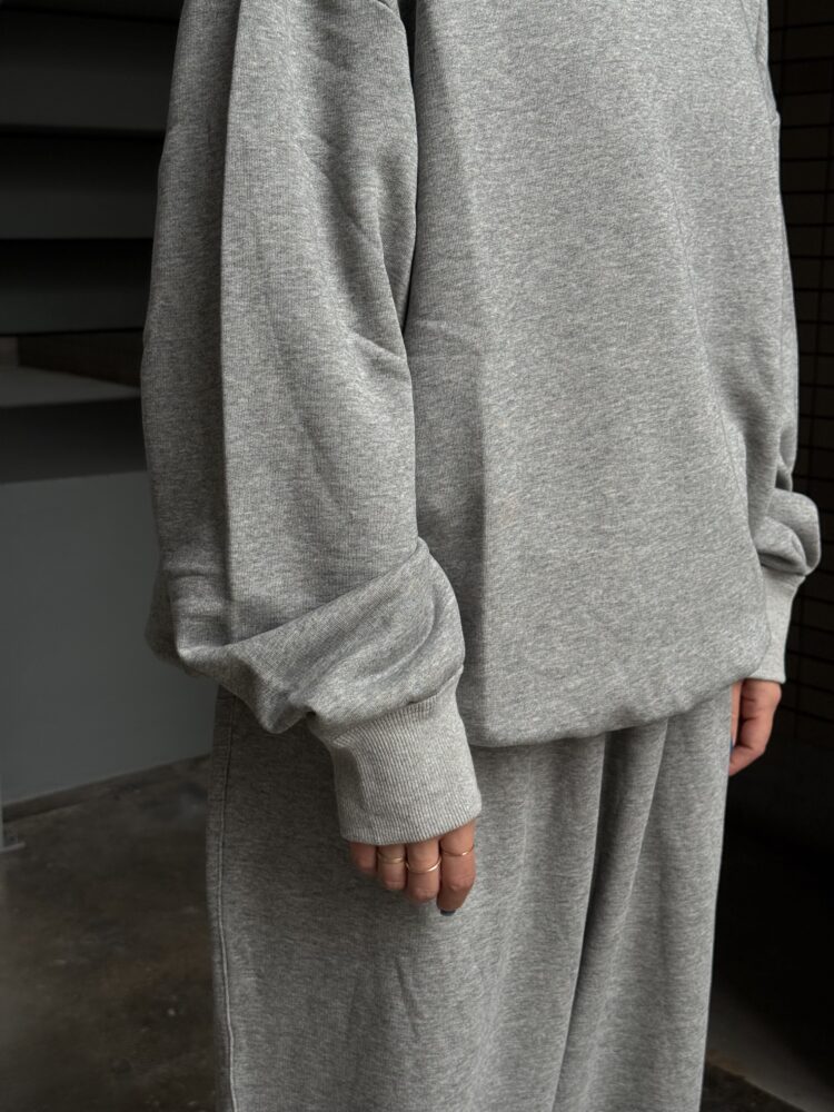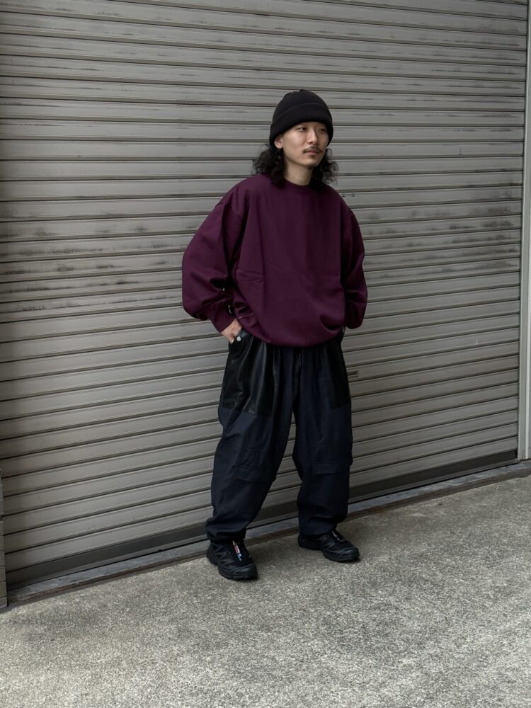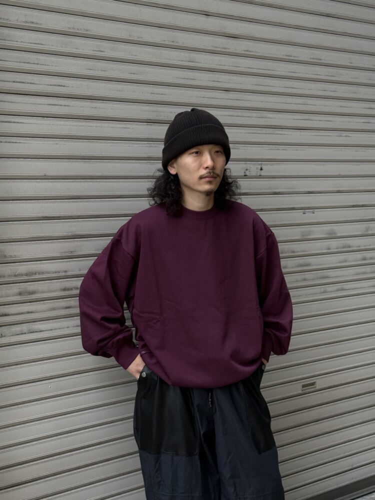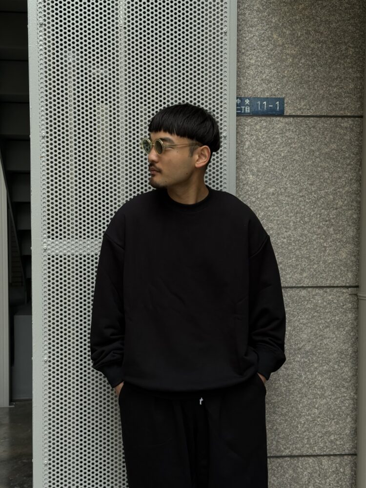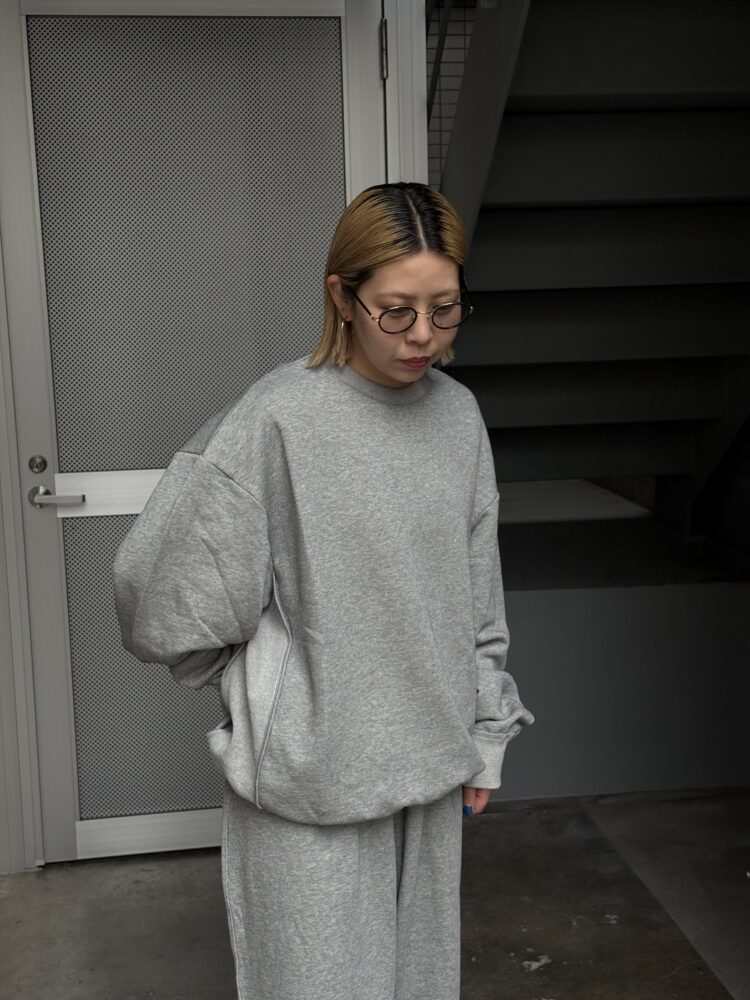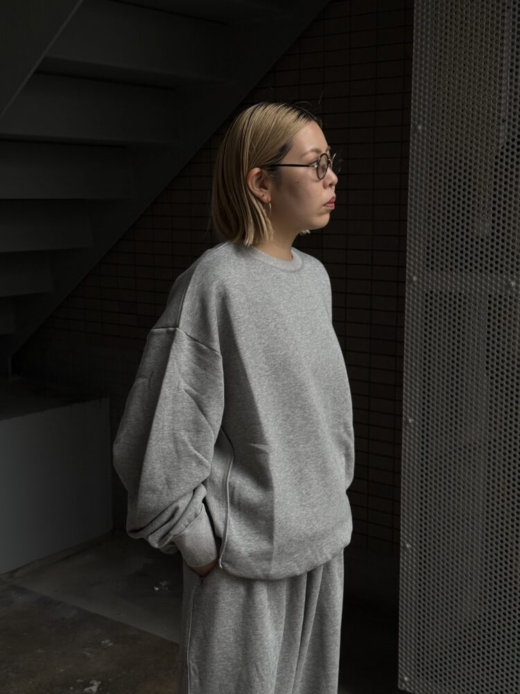 身幅やアームホールに余白を持たせたオーバーサイズで、程よい厚みの裏毛は通年での着用が可能です。
