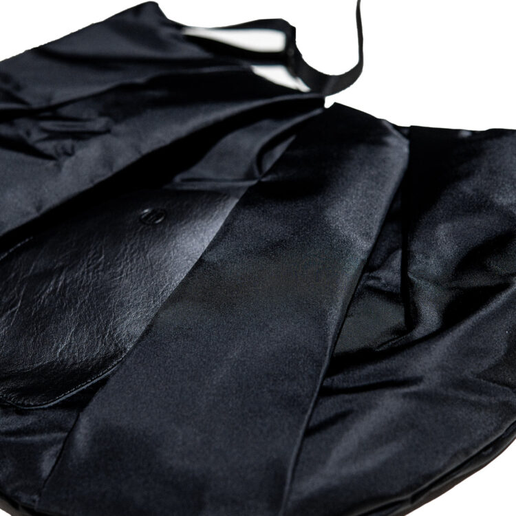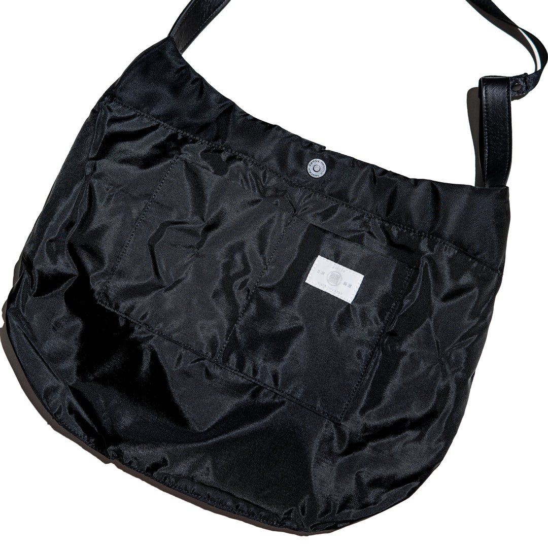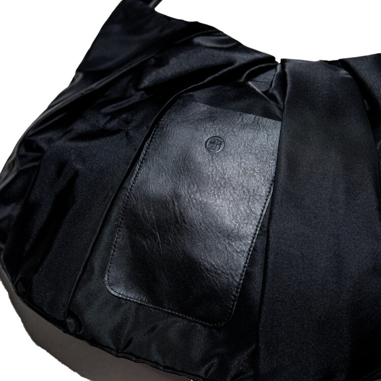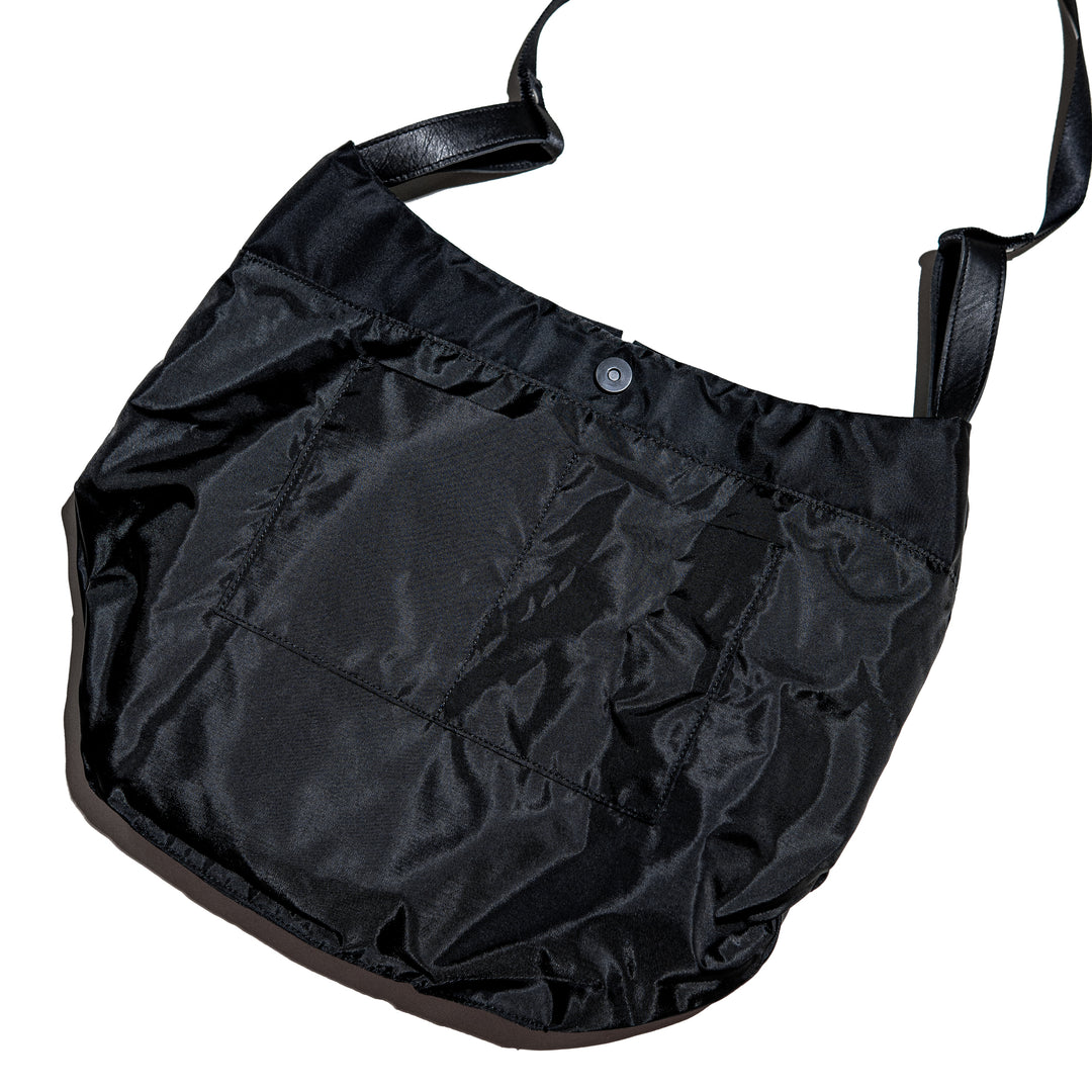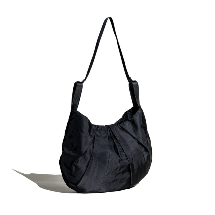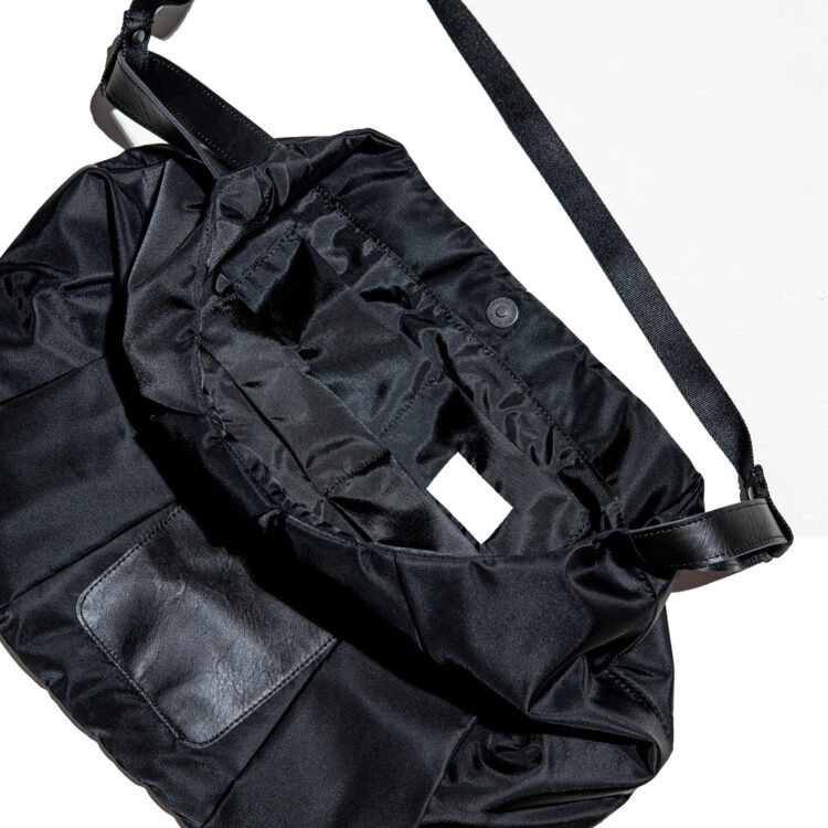 日本古来より受け継がれている「袴」から着想を得ました。レジ袋を持つようにご使用いただけます。ショルダーも付属。タックを大きく入れて立体的な表情に。丸い独特のフォルムが独特の存在感を出しており、スタイリングのアクセントになります。メインボディーはうっすら光沢感の感じられる日本製中肉ナイロン。裏地にはテック系アウトドアのアウターなどにも採用される高強度の66ナイロンを使用しておりますが、極薄です。表生地も同じく強度はありながら柔らかく、しなやかです。これら二つの生地が丁度よく重なることで、まるで衣服の延長のように、重力に沿った「ドレープ感」を出すことができました。付属レザーは兵庫県姫路市にて製作されたyorozuオリジナル防水革。マットな仕上がり。サスティナブルな製法。しなやかなで肌触りが心地よいです。