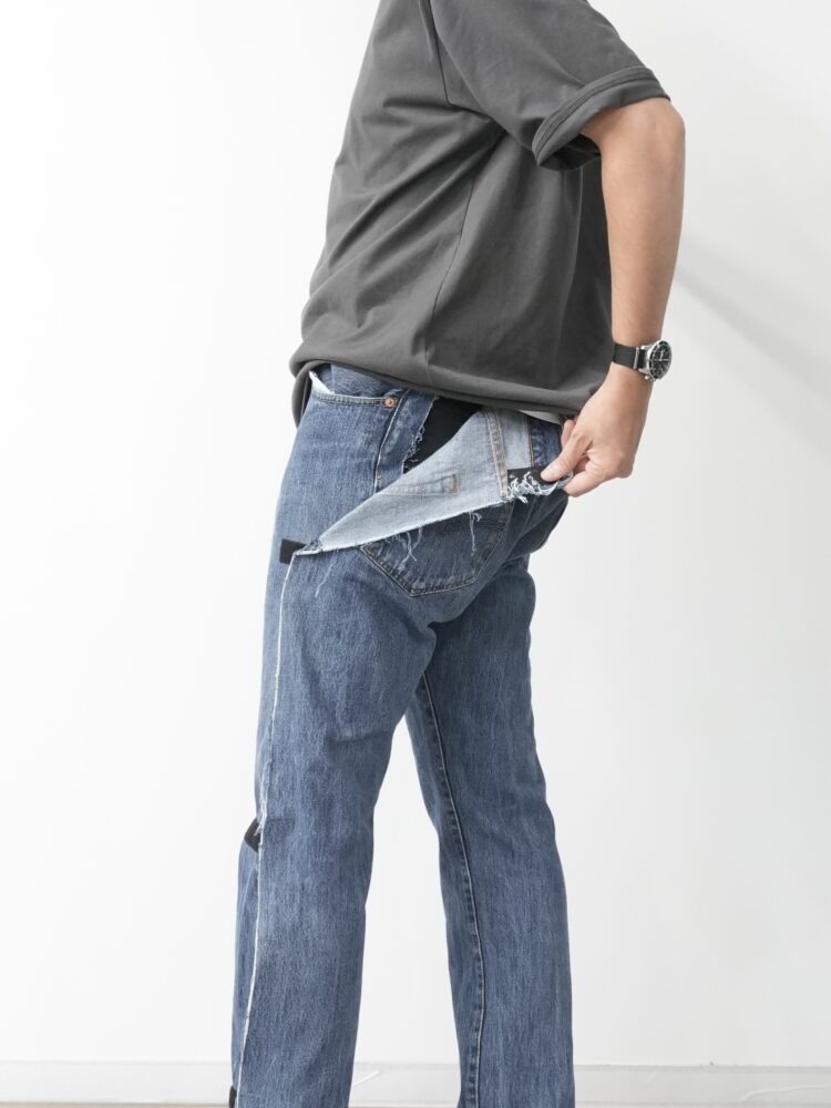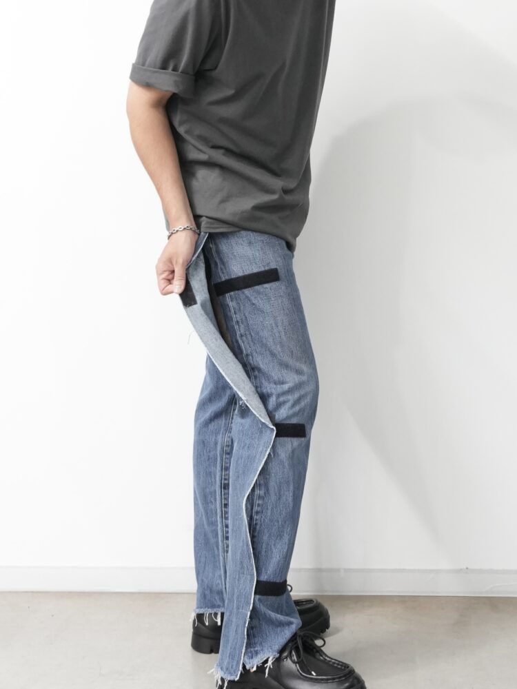 腰からウエストにかけて切り離されており、マジックテープでシルエットの調整が可能なデザイン。 ウエスト部分が平ゴムでつながれています。レイヤードで遊ぶこともできるアイテムです。