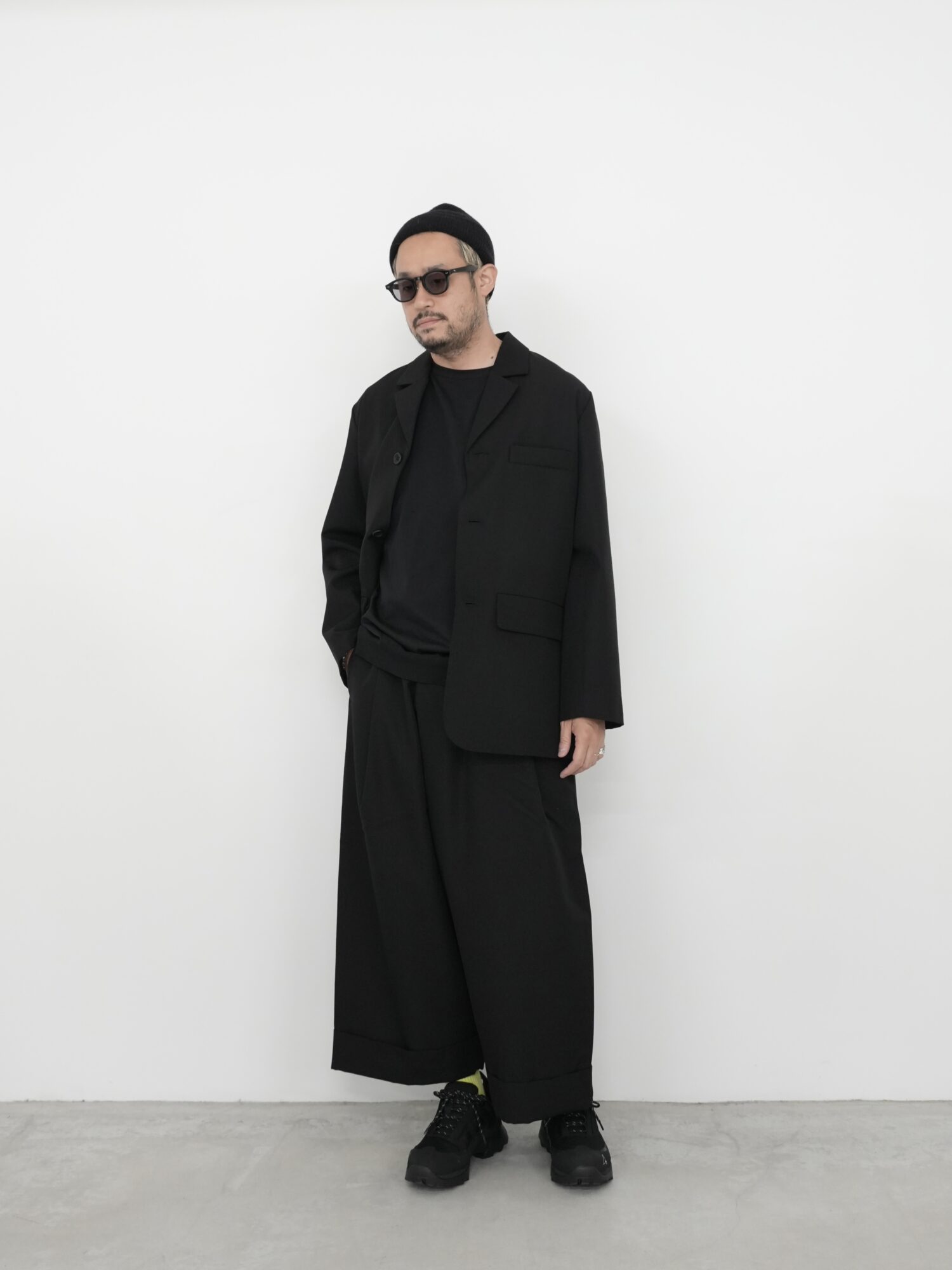 このジャケットは、イタリア産バージンウール100%のスーツ地で仕立てられています。緻密に織り上げられた上質な生地は、洗練された流麗さと美しいドレープを備え、Toogoodらしい彫刻的なボリュームを際立たせます。