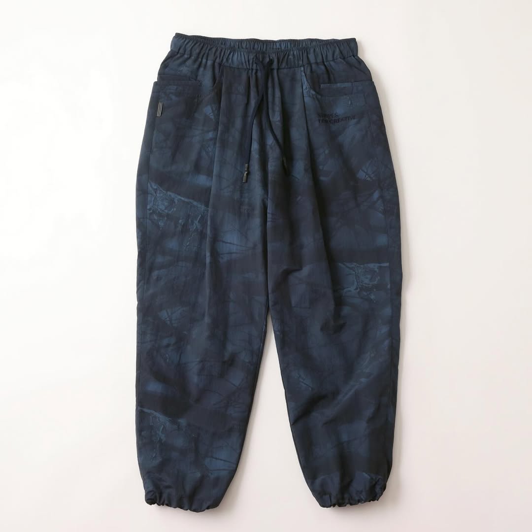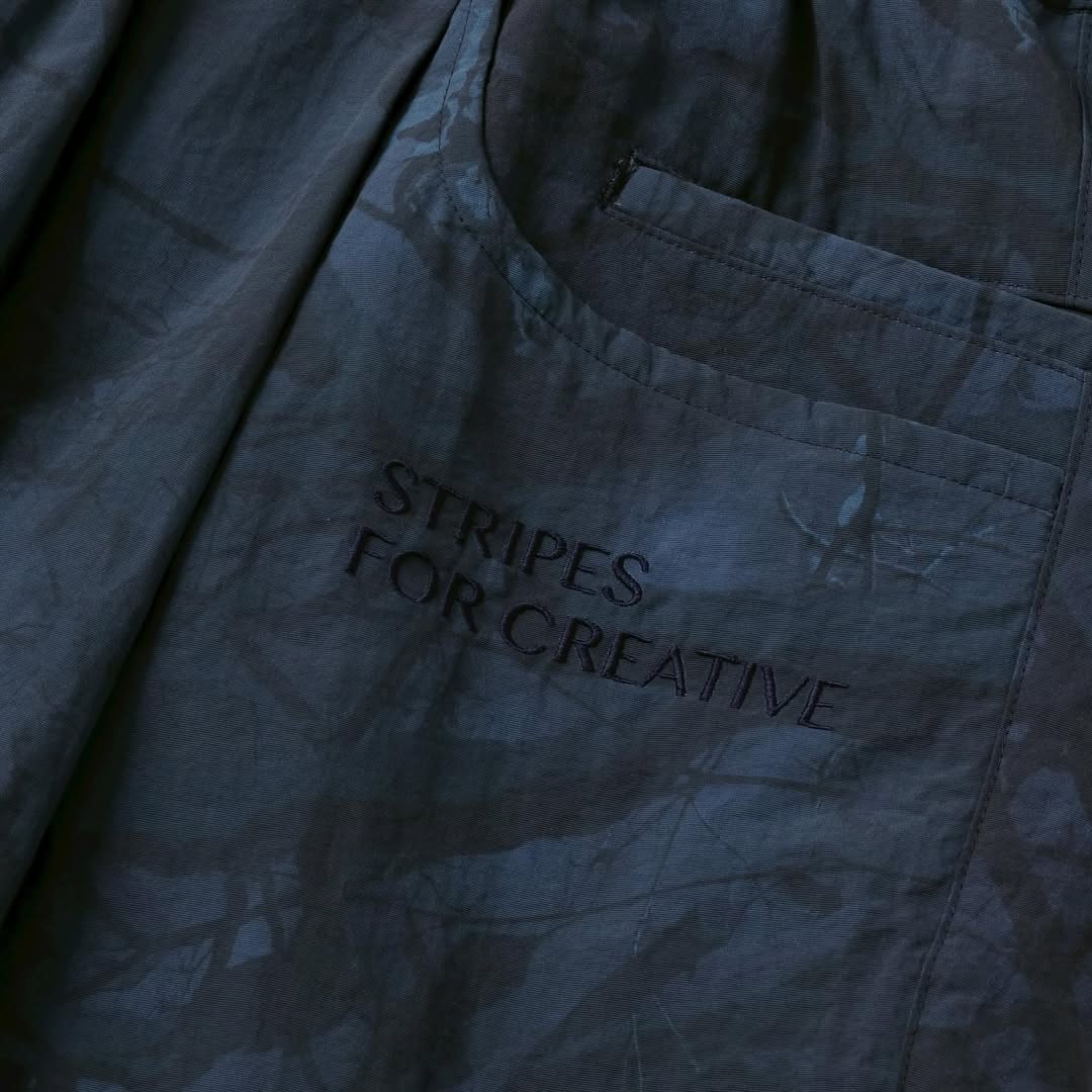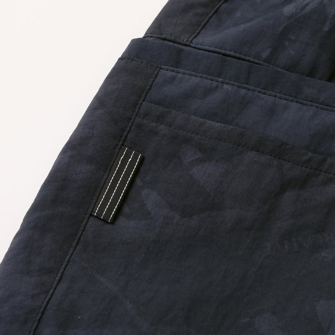 S.F.C (エスエフシー)のWIDE TAPERED EASY PANTS (REAL TREE CAMO) / NAVY TREE CAMOになります。SFC TARERED EASY PANTSをさらに腰回りを大きく、裾幅を広く、ワイドなシルエットにアレンジしたワイドテーパードパンツ。裾のアジャスター付きドローコードを絞ることでシルエットのアレンジも可能。素材はコットンライクの肌触りが特徴のオリジナルカモ柄のナイロンタスランタフタを使用。軽さの中に適度なハリと強度を持ち、撥水性、防風、紫外線ブロックなどの機能を兼ね備えています。