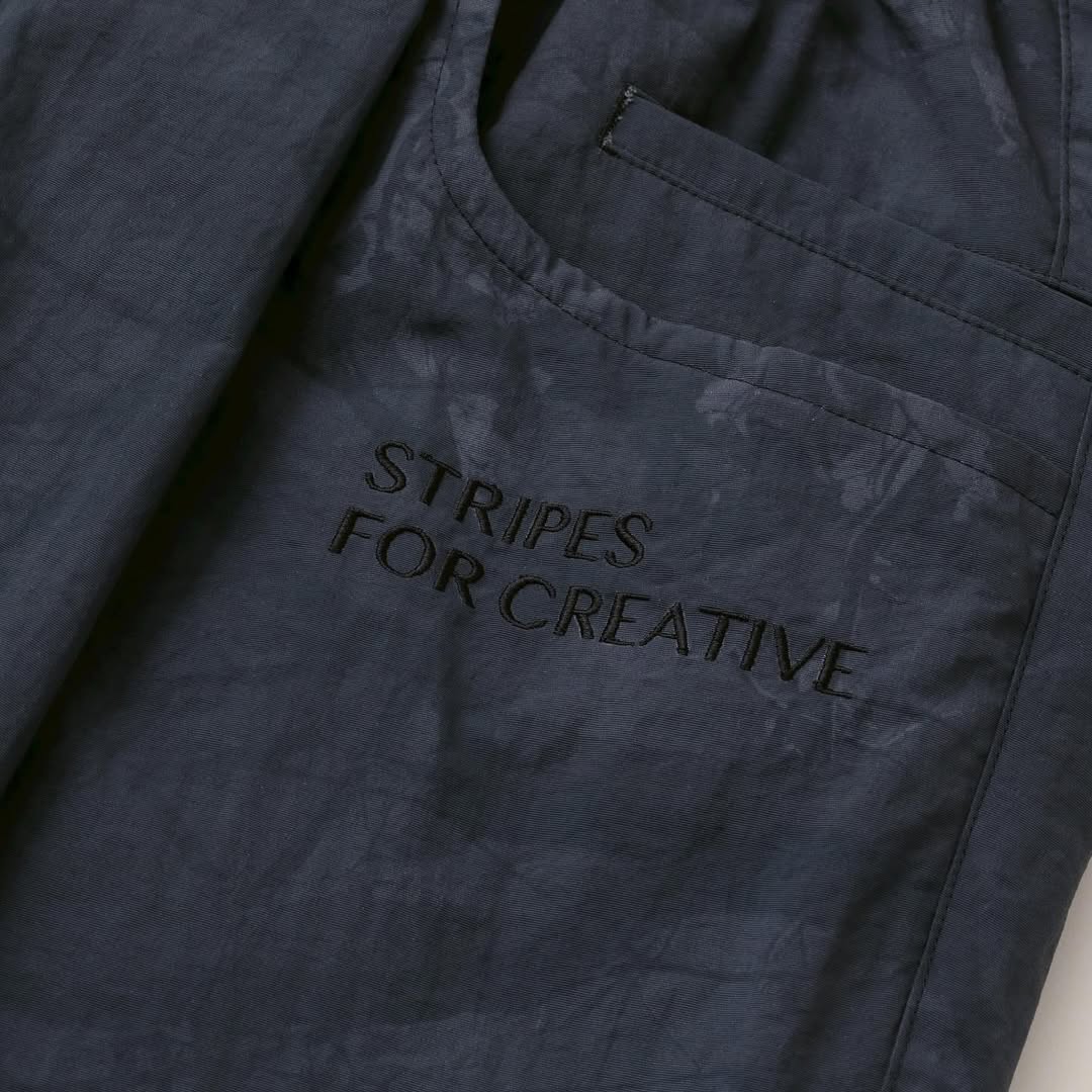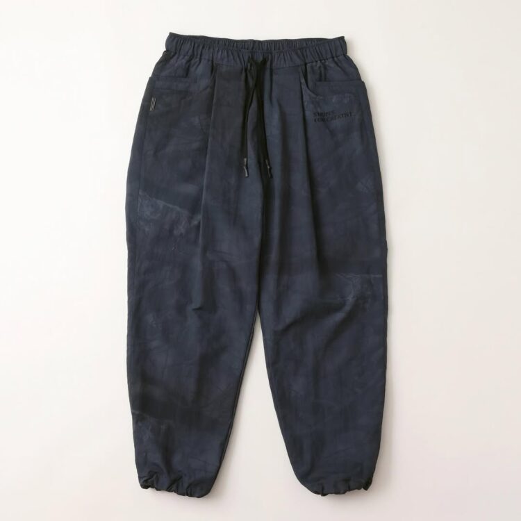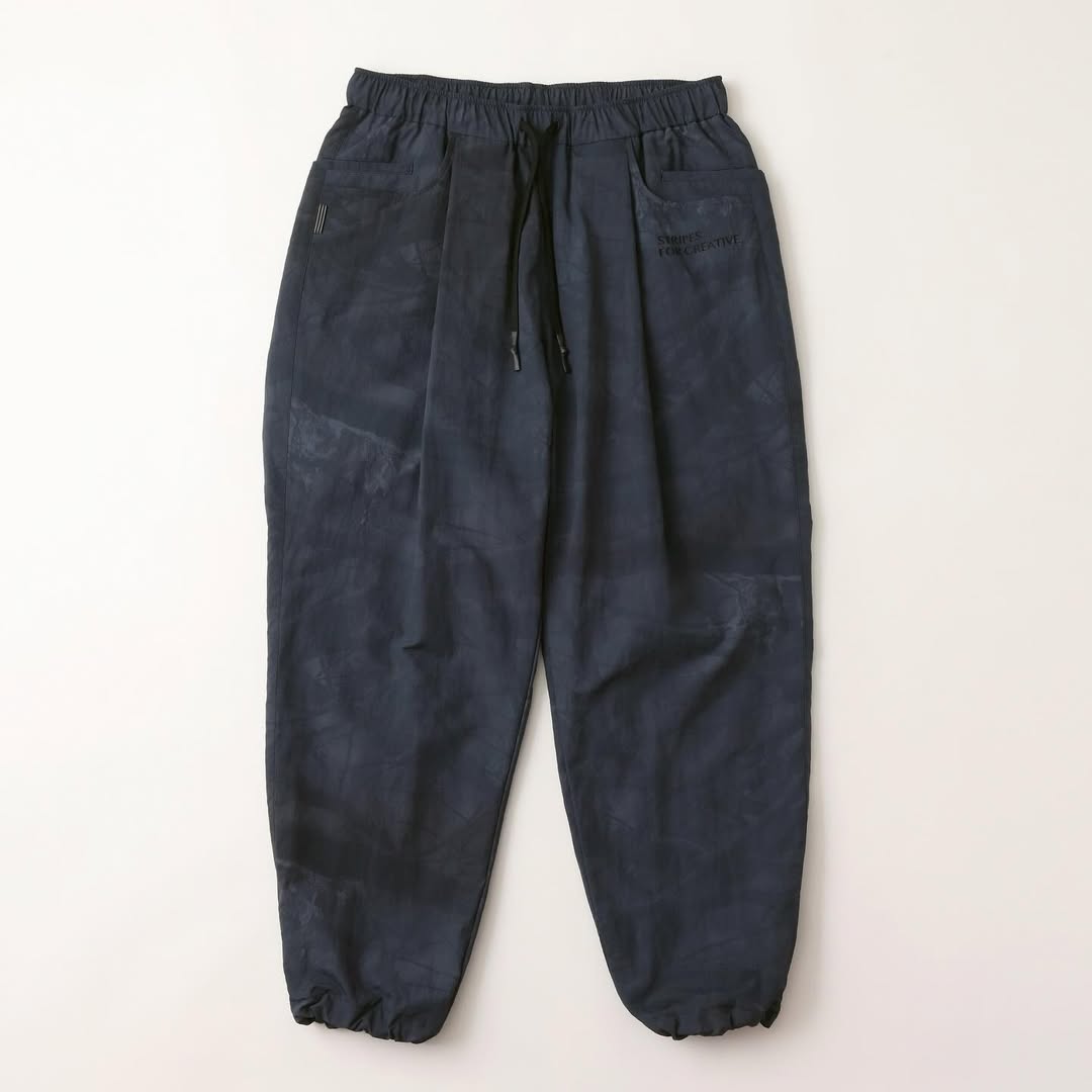 S.F.C (エスエフシー)のWIDE TAPERED EASY PANTS (REAL TREE CAMO) / NAVY TREE CAMOになります。SFC TARERED EASY PANTSをさらに腰回りを大きく、裾幅を広く、ワイドなシルエットにアレンジしたワイドテーパードパンツ。裾のアジャスター付きドローコードを絞ることでシルエットのアレンジも可能。素材はコットンライクの肌触りが特徴のオリジナルカモ柄のナイロンタスランタフタを使用。軽さの中に適度なハリと強度を持ち、撥水性、防風、紫外線ブロックなどの機能を兼ね備えています。