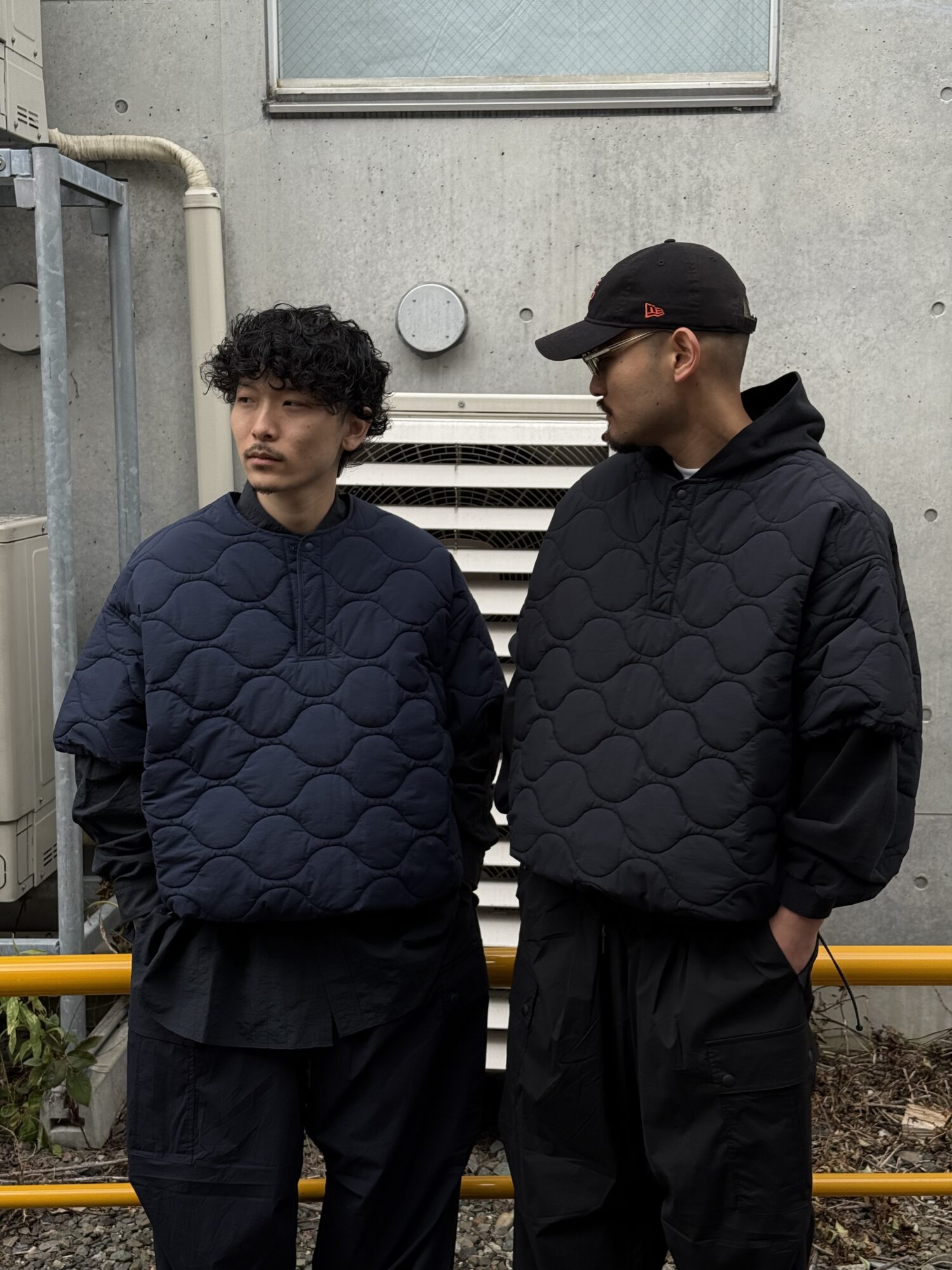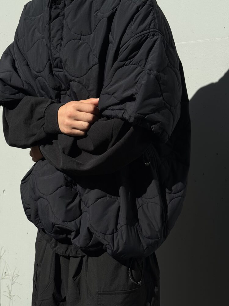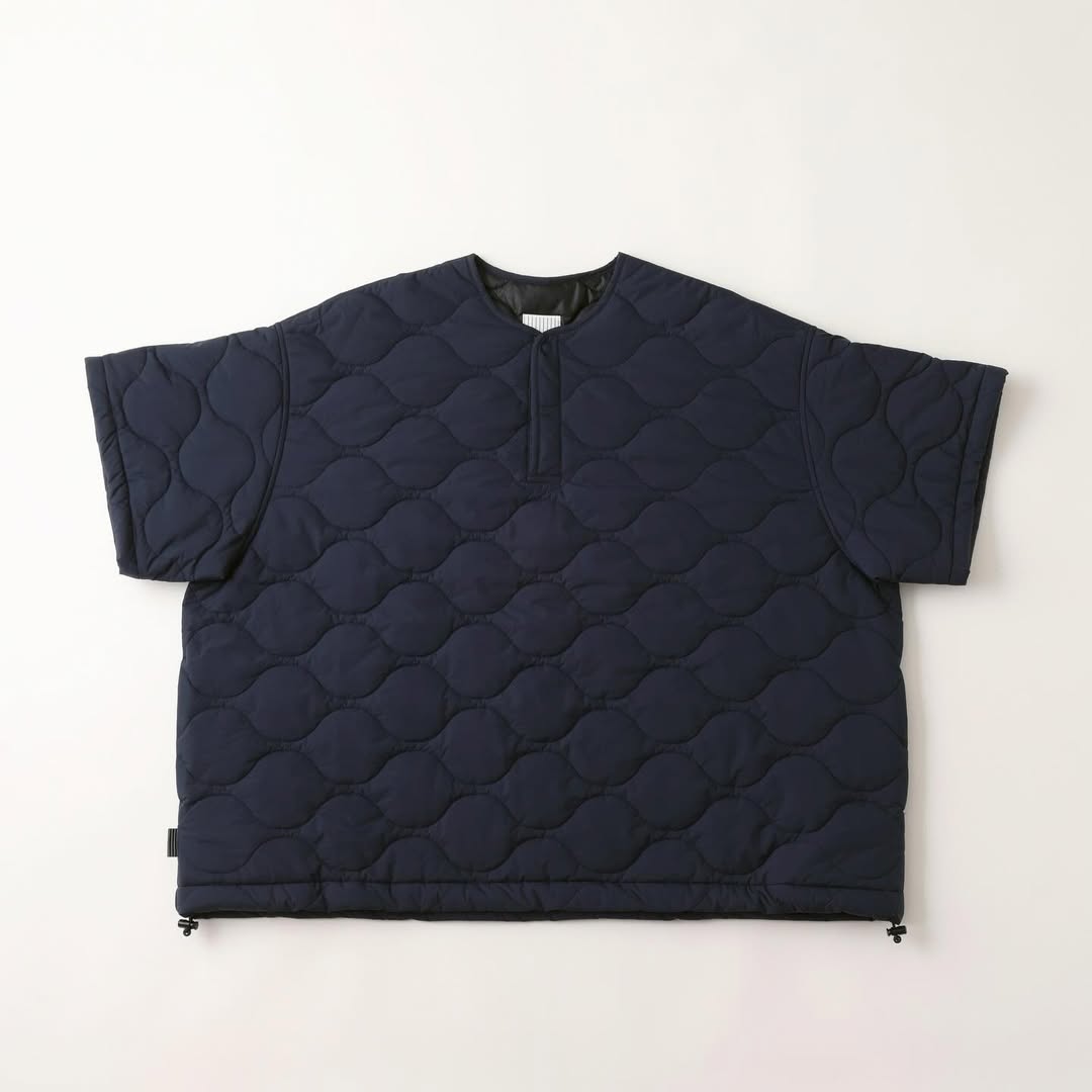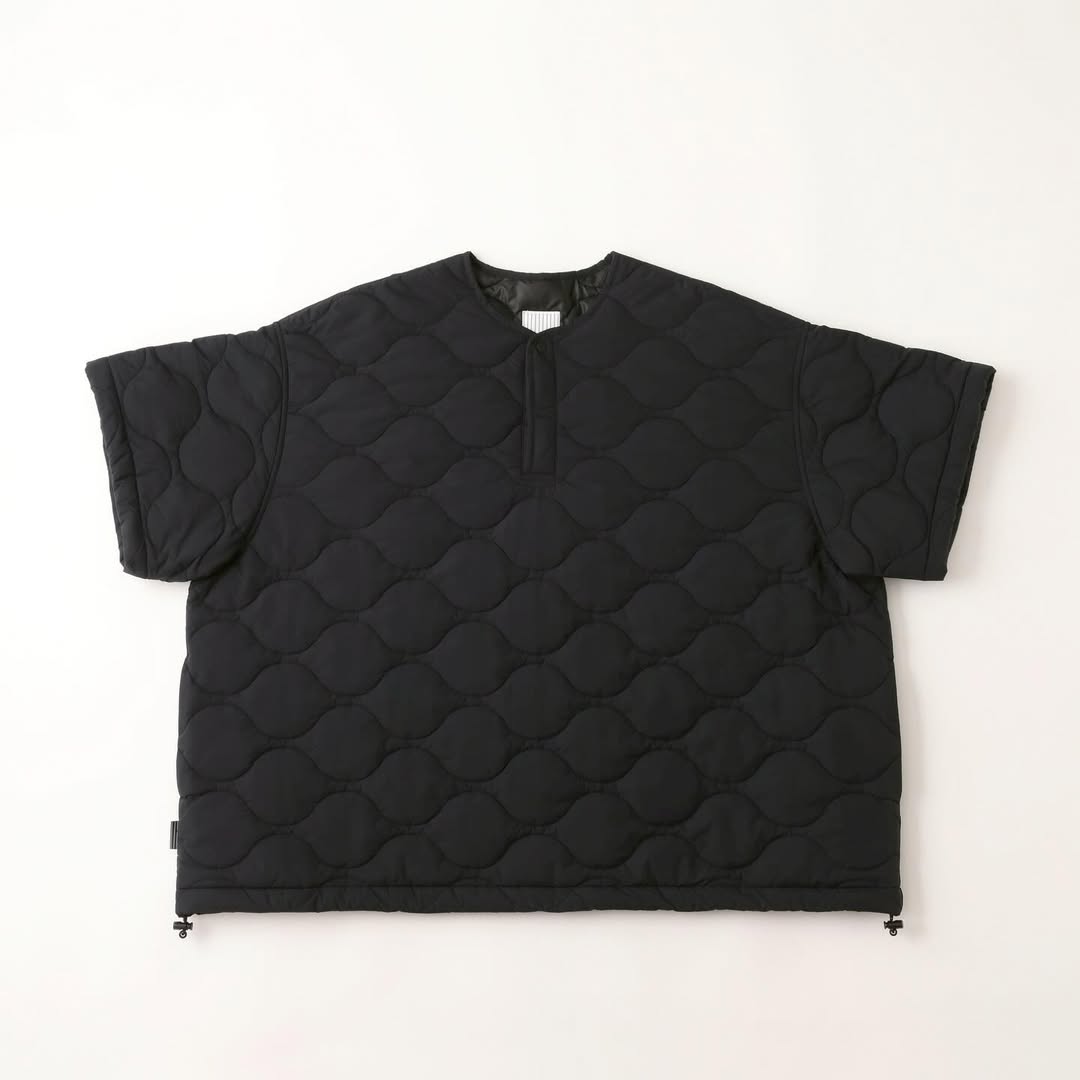 S.F.C (エスエフシー)のSUPER BIG SS PUFF JACKET / BLACKになります。SWEATやニット、またアウターの上から重ね着ができるようにデザインしたビッグサイズの中綿入り半袖プルオーバージャケット。素材は薄手の高耐久撥水性と撥油性を兼ね備えた高機能ナイロンタスランタフタを使用。内側には膨らみのある軽量の中綿を入れ保温性を持たせています。