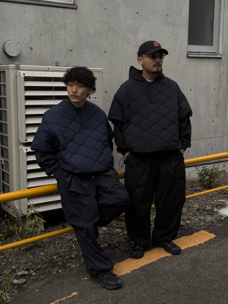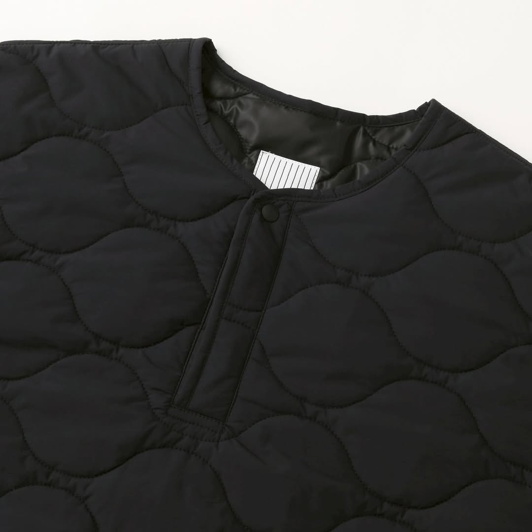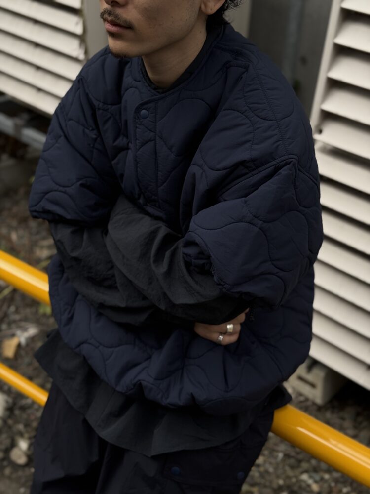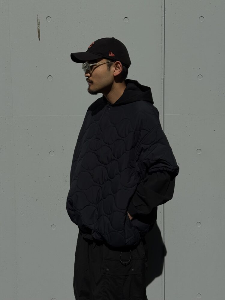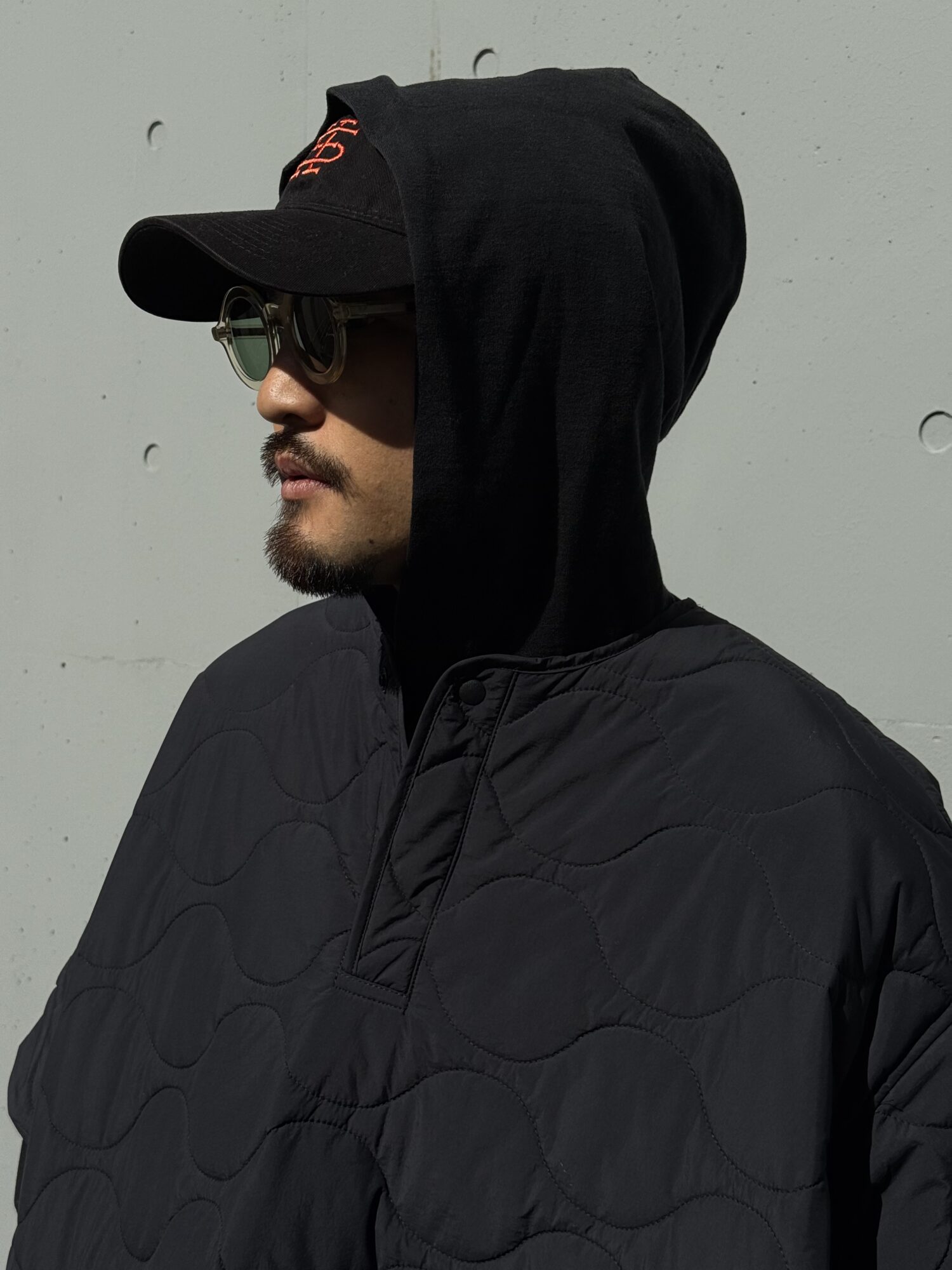 S.F.C (エスエフシー)のSUPER BIG SS PUFF JACKET / BLACKになります。SWEATやニット、またアウターの上から重ね着ができるようにデザインしたビッグサイズの中綿入り半袖プルオーバージャケット。素材は薄手の高耐久撥水性と撥油性を兼ね備えた高機能ナイロンタスランタフタを使用。内側には膨らみのある軽量の中綿を入れ保温性を持たせています。