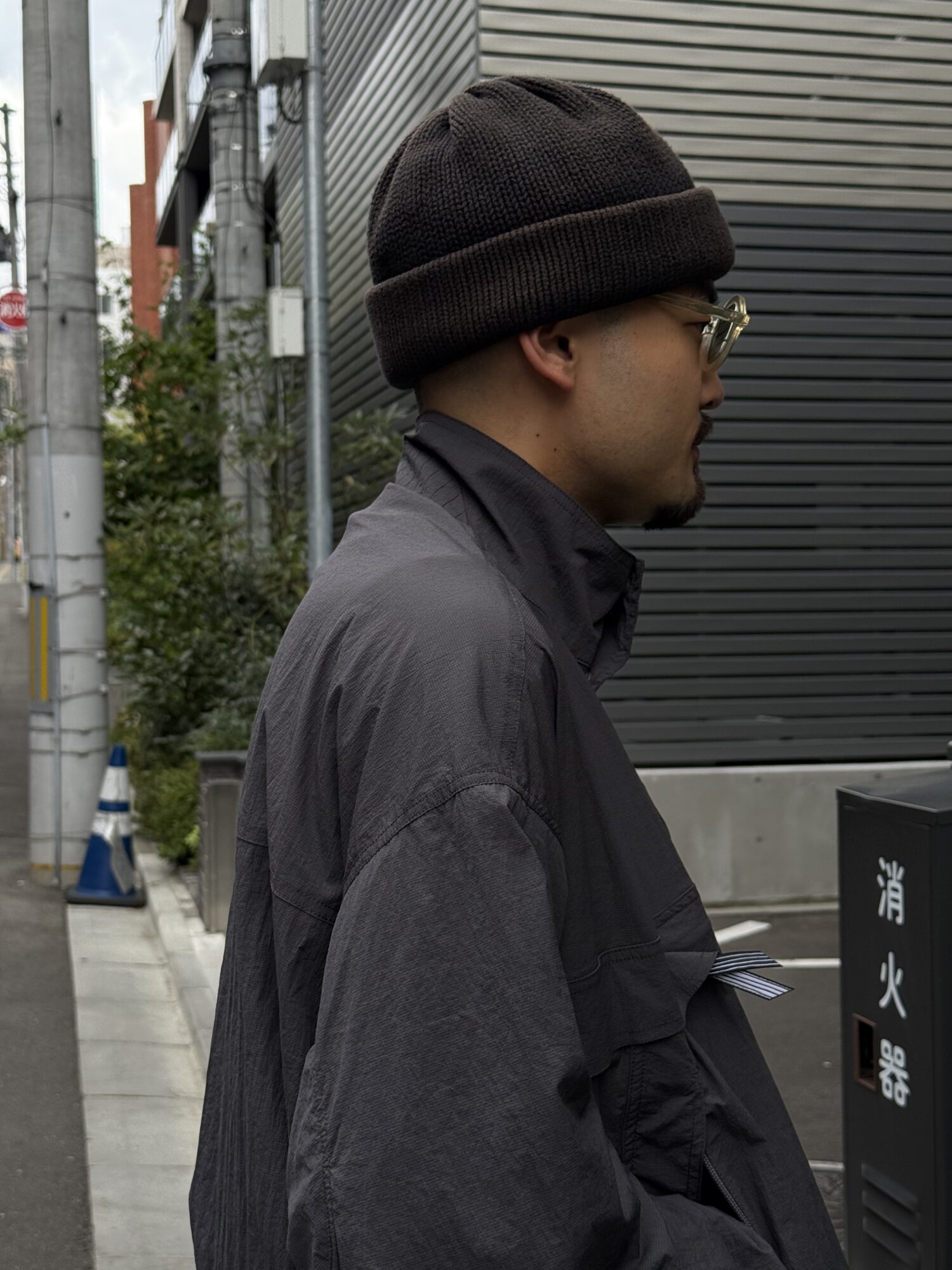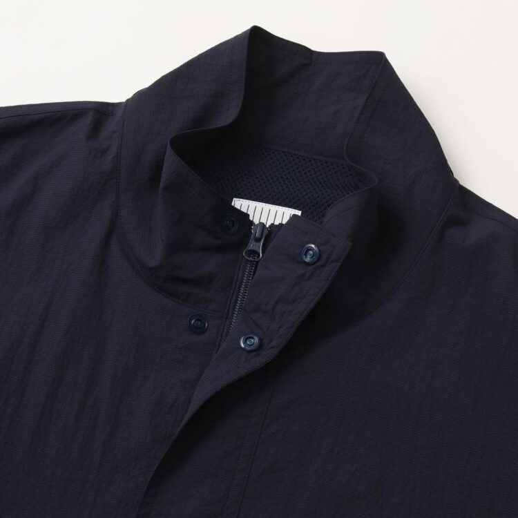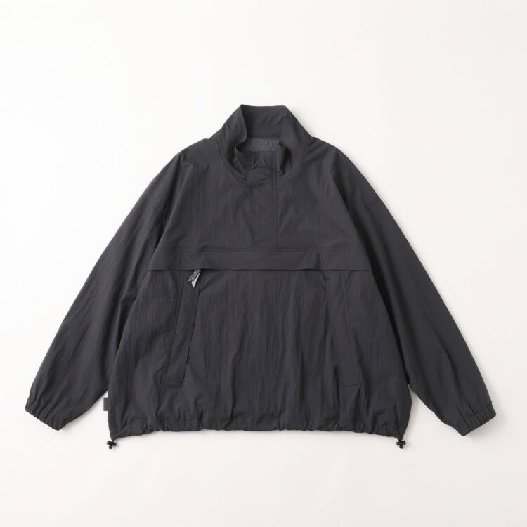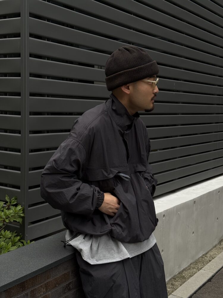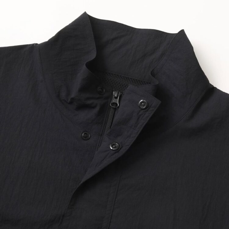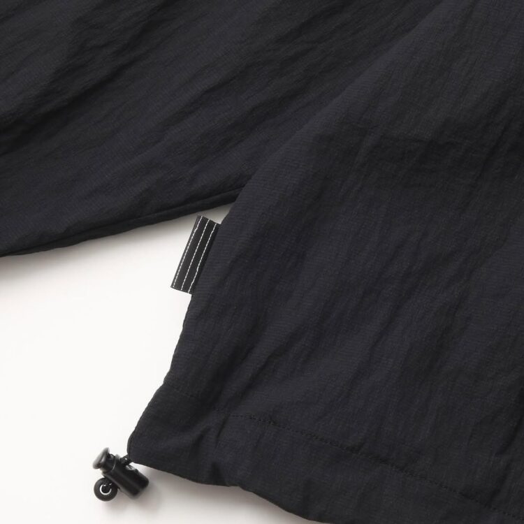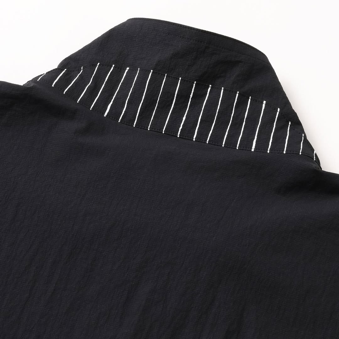 クラシカルなデザインでありながら、背中、脇のベンチレーションなど機能的なディティールを加えたナイロンANORAK。素材はタテ15D、 ヨコ20Dナイロン使用した超軽量ストレッチ生地を使用。ナイロンとコットンを混紡しワッシャー加工を施す事で、シボ感のあるドライタッチとシャリ感を持たせた独特なナイロン素材です。