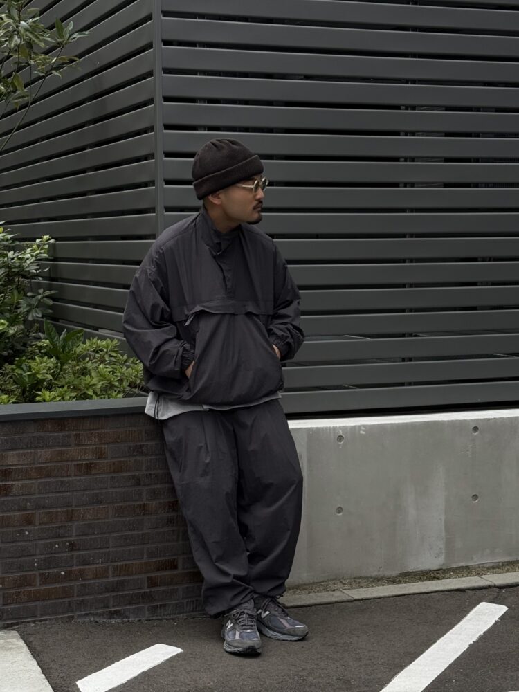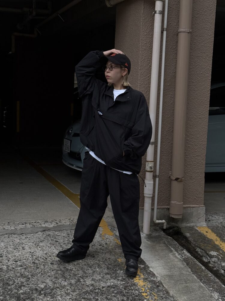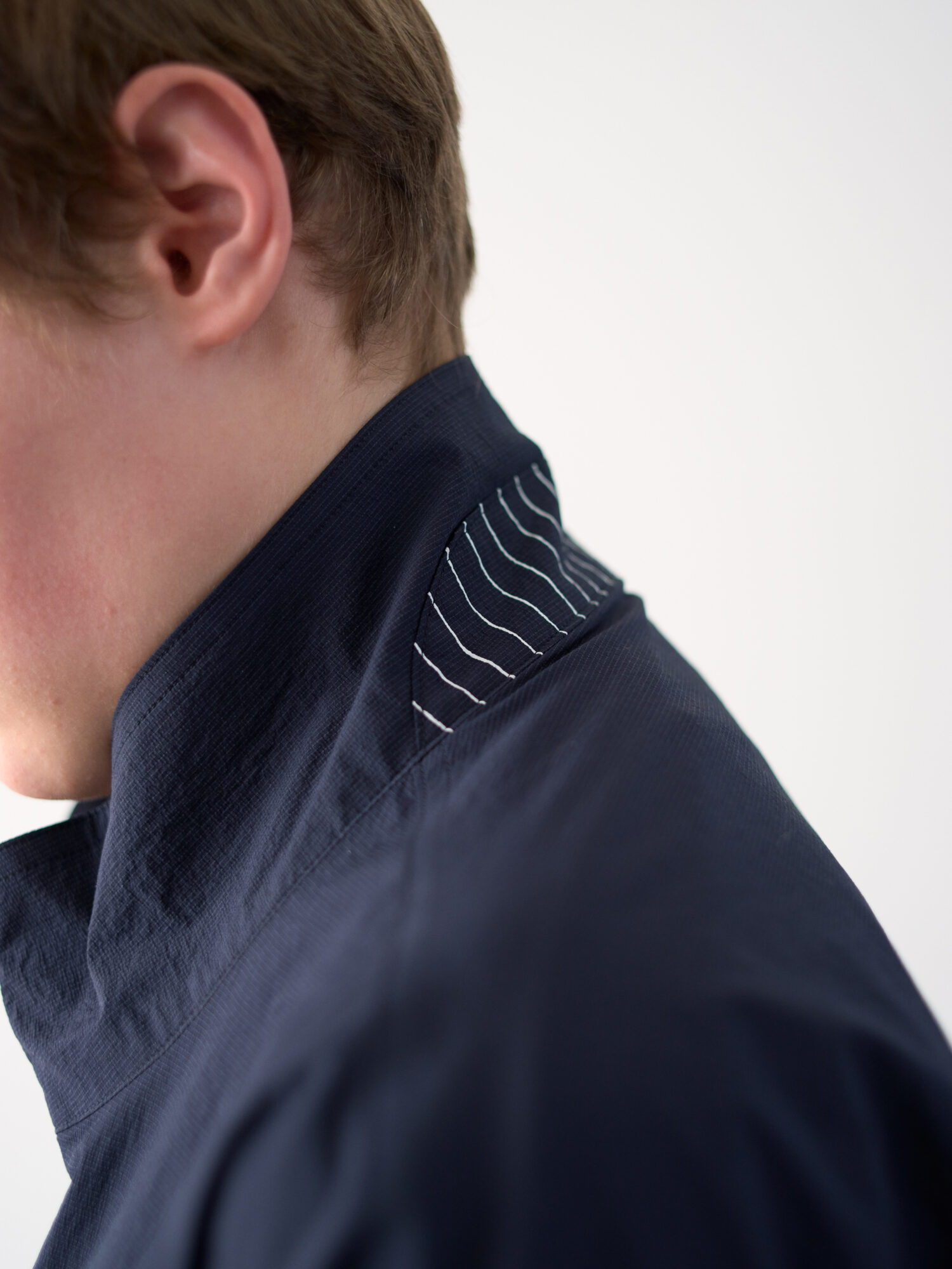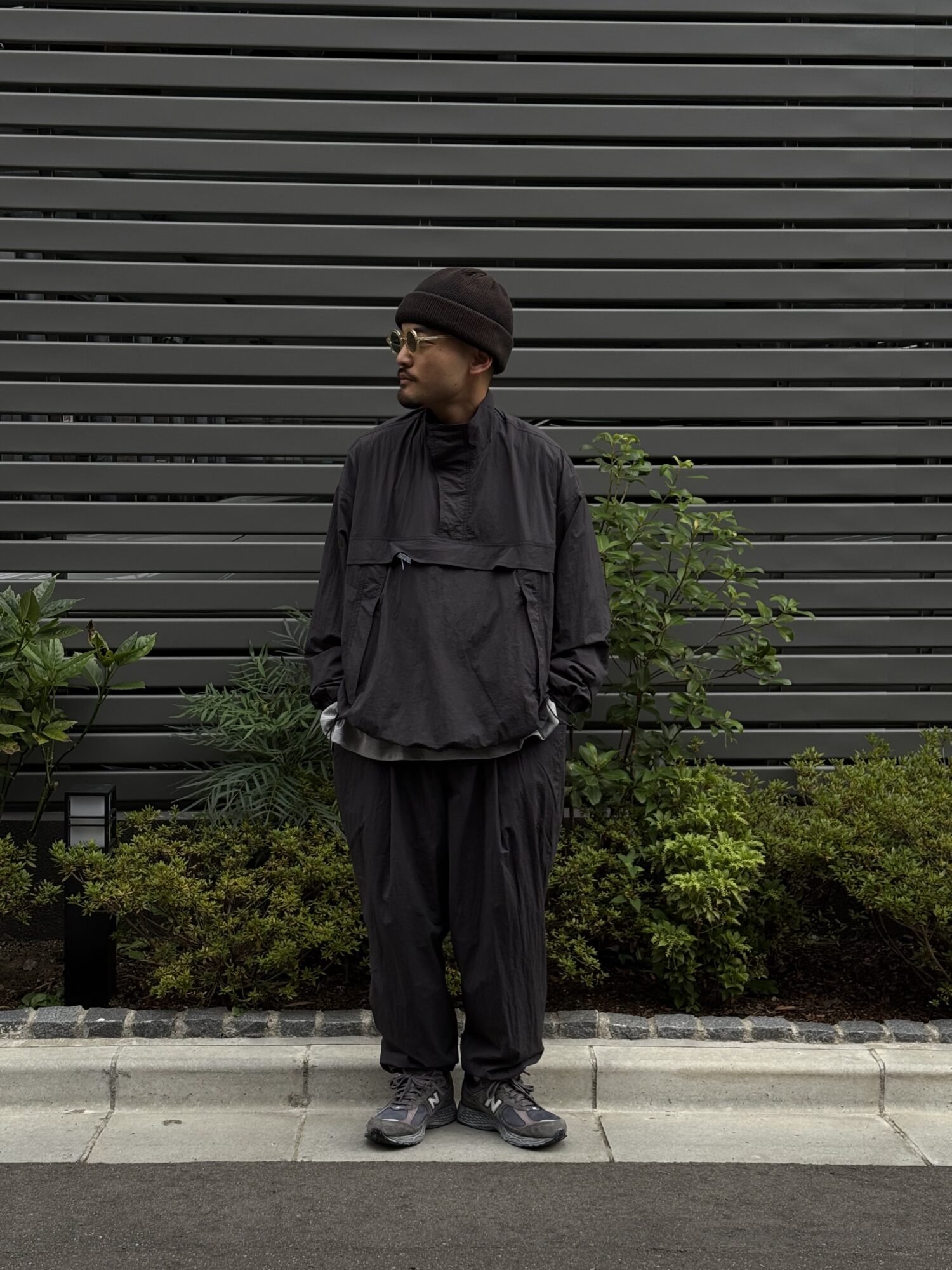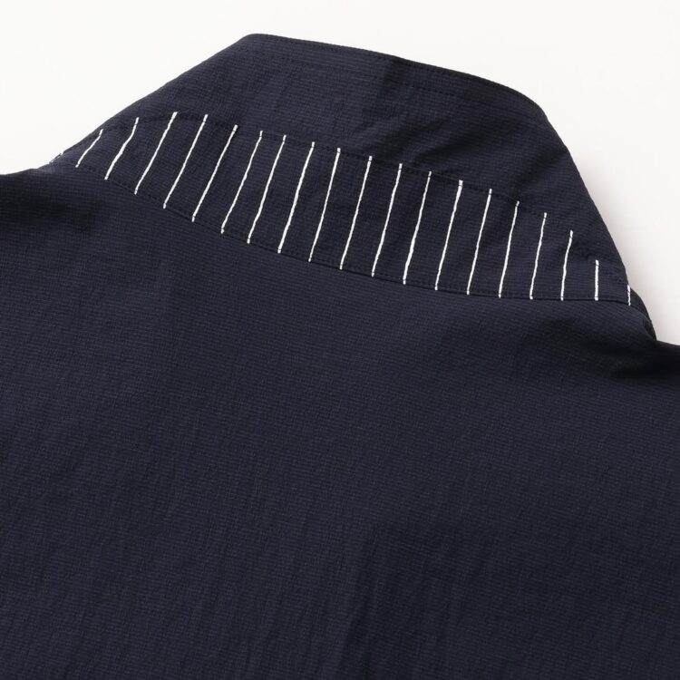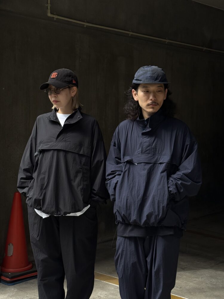 クラシカルなデザインでありながら、背中、脇のベンチレーションなど機能的なディティールを加えたナイロンANORAK。素材はタテ15D、 ヨコ20Dナイロン使用した超軽量ストレッチ生地を使用。ナイロンとコットンを混紡しワッシャー加工を施す事で、シボ感のあるドライタッチとシャリ感を持たせた独特なナイロン素材です。
