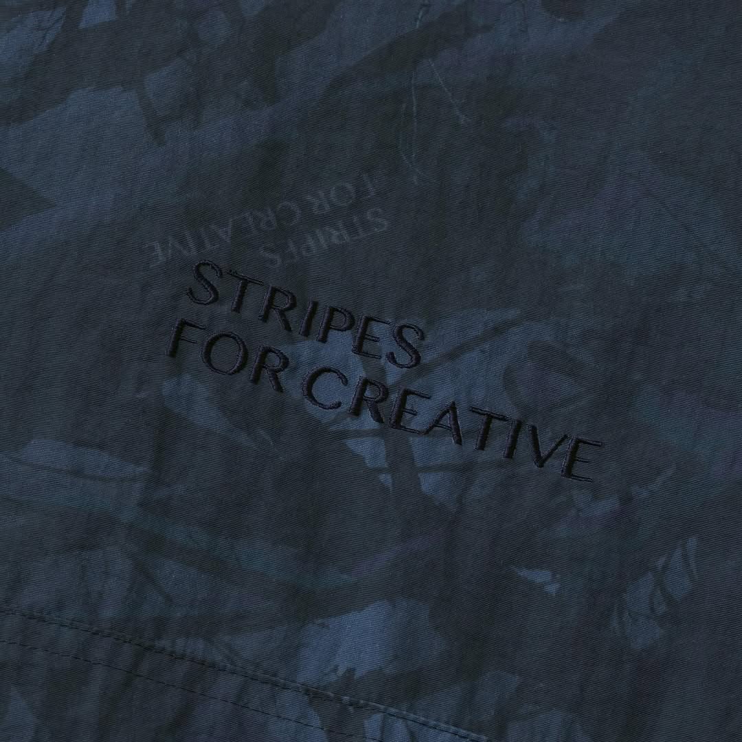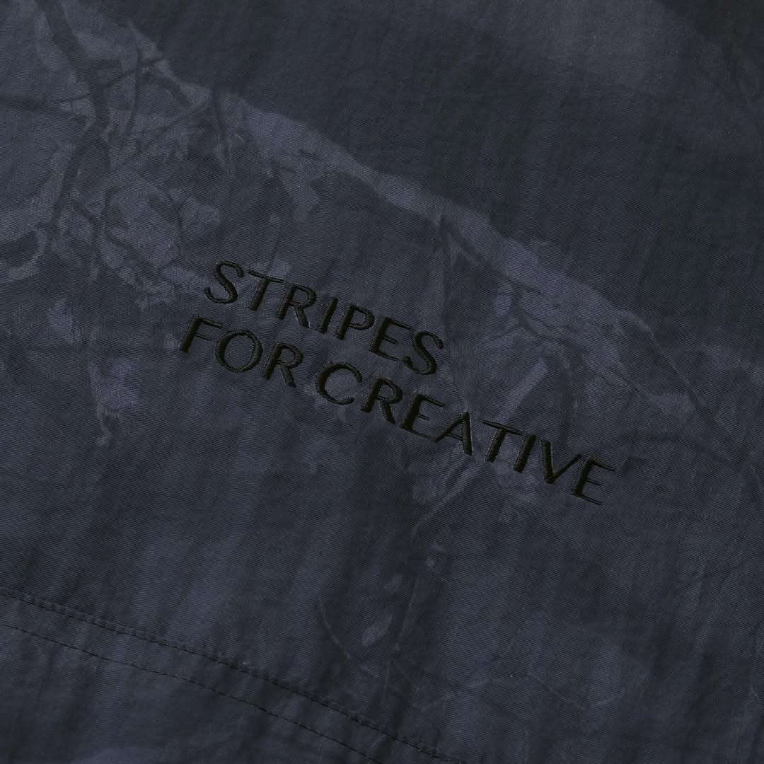 S.F.C (エスエフシー)のWINDBREAKER JACKET (REAL TREE CAMO) / BLACK TREE CAMOになります。シンプルでソリッドなウインドブレイカーを独自のバランスにアレンジしたライトアウター。身幅、袖周りを大きくアレンジしているのでインナーにボリュームのあるアイテムと合わせてもストレスなく着用可能。素材はコットンライクの肌触りが特徴的のオリジナルカモ柄のなイロンタスランタフタを使用。軽さの中に適度なハリと強度を持ち。撥水性、防風、紫外線ブロックなどの機能を兼ね備えている。