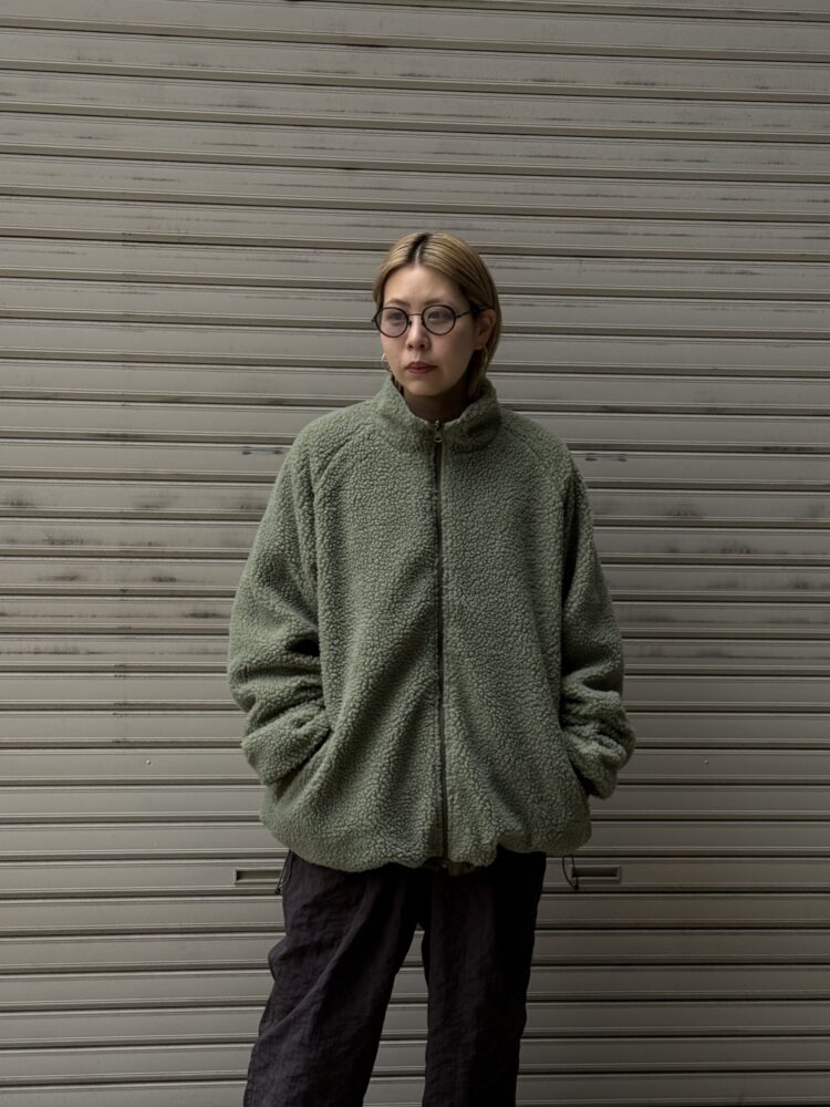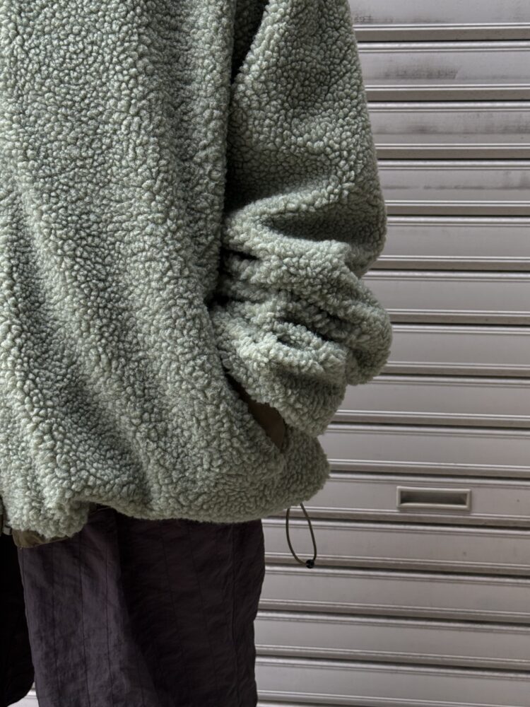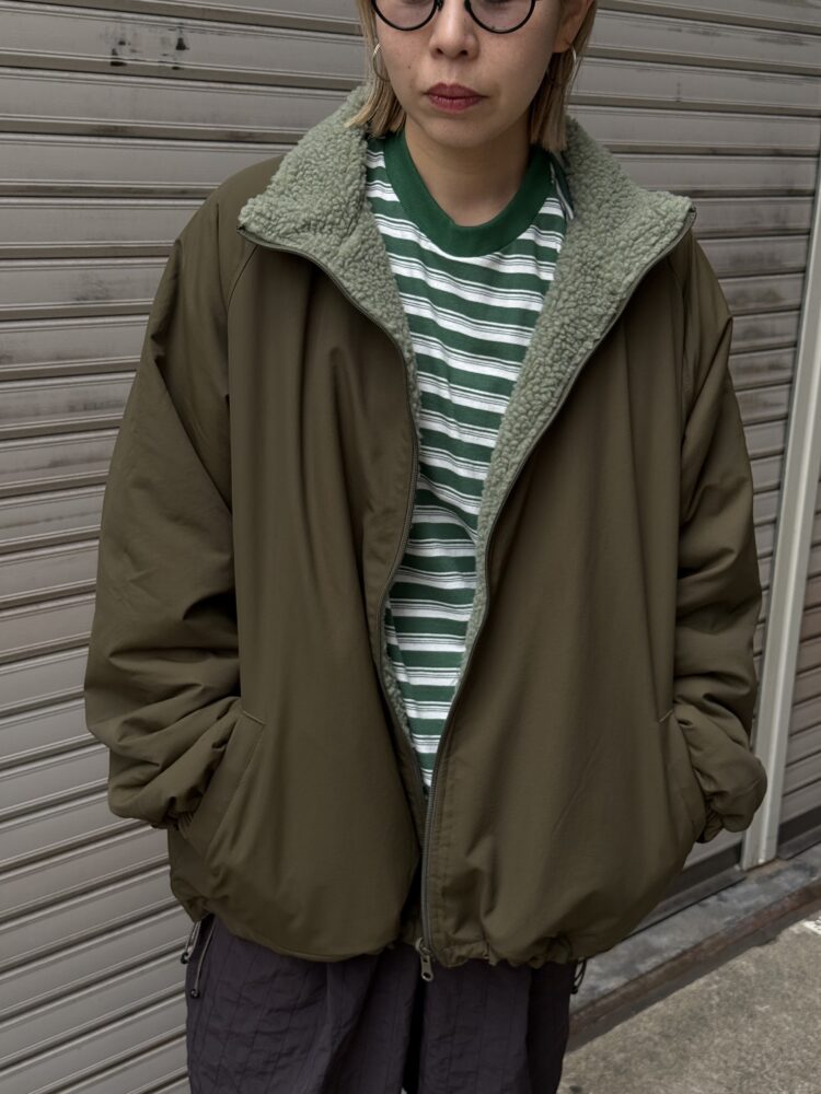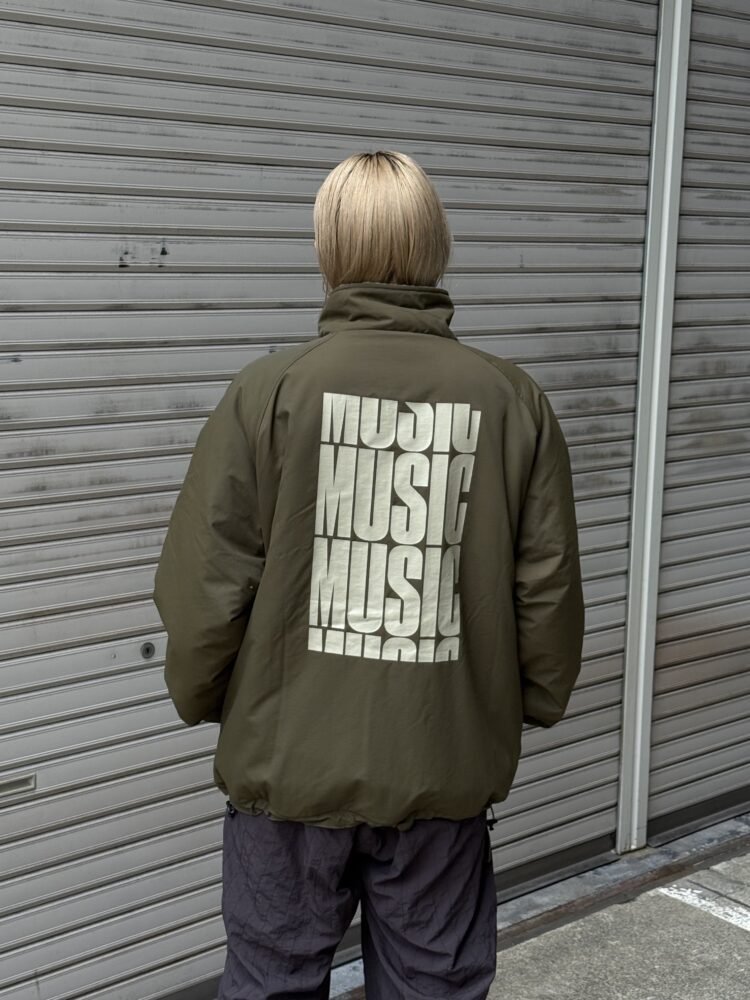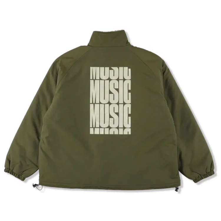 音楽のディレイをMUSICの文字で表現したリバーシブルフリースジャケット