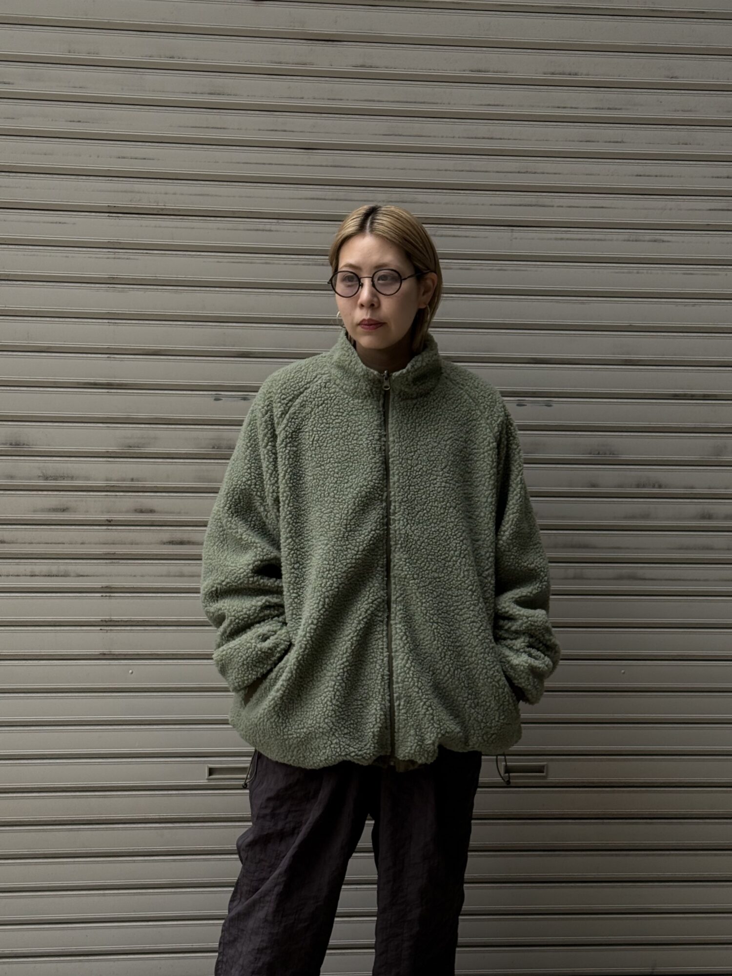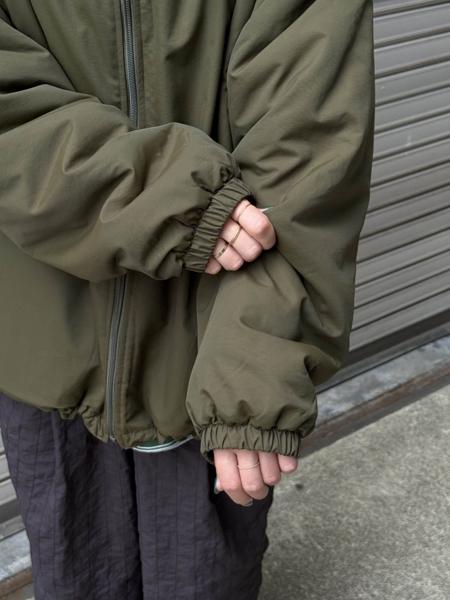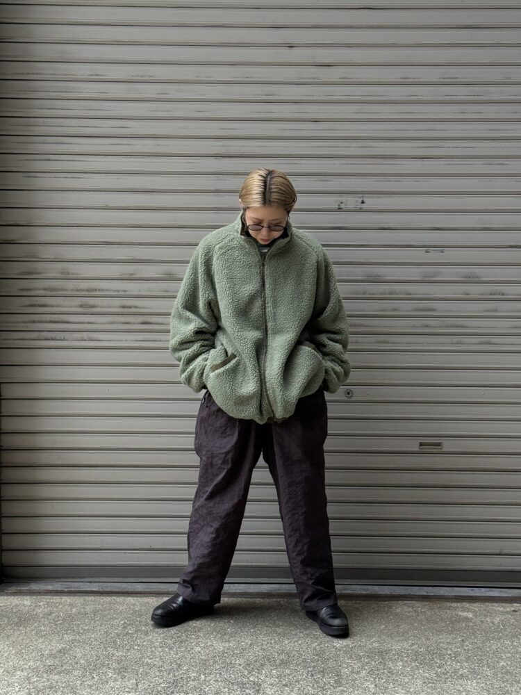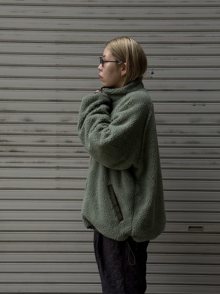音楽のディレイをMUSICの文字で表現したリバーシブルフリースジャケット