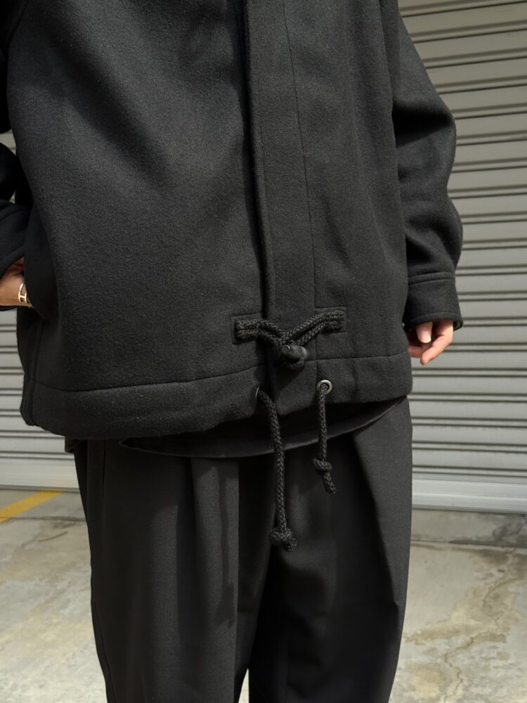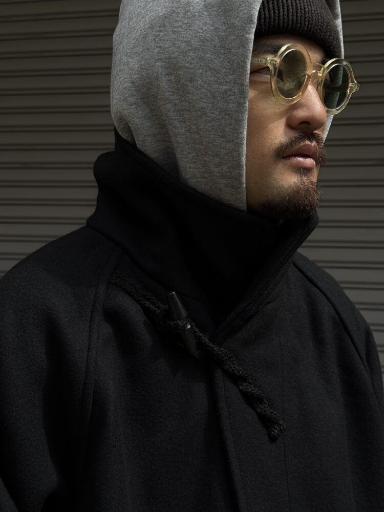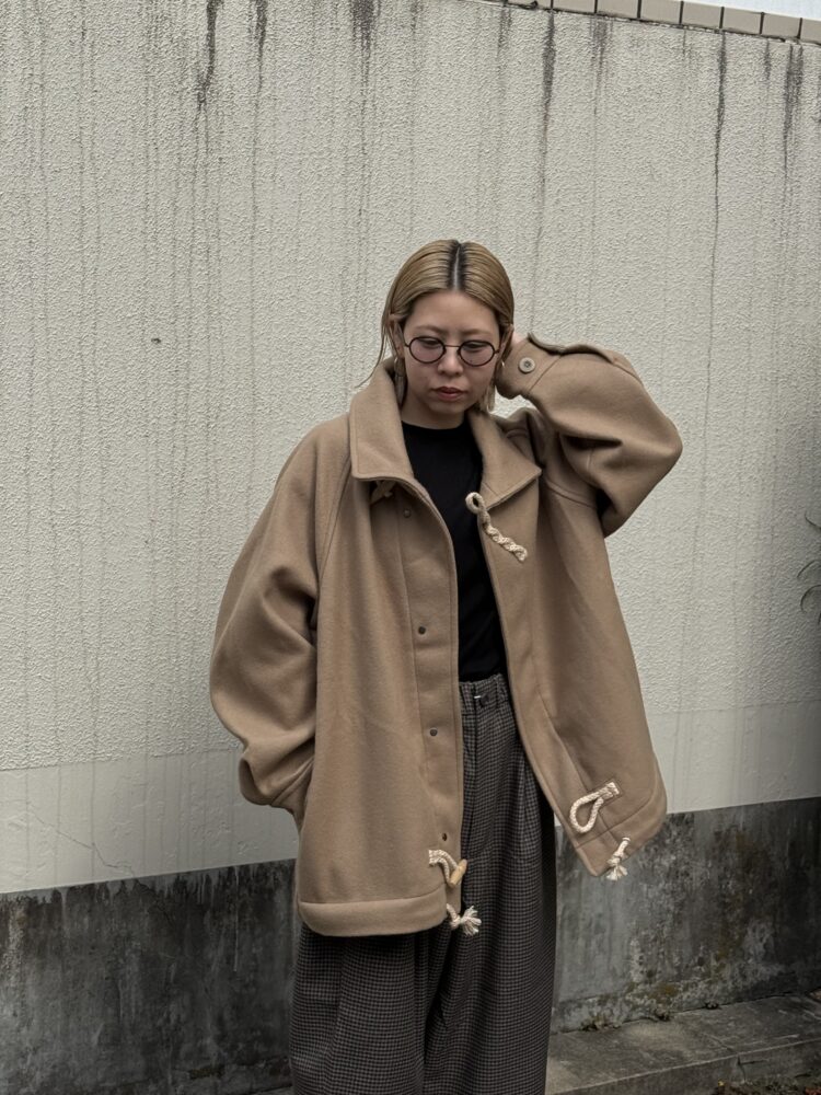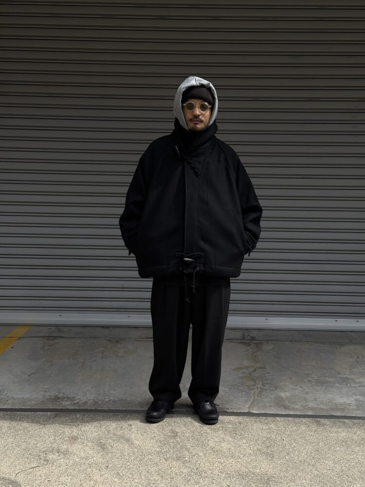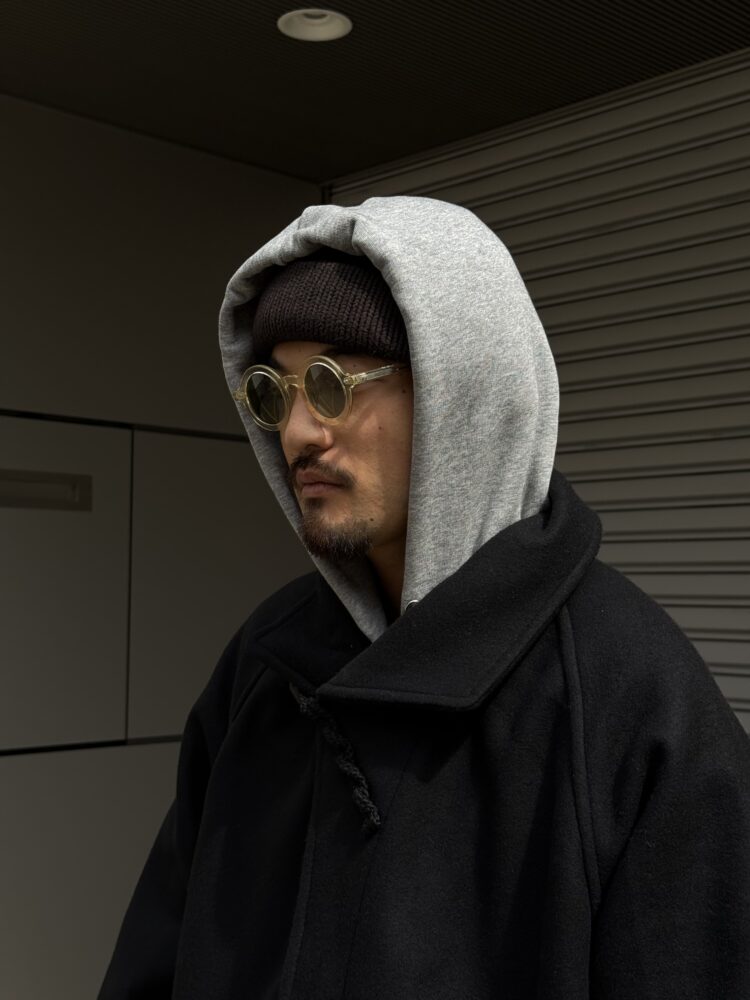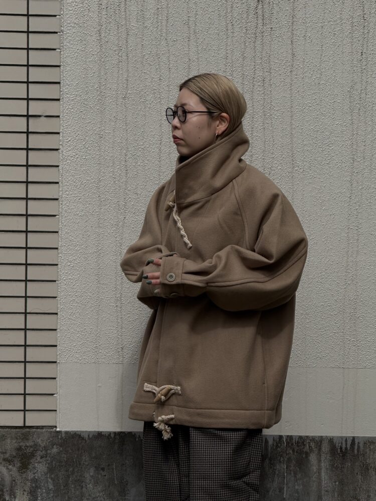 50年代の 英国海軍「Fearnought Smock」のプルオーバーウールダッフルコートにインスパイアされ、イズネス流にアレンジしたショートダッフルのレイトモデル。