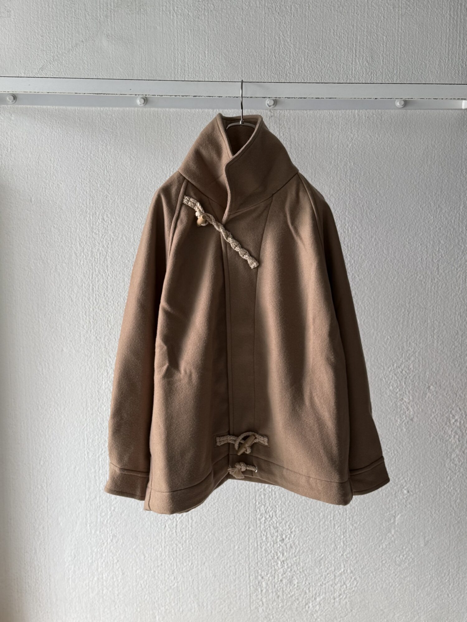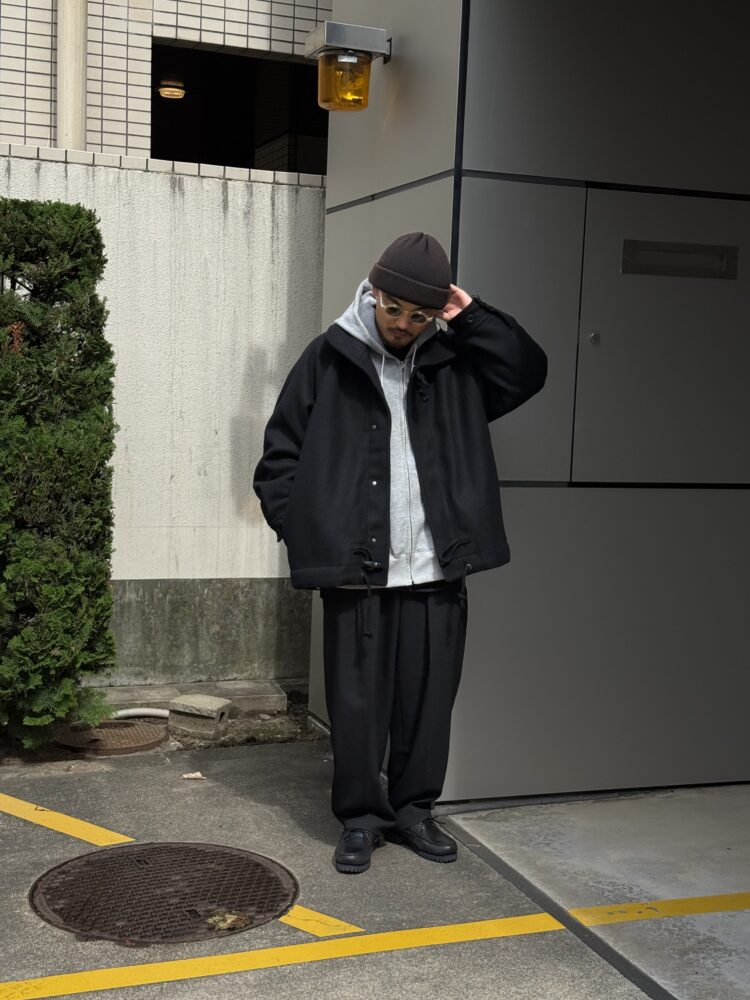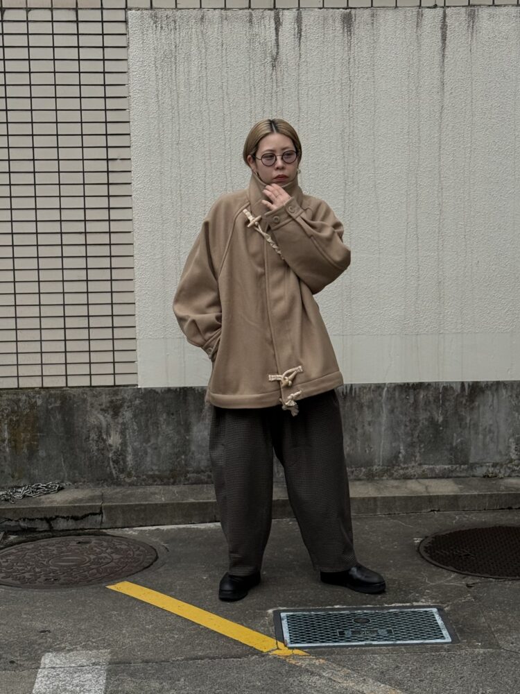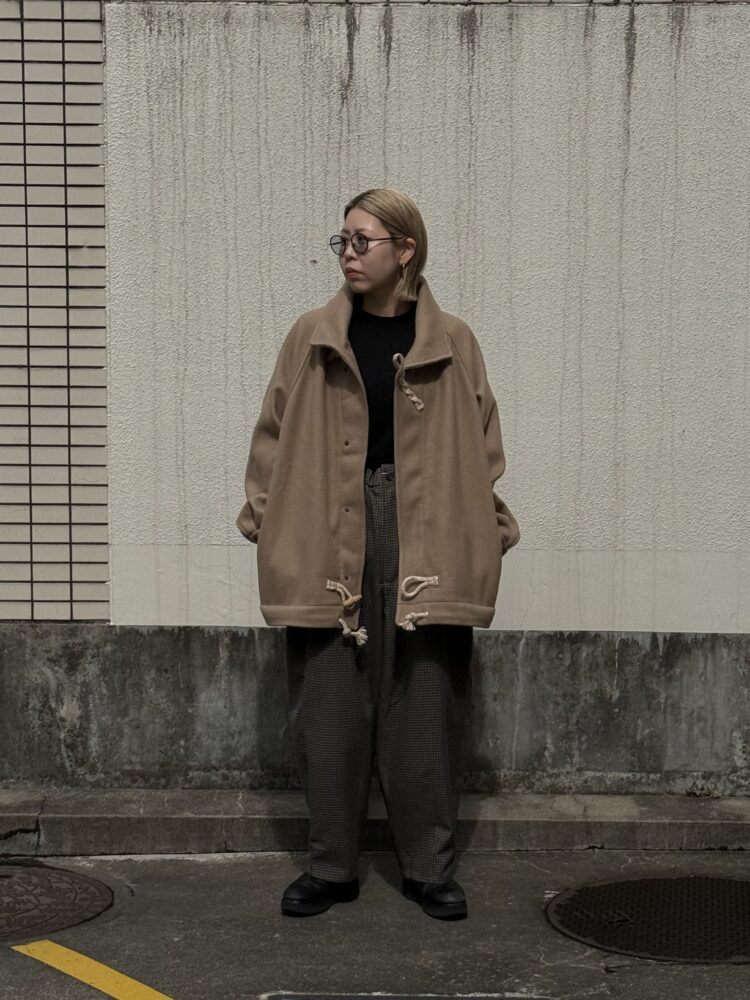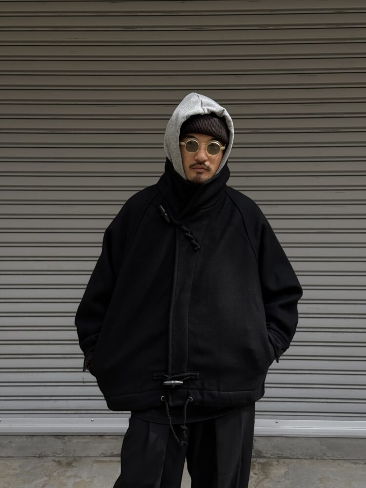 50年代の 英国海軍「Fearnought Smock」のプルオーバーウールダッフルコートにインスパイアされ、イズネス流にアレンジしたショートダッフルのレイトモデル。