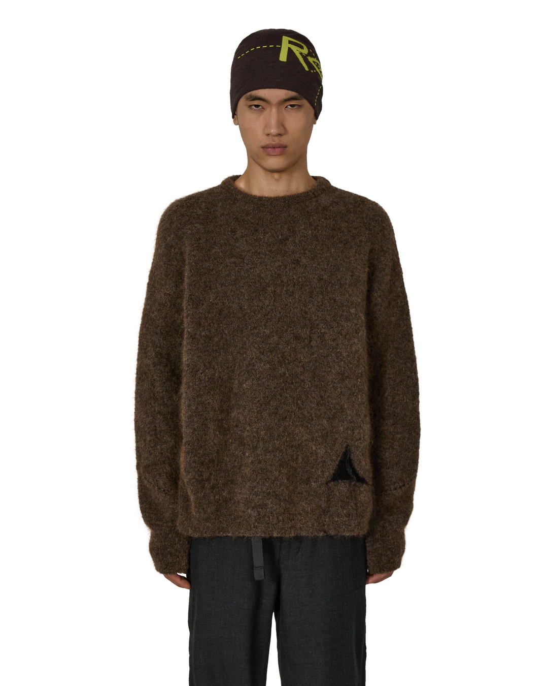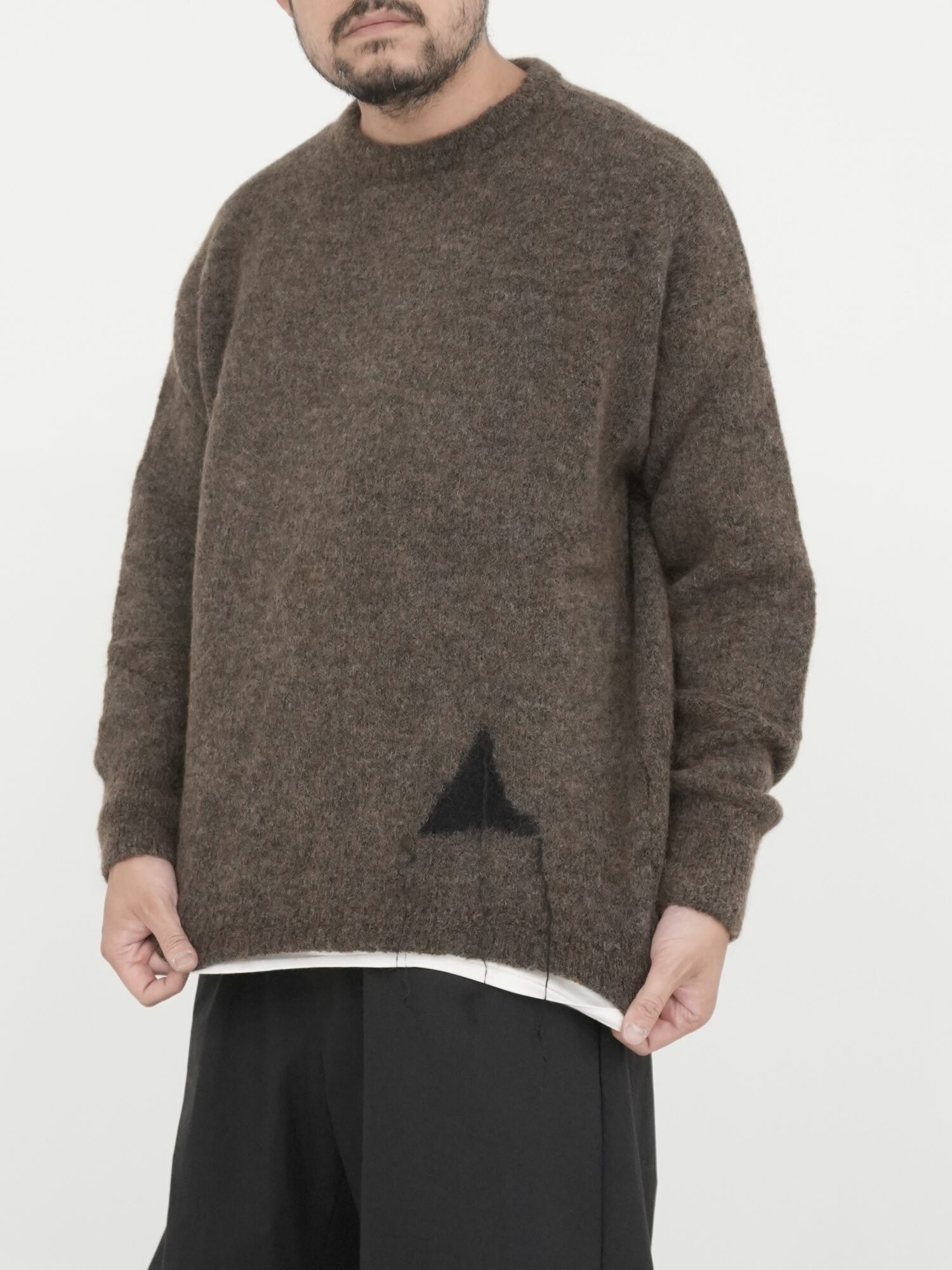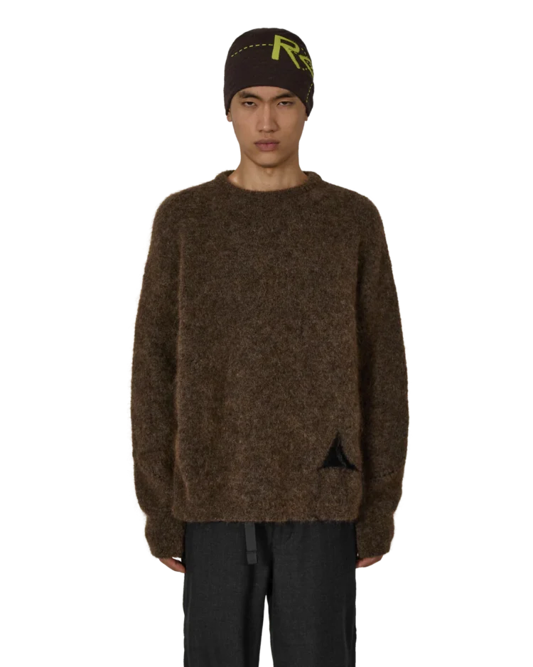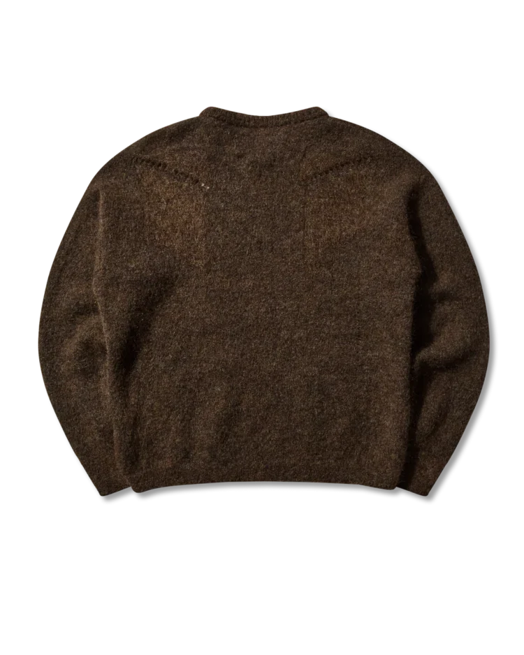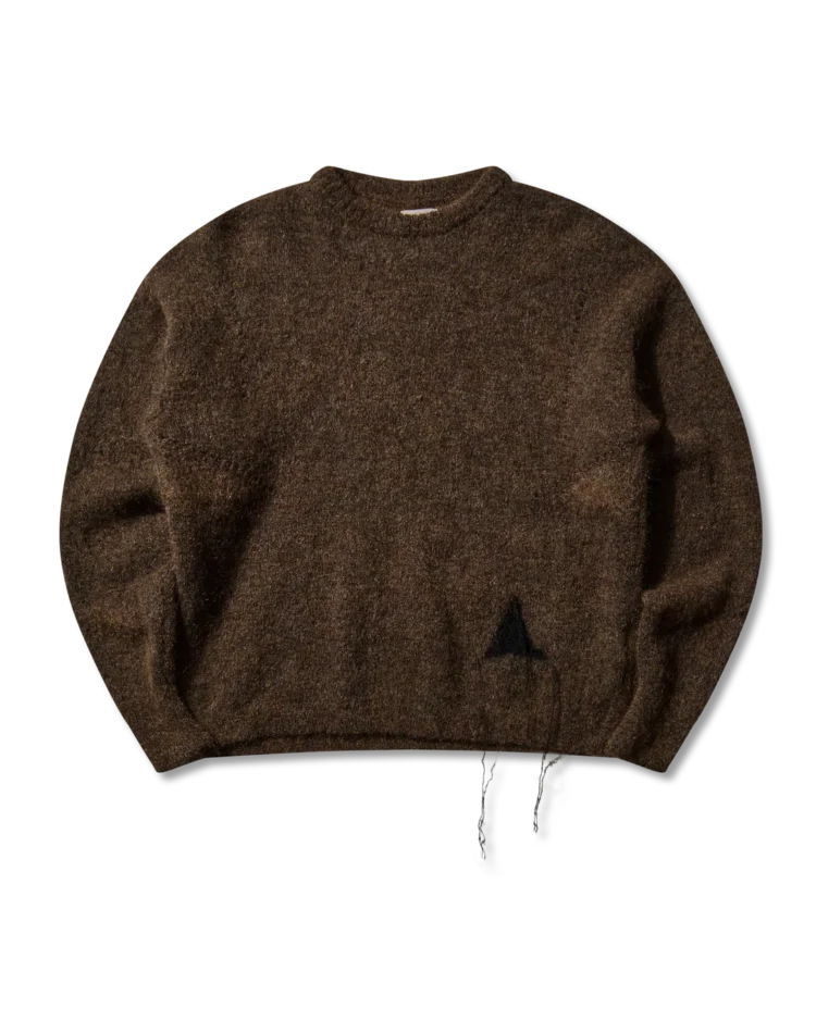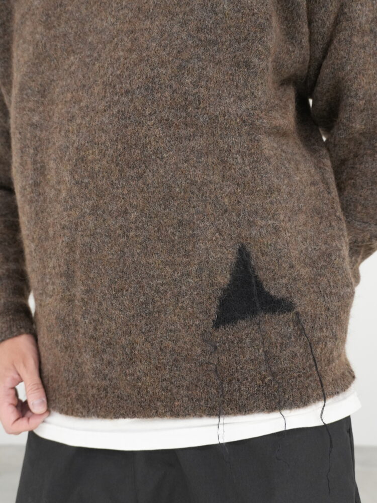 ブラウン ドロップステッチ モヘア ニット クルーネック