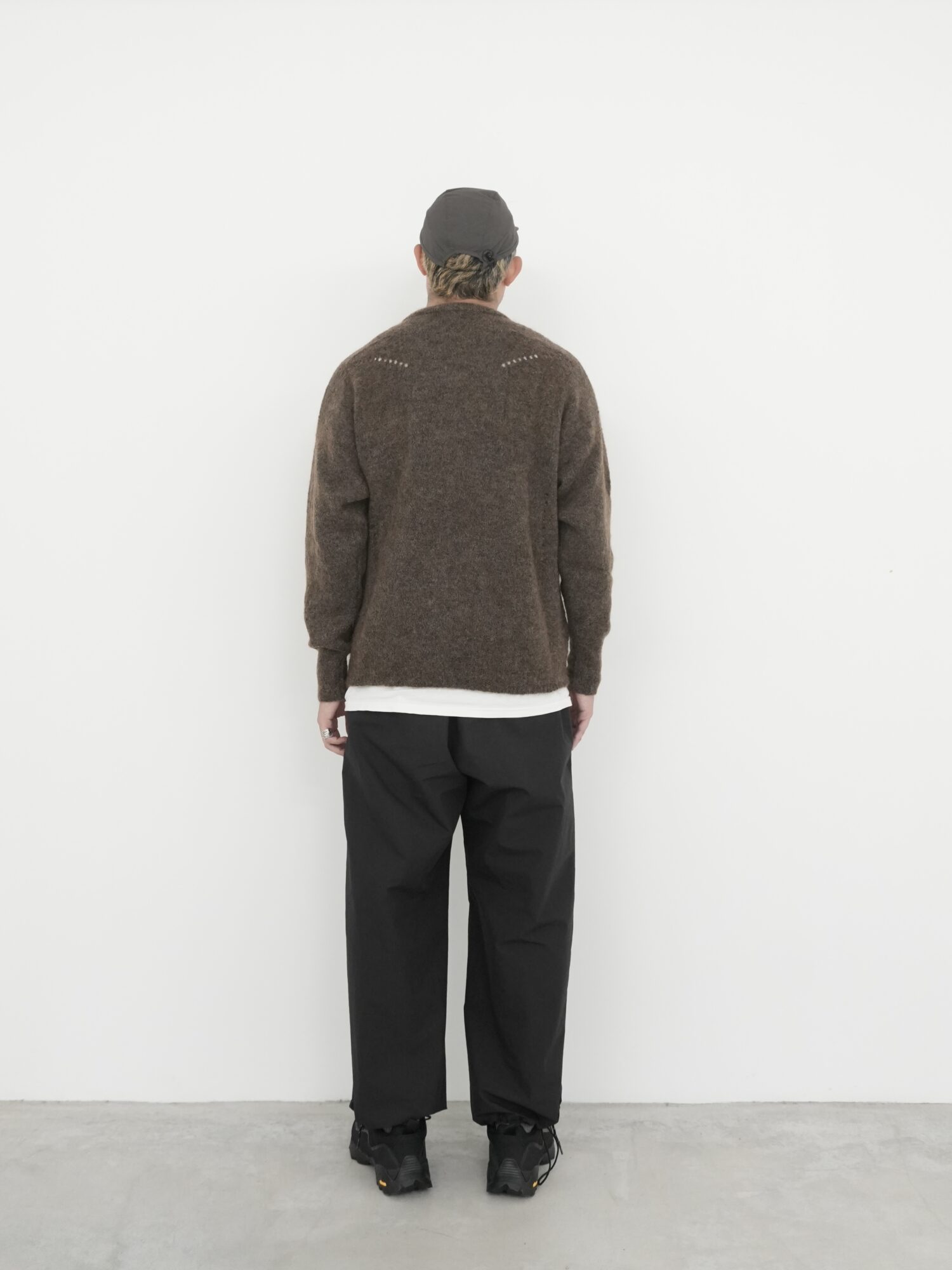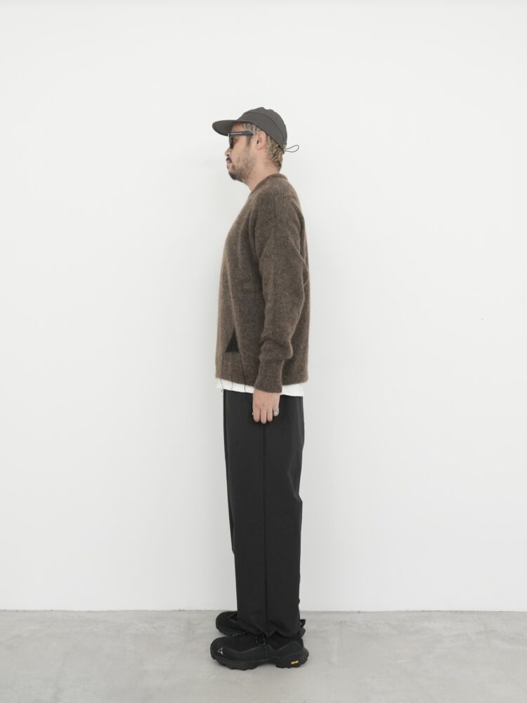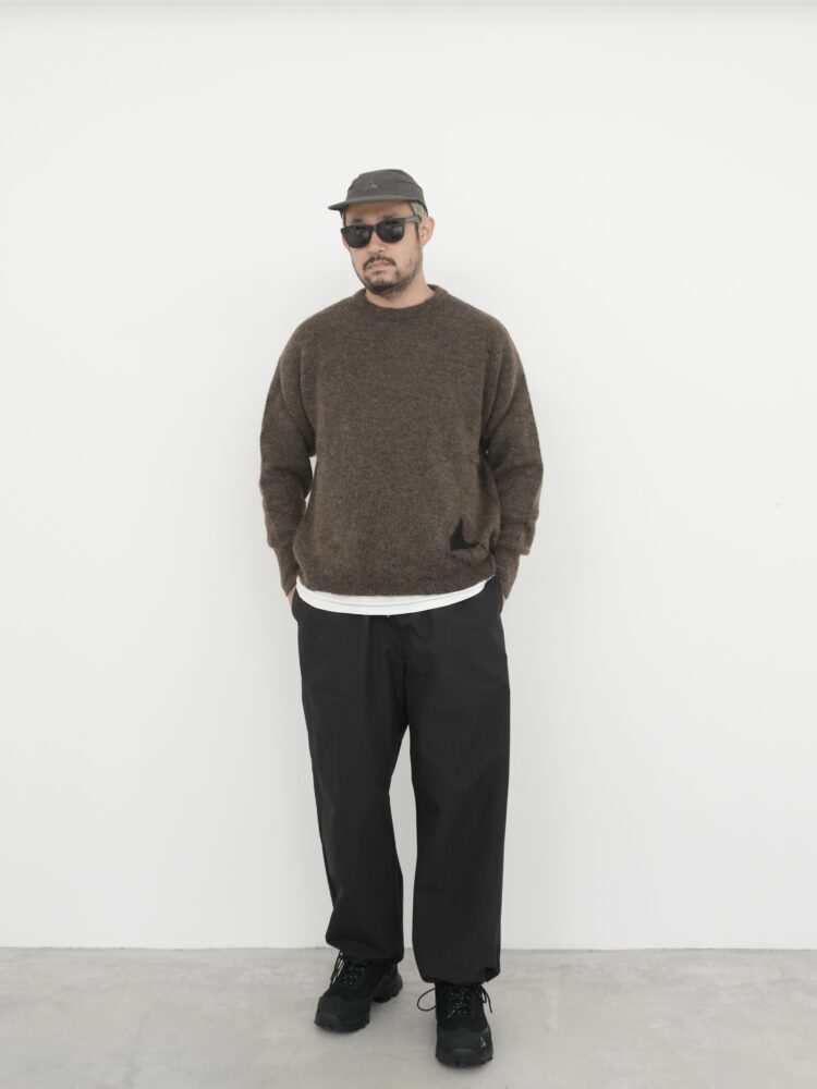 さらに、フロントにはインターシャ編みのロゴをあしらい、さりげないアクセントと洗練されたディテールをプラス。