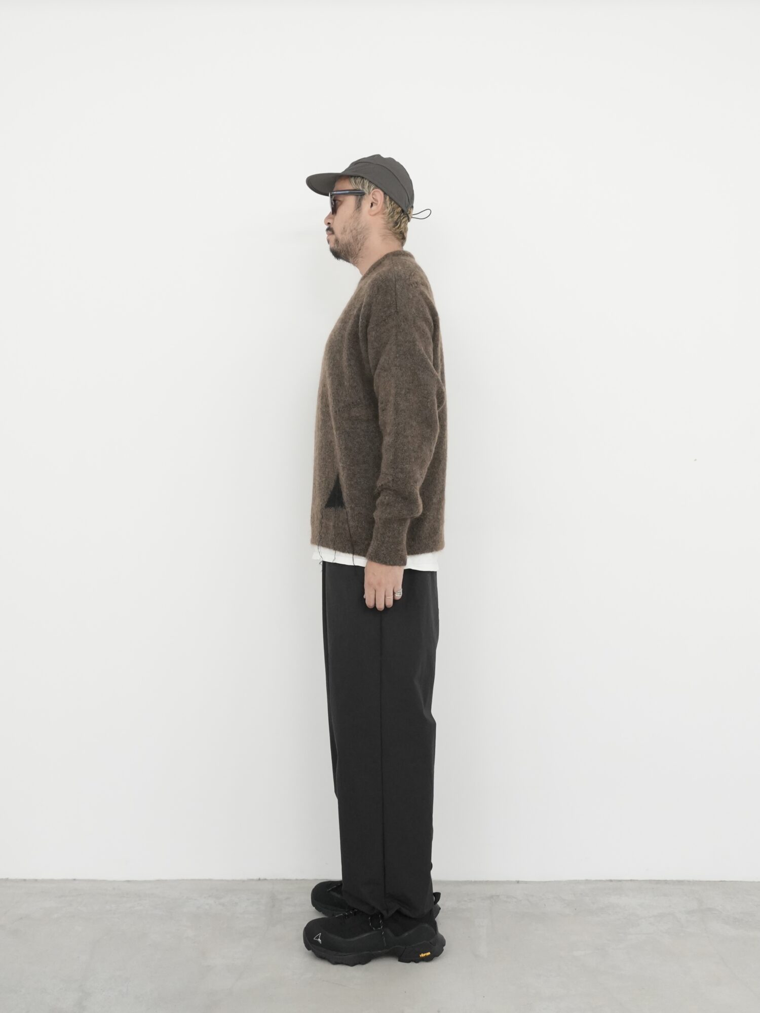 メランジフェルトのような質感が奥行きを加え、シンプルながら存在感のある仕上がりに。