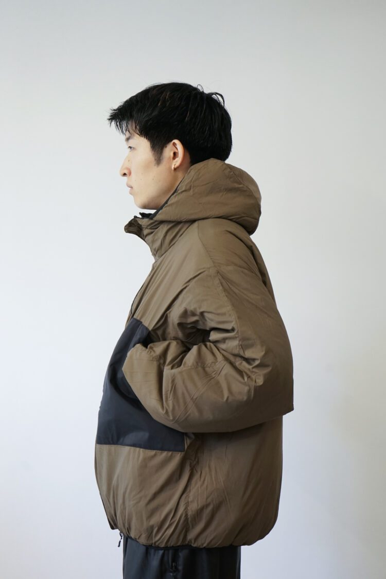 ミリタリーのディテールでもある前振りの袖がデザインアクセント、アクションプリーツを加え、袖口も調整出来るようにデザイン。腕の可動域を広げ、袖口のもたつきも解消したデザインです。プリマロフトを採用し従来の中綿の約2倍の断熱効果、速乾性、そして防寒性を高めました。