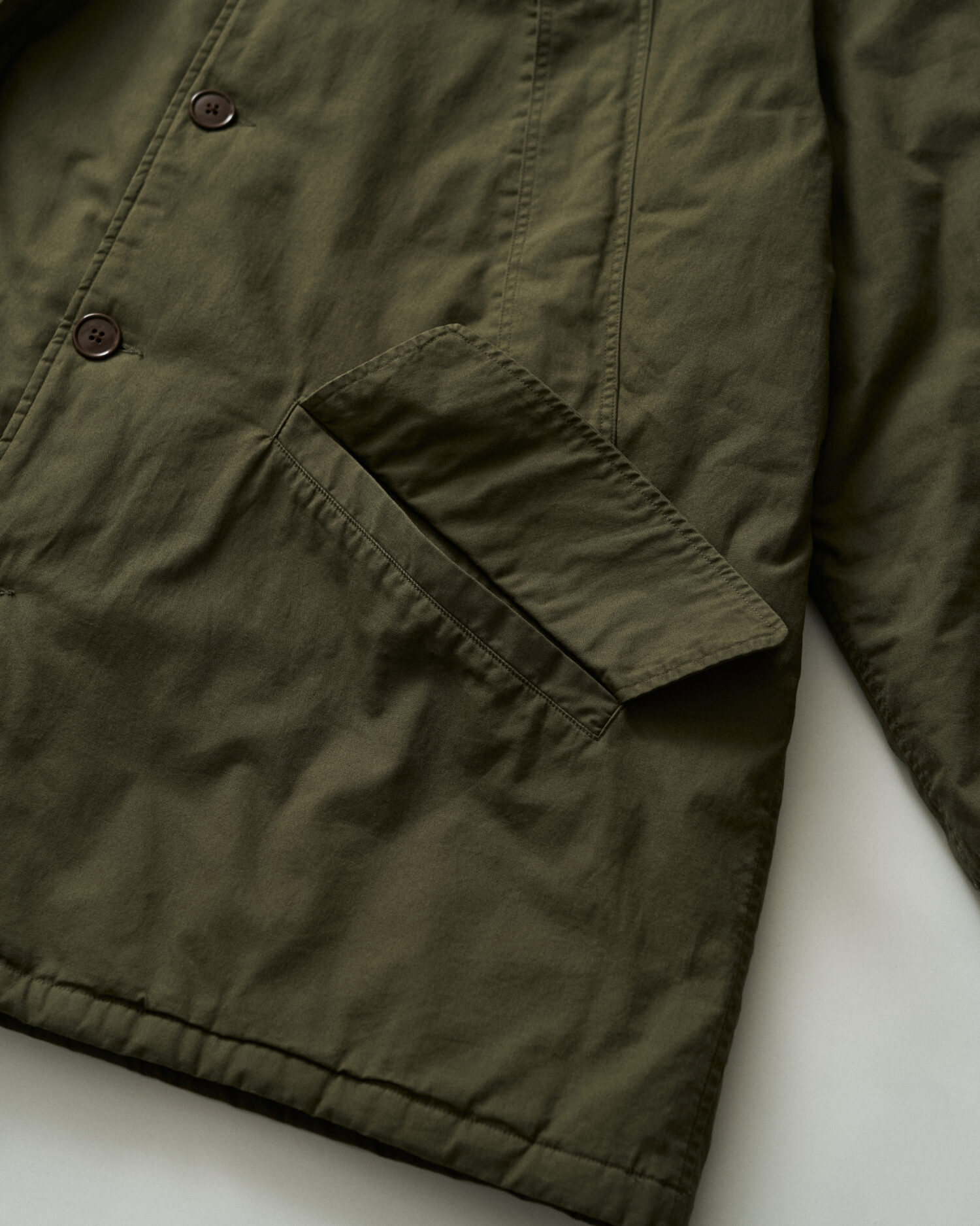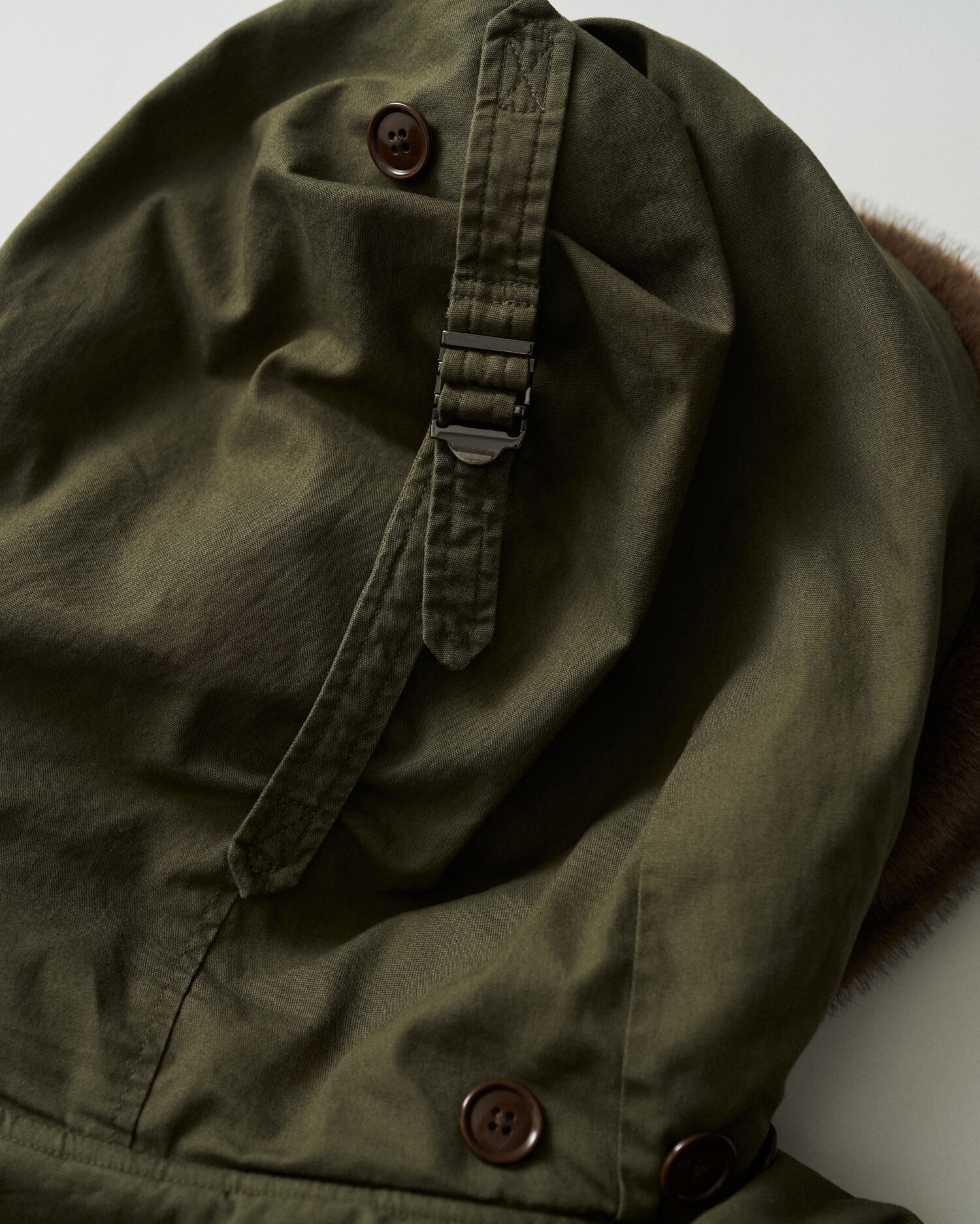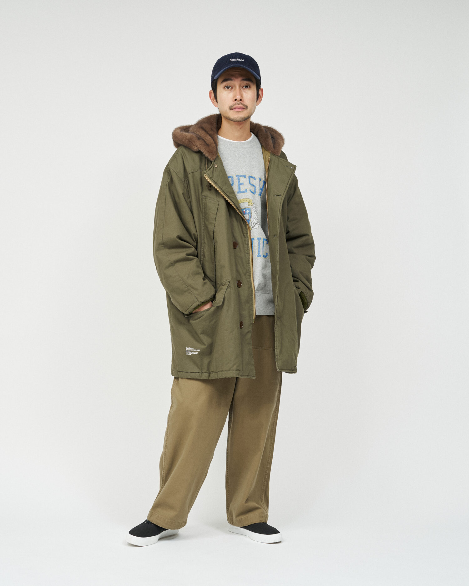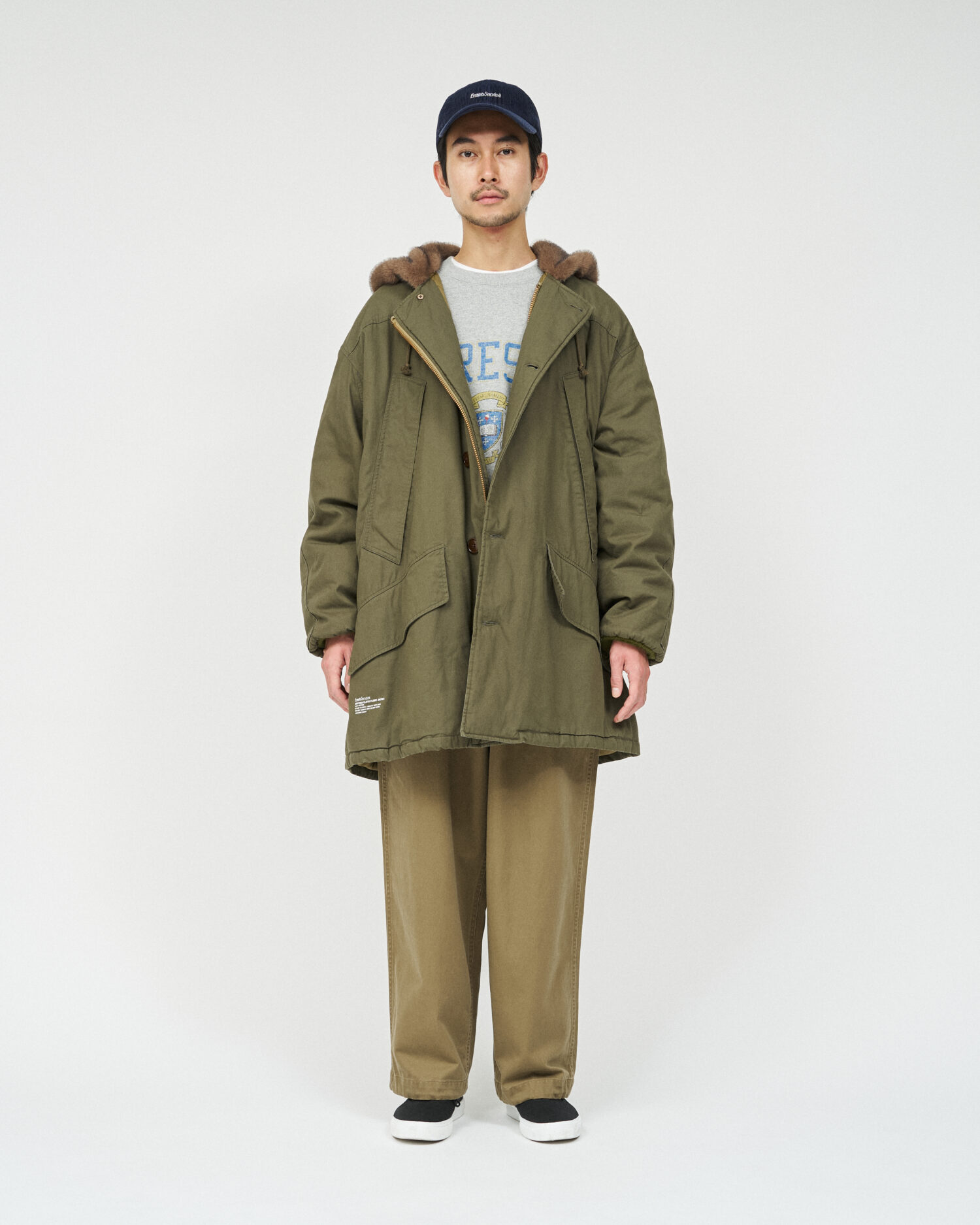 ミリタリーウェアとしてのタフな生地に長く使い込まれた風合いを表現した加工を加え、当時のディティールを再現。