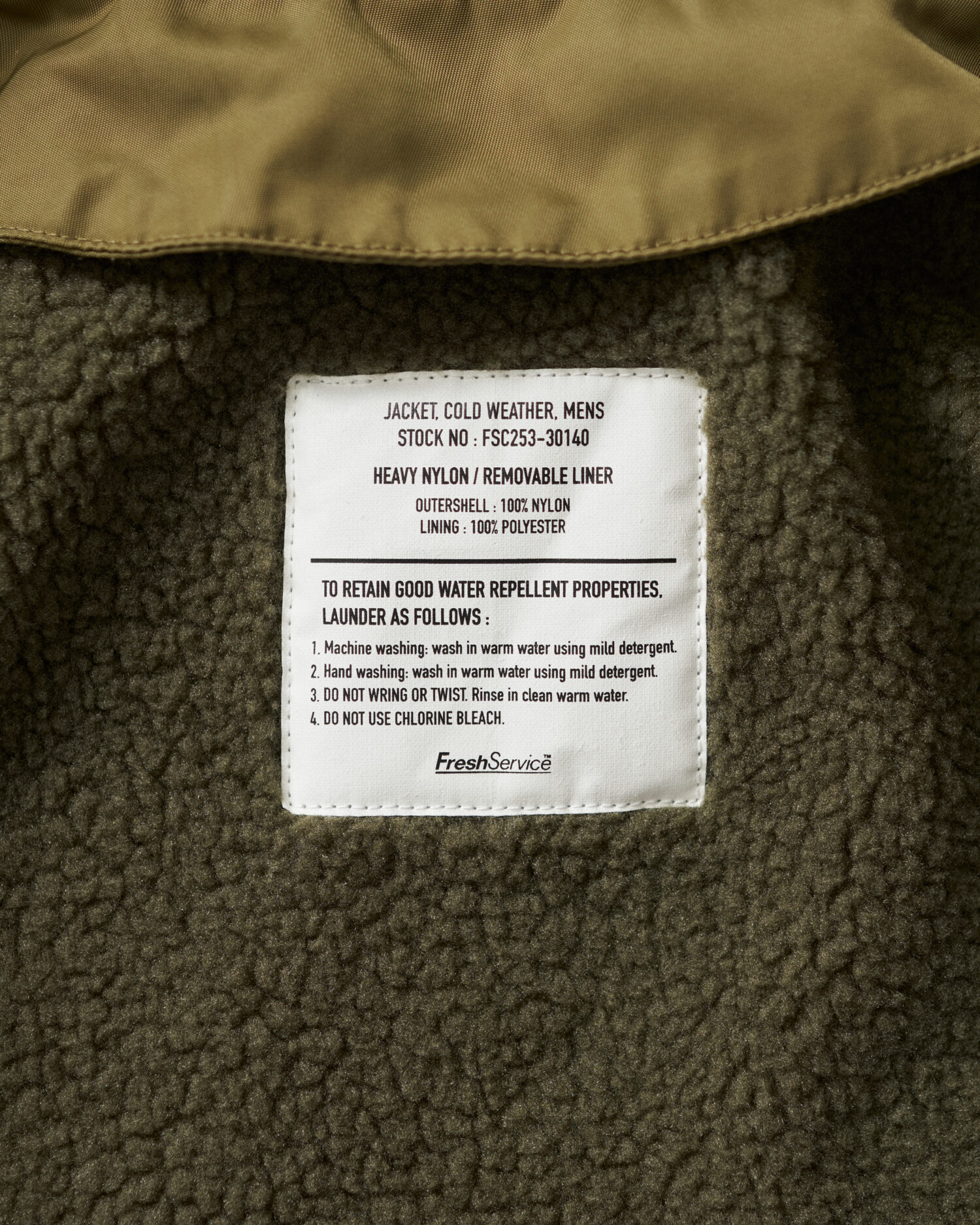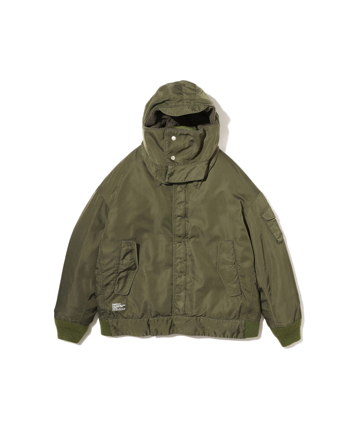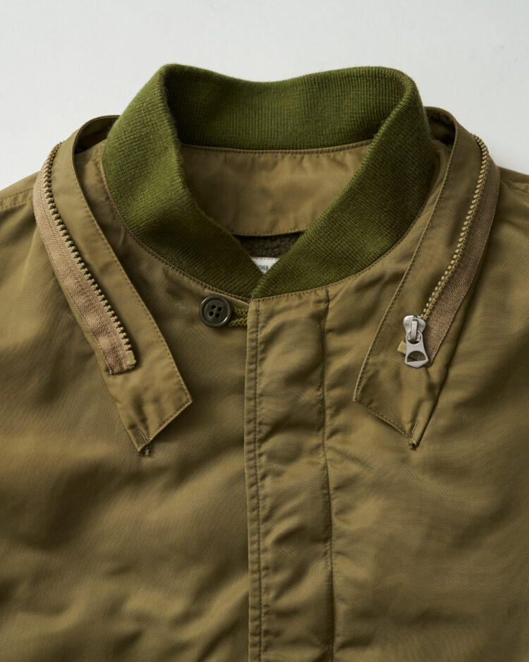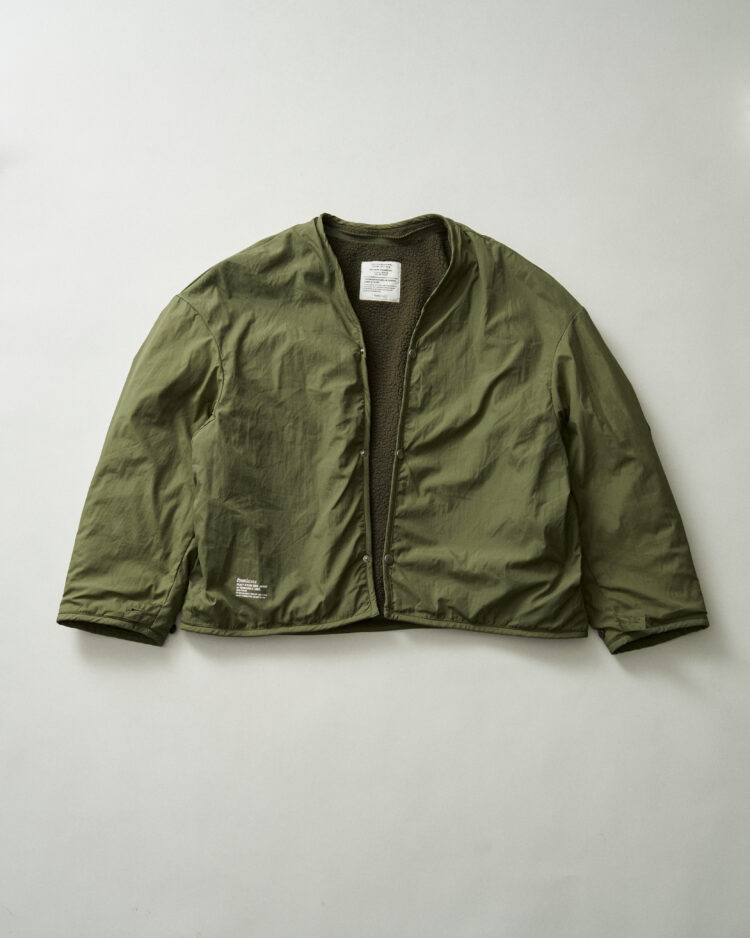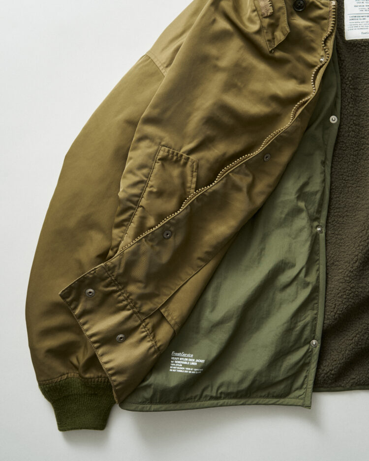 表地は耐久性のあるフライトナイロンツイル、ライニングにはボアフリースを採用しており、ライニング単体でも着用可能。