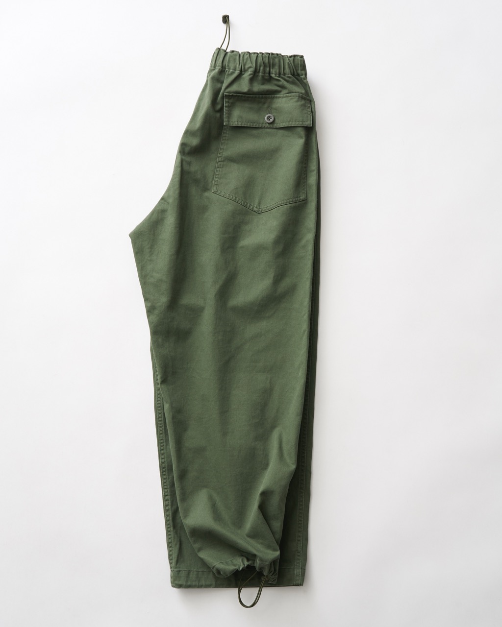 ボリュームのあるサイジングでウエストのみならず、裾にもドローコードを設けてありシルエットが調整出来る。