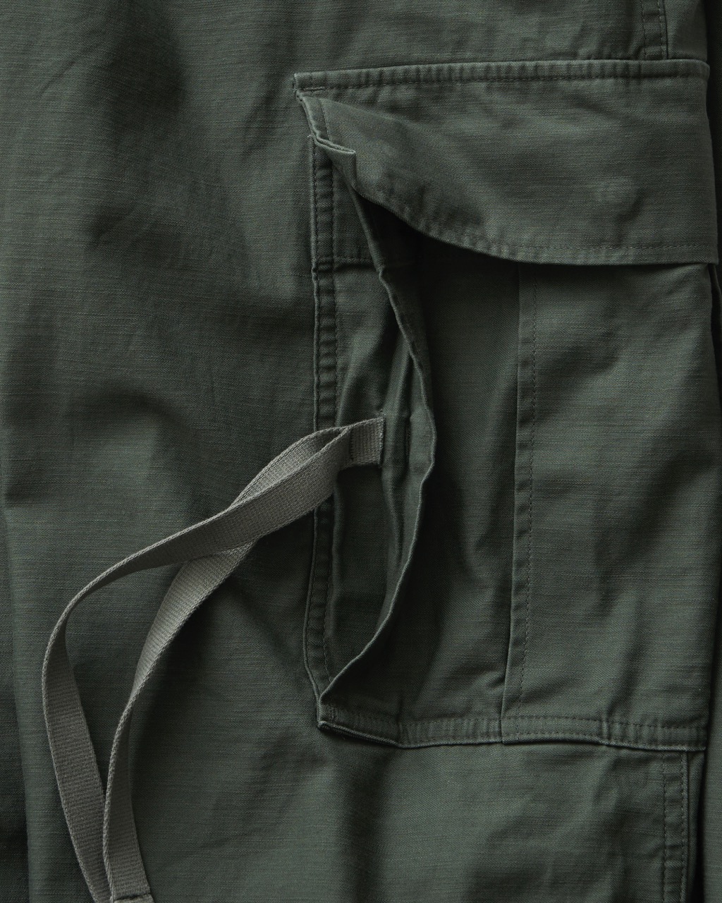 ミリタリーウェアとしてのタフな生地に長く使い込まれた風合いを表現した加工を加えた存在感のある一着。