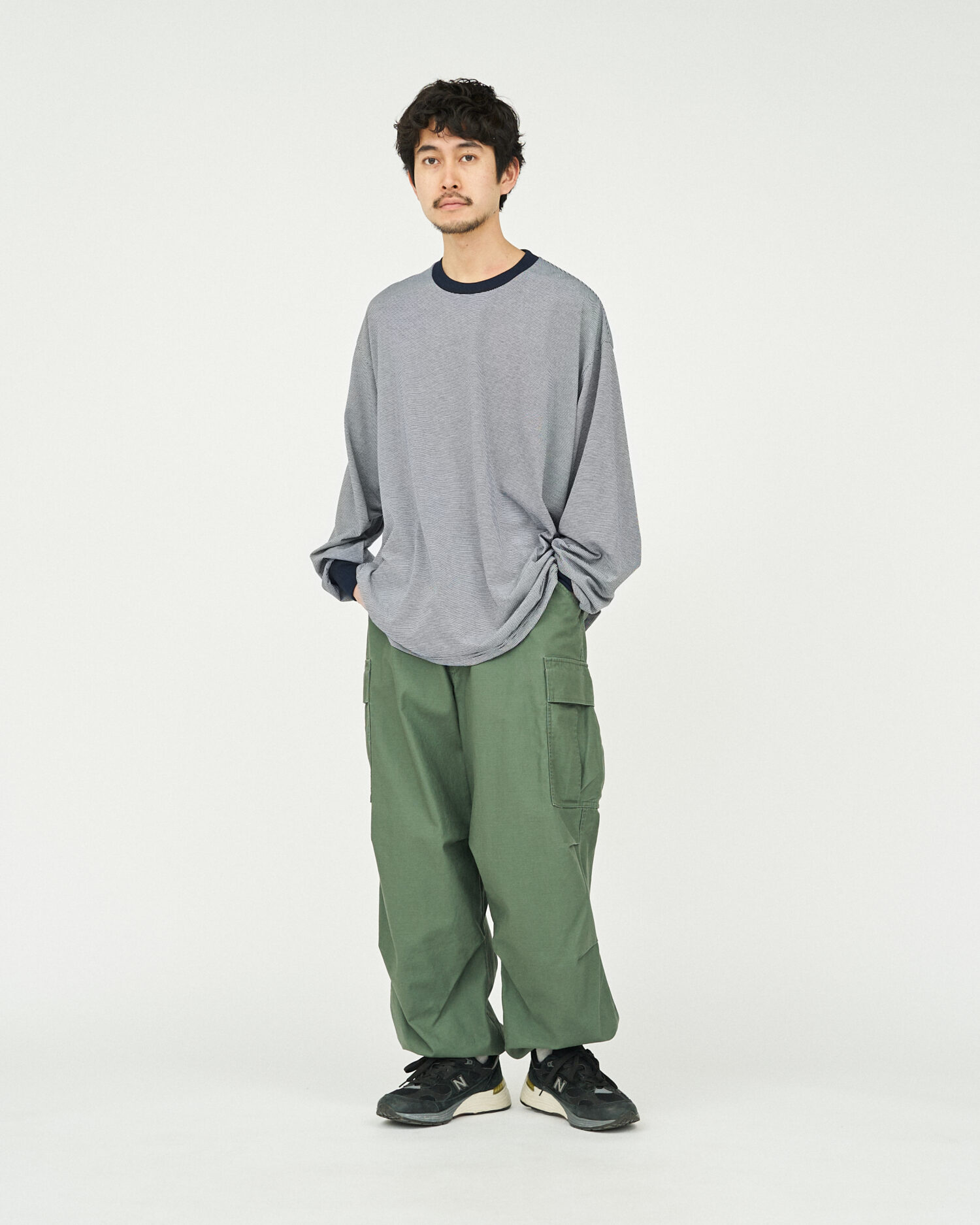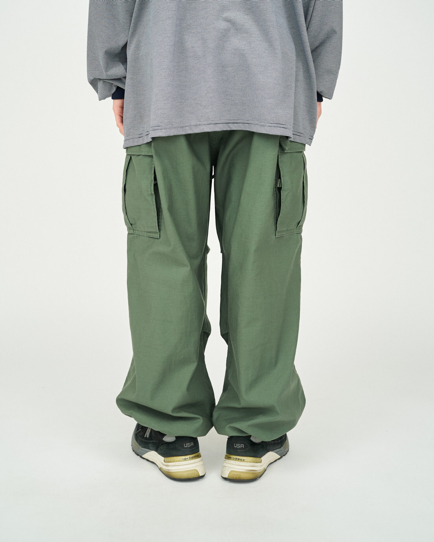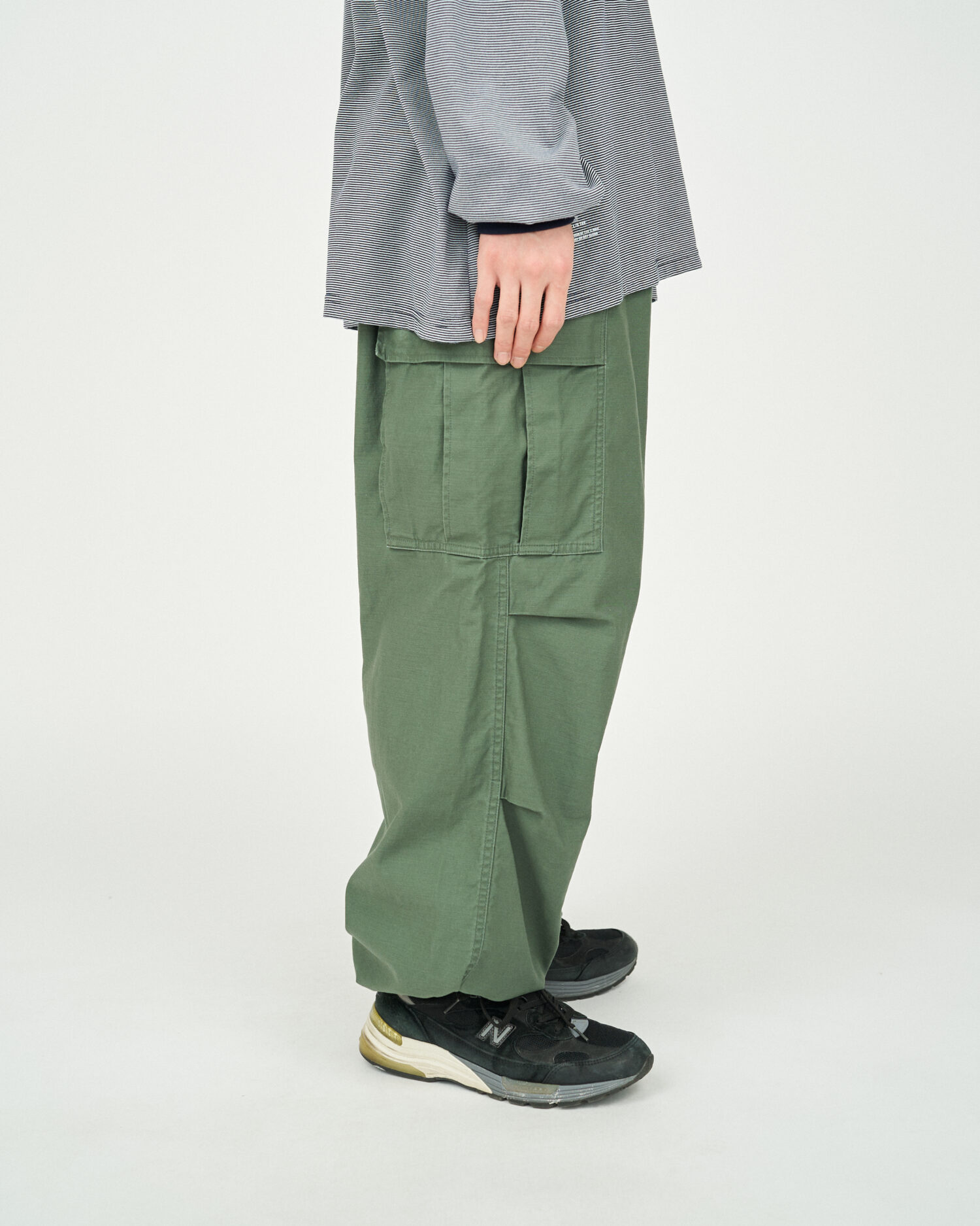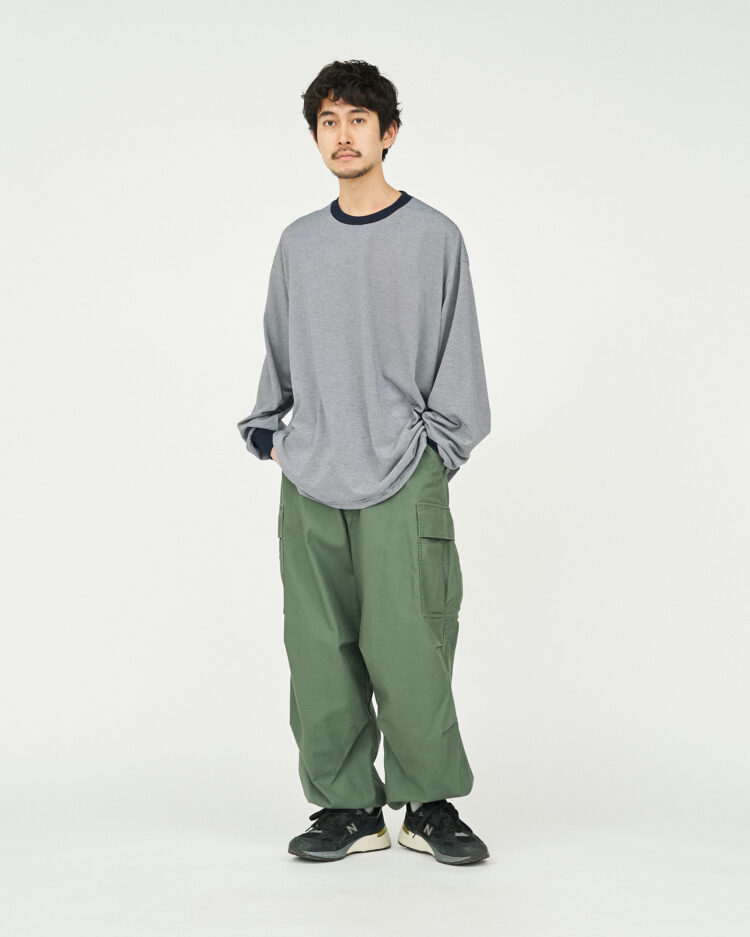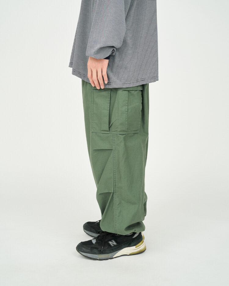 往年のU.Sフィールドパンツをモチーフにサイズ感を見直し、ヒップ周りから裾まで極太のストレートシルエットでボリュームのあるサイジングに。