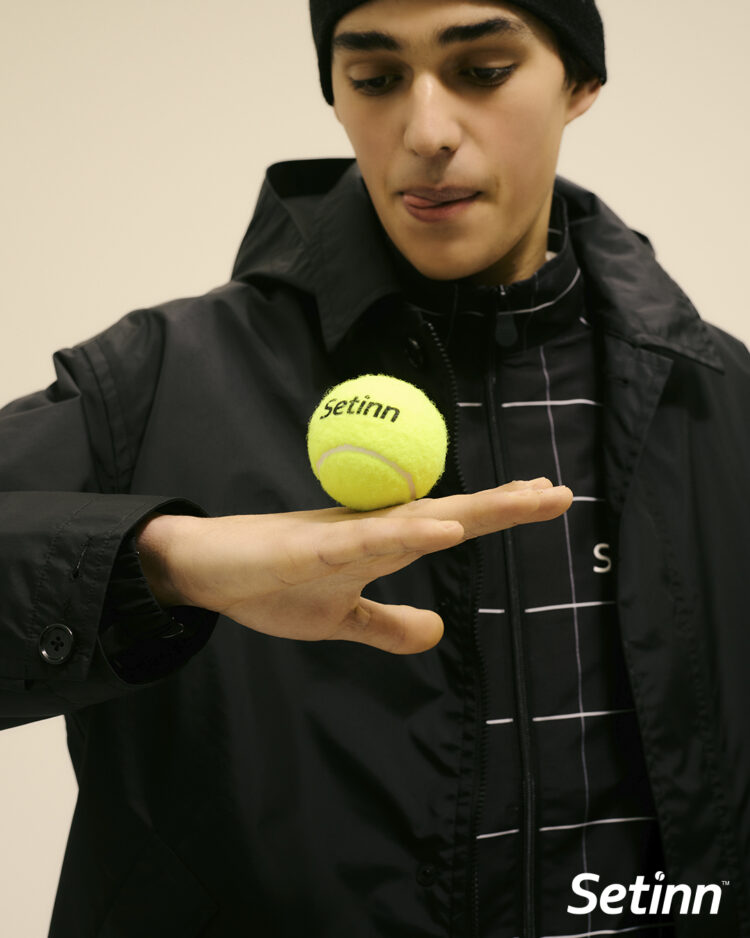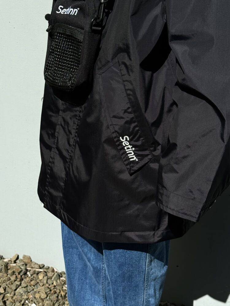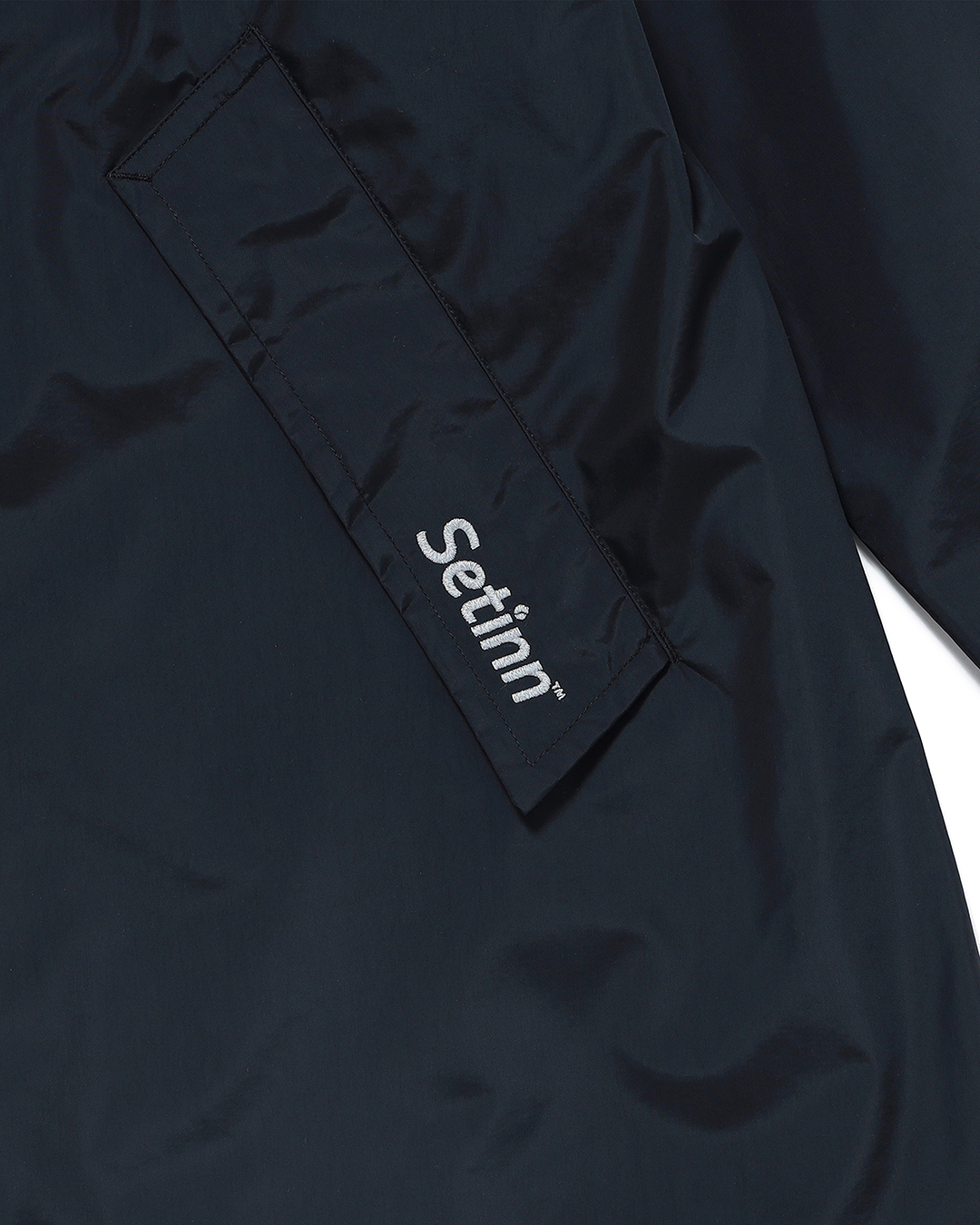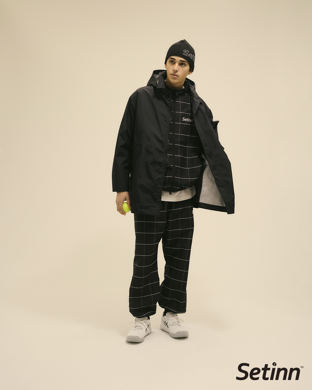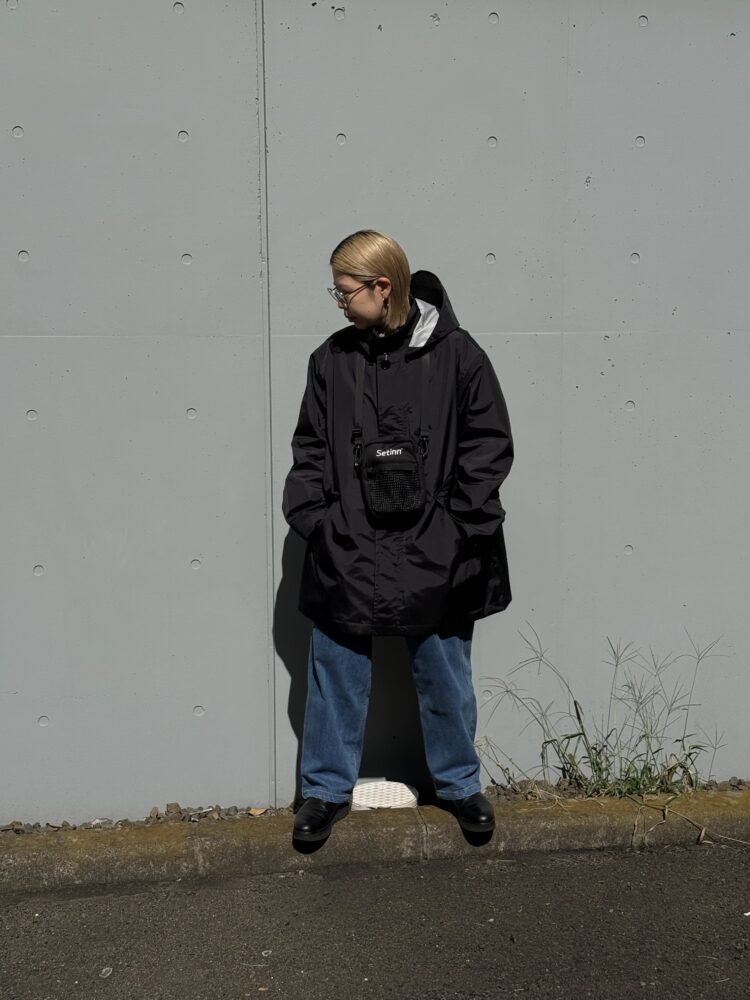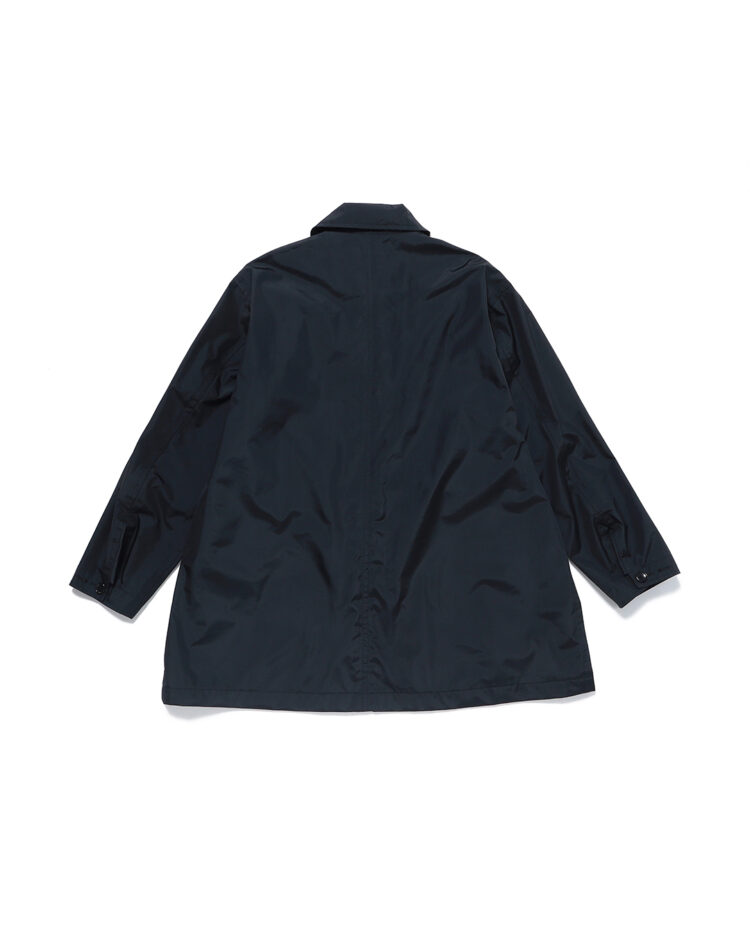 撥水性のある高機能素材を使用した、ミドル丈のコートです。フード部分は取り外し可能で大胆にブランドロゴをリフレクタープリントしています。左のポケット口には反射糸で施されたロゴの刺繍がアクセントになります。