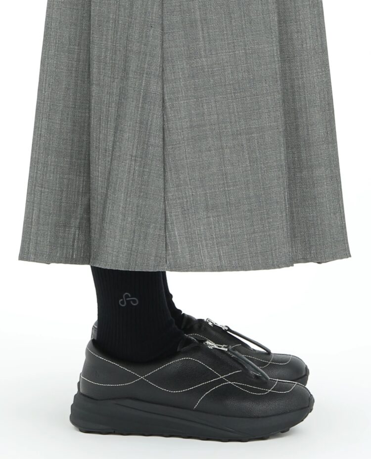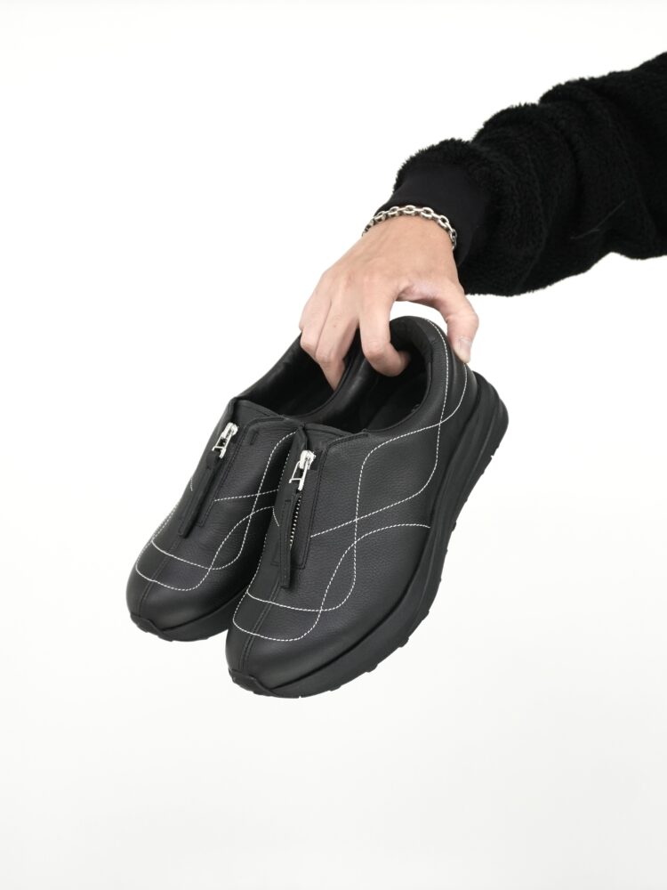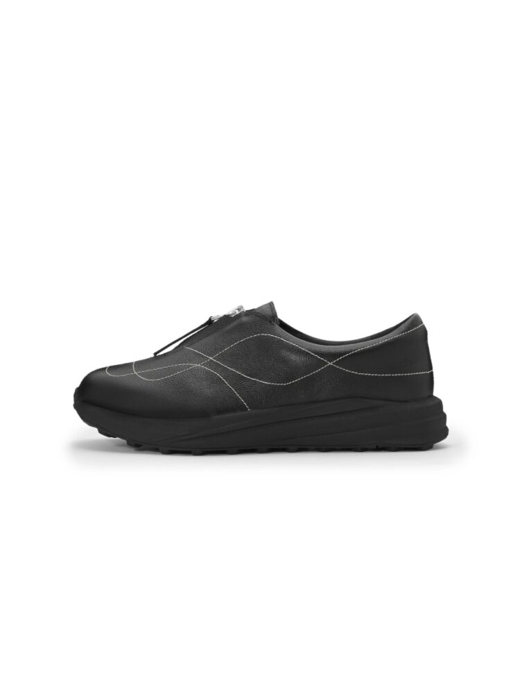 全体に配置された複数のステッチのラインと重厚感のあるグレインレザーの質感は、イサム・ノグチ氏の光の彫刻「AKARI」のしなやかな竹ひごの曲線や、数々の石や金属を用いた作品に宿るエナジーと呼応するようにデザインされ、時代に流されない力強い存在感を放ち続けます。