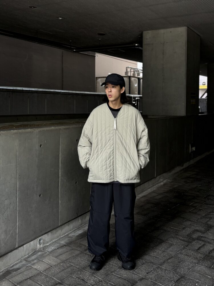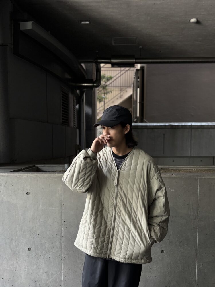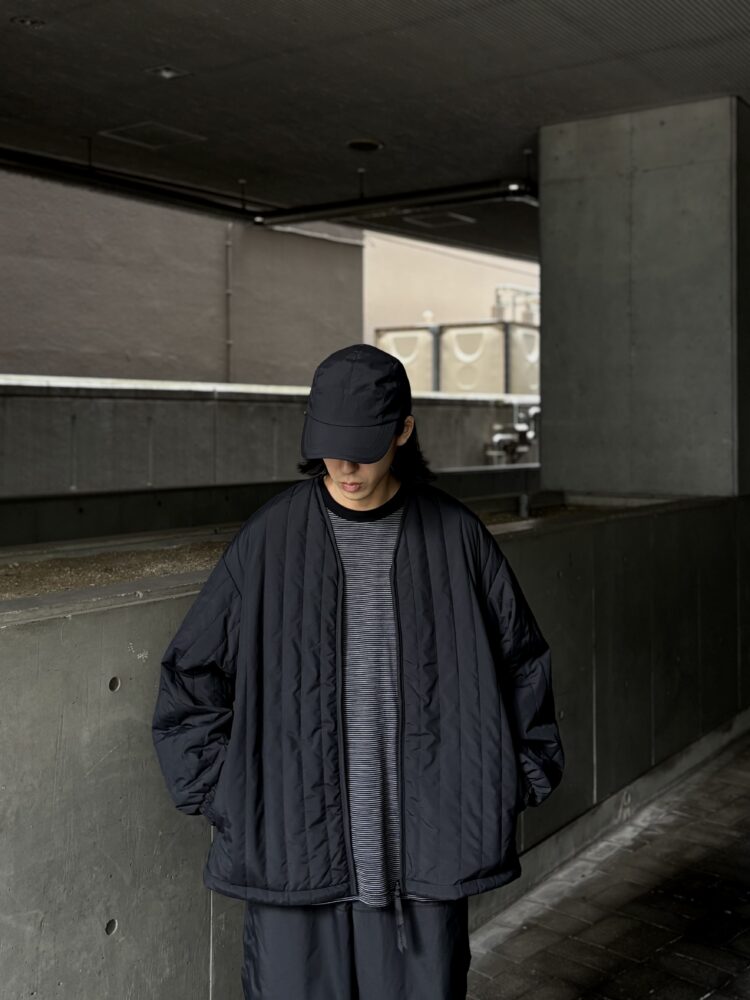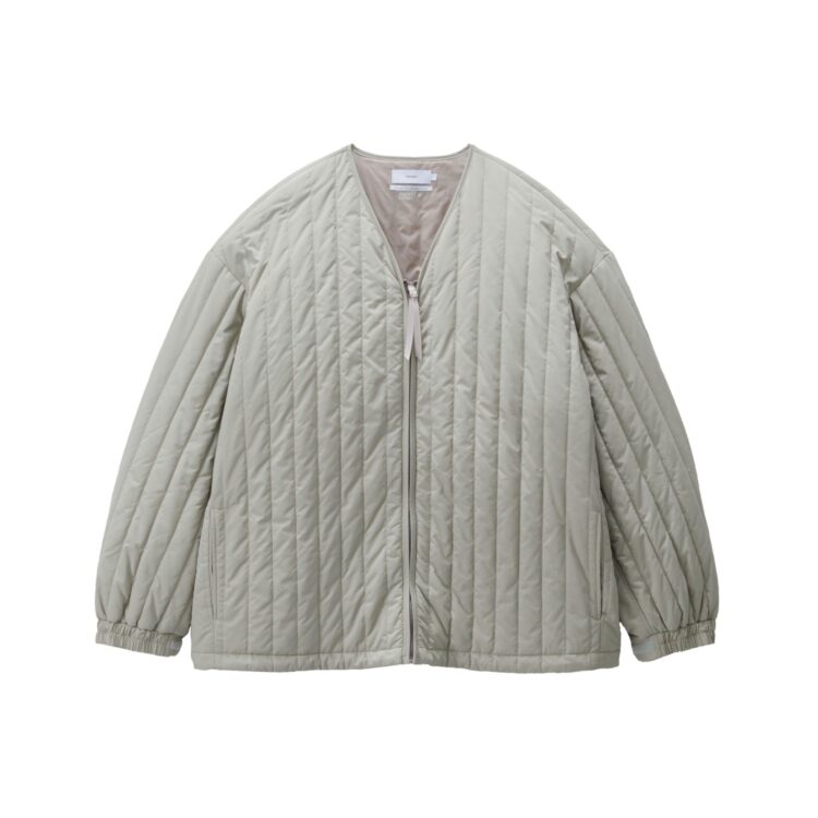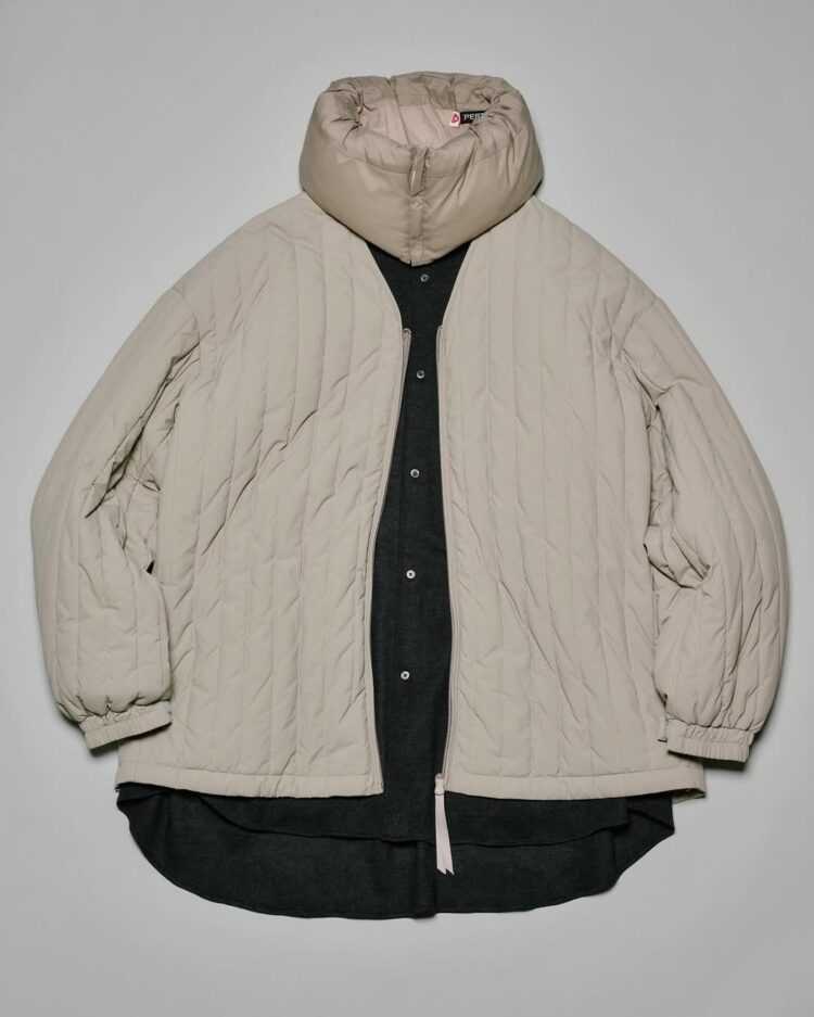 1979年に英国の登山家が開発したPERTEXは、極薄で軽量、かつ強靭なナイロン素材。今回採用したPERTEX UNLIMITED_は、特殊な糸を使用したナチュラルな風合いで光沢感を抑え、耐久撥水性と防風性に優れた素材。暖かく軽量な膨らみのあるキルトを施したライナージャケット。