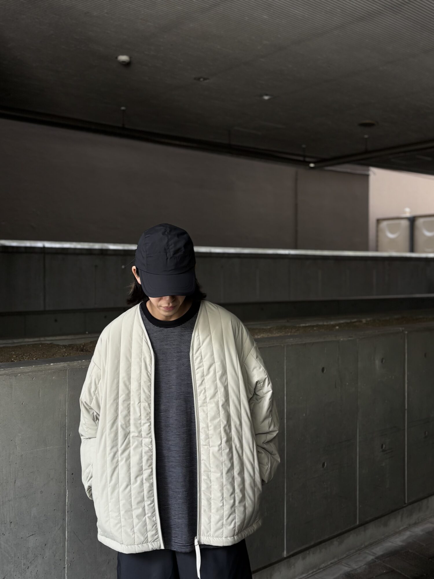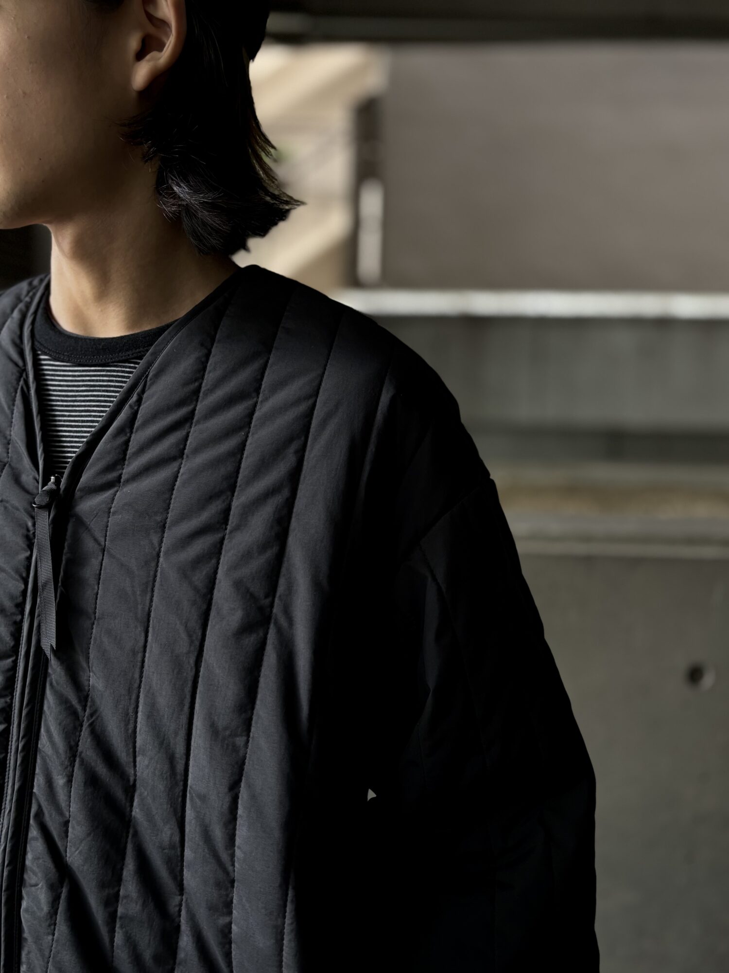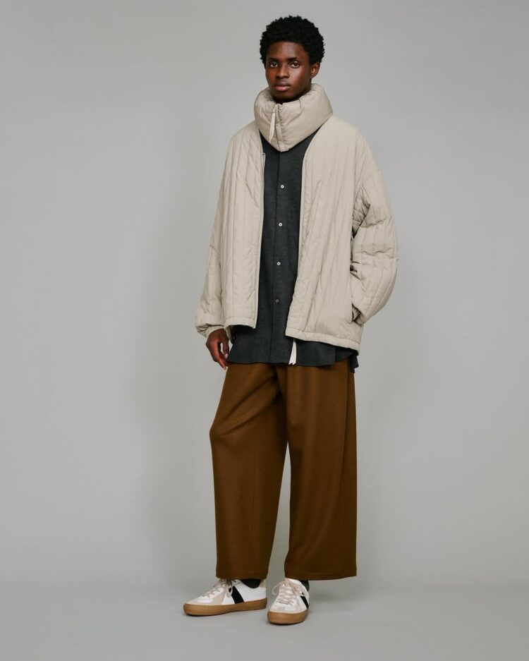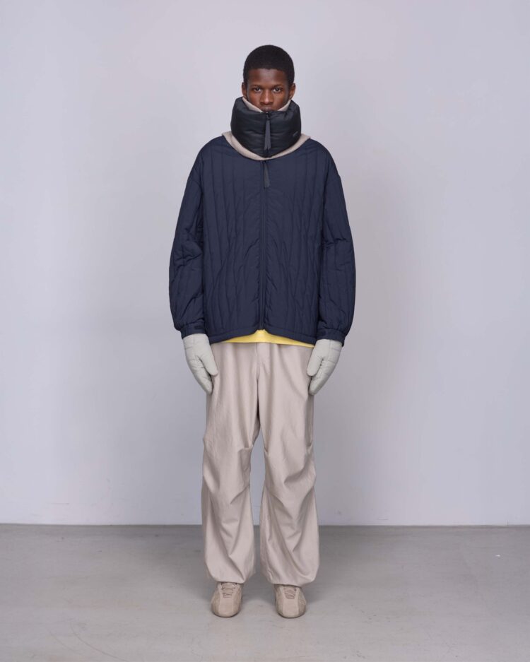 1979年に英国の登山家が開発したPERTEXは、極薄で軽量、かつ強靭なナイロン素材。今回採用したPERTEX UNLIMITED_は、特殊な糸を使用したナチュラルな風合いで光沢感を抑え、耐久撥水性と防風性に優れた素材。暖かく軽量な膨らみのあるキルトを施したライナージャケット。