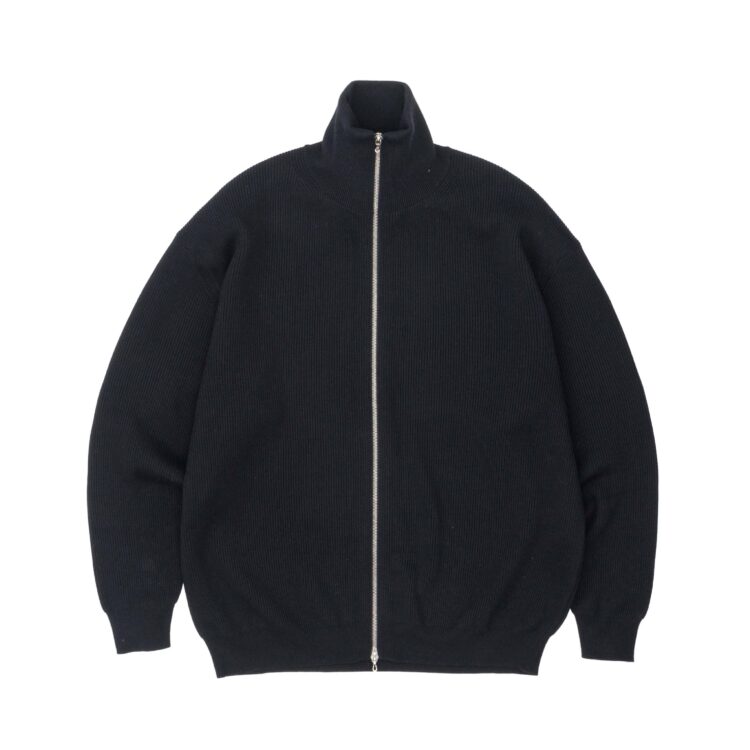 非常に細かく上質で艶やかなメリノウールを使用して、限界まで度詰めに編み立てたミドルゲージのドライバーズニット。フロントに配したダブルジップが着こなしの幅を広げてくれる。